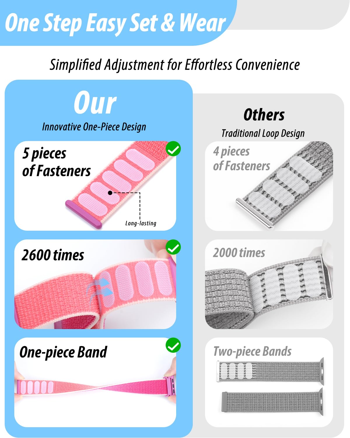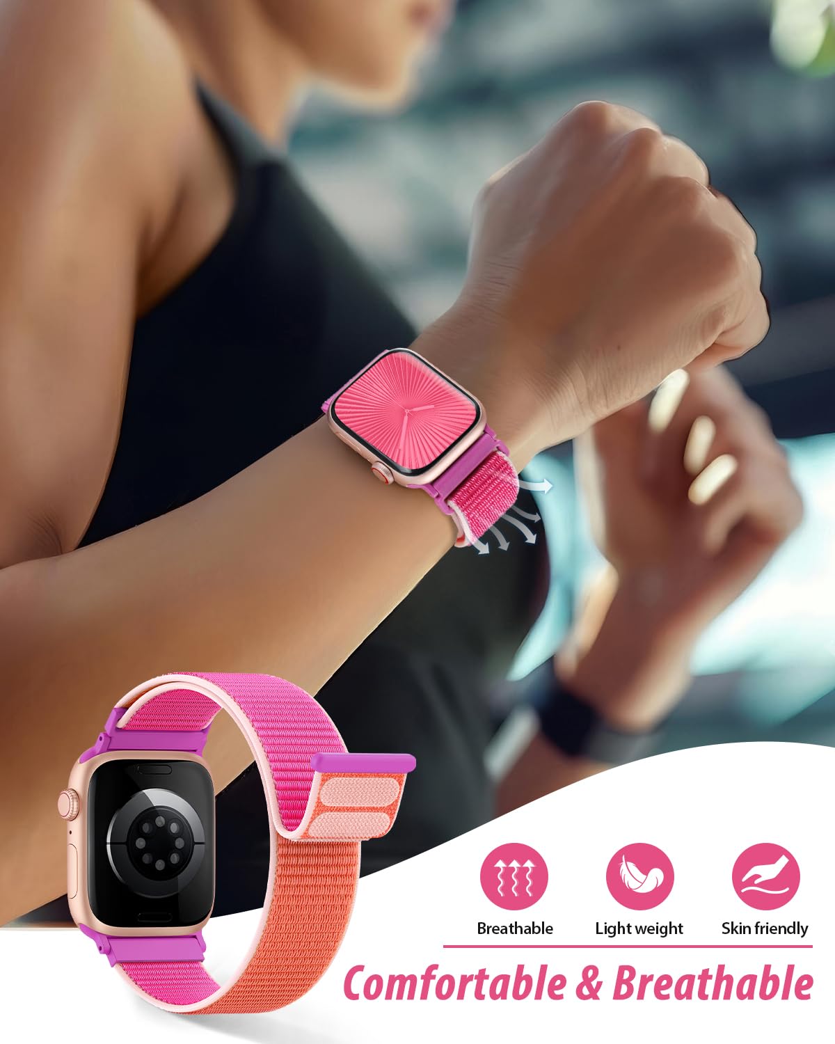 [Easy to Wear]: Our iWatch bands for women men feature a magic tape closure for easy, one-handed length adjustments, ensuring a snug fit during workouts and outdoor adventures. Durable, breathable, and comfortable, they keep your smartwatch securely in place no matter how active you get