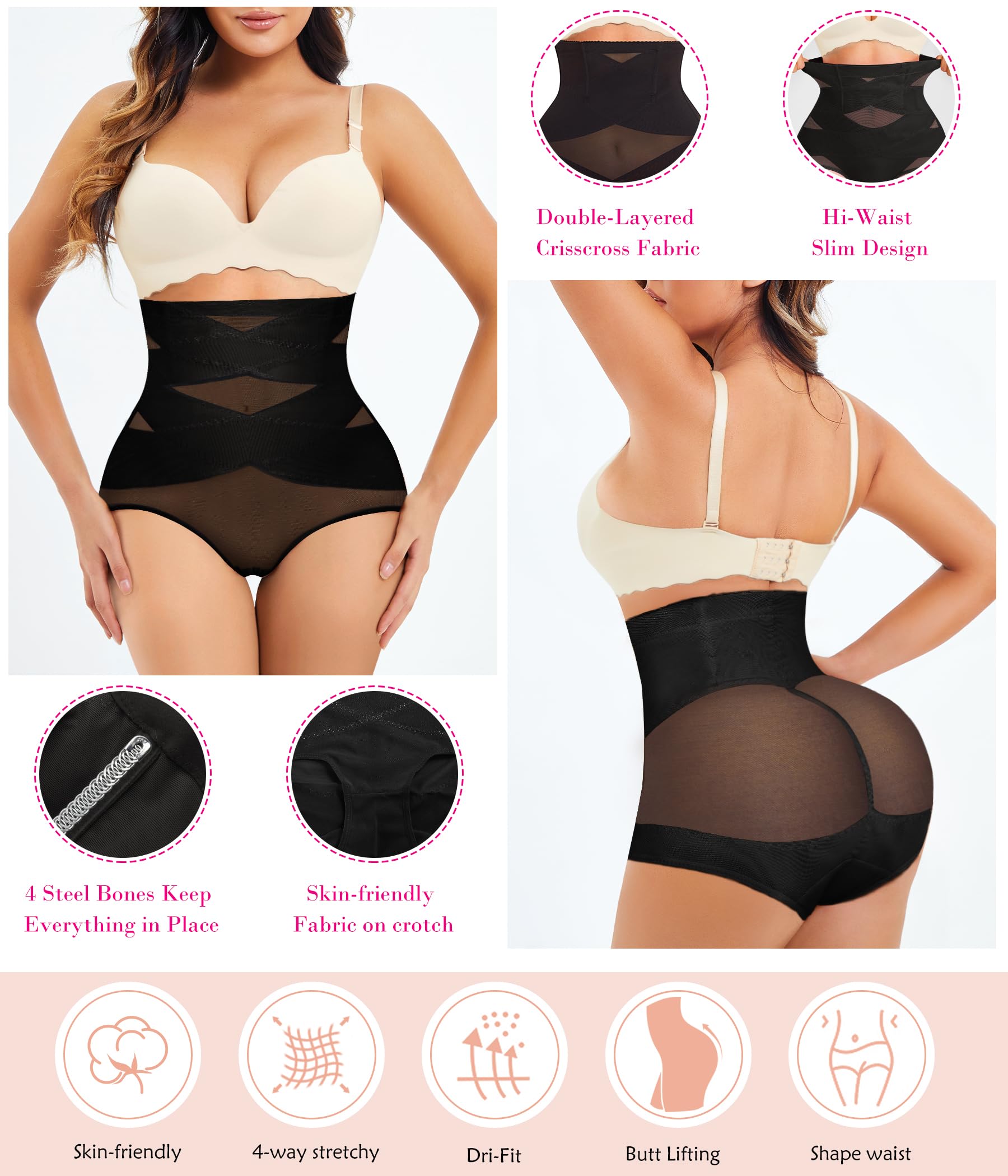 360° SHAPING and STAY WELL:the control panty whole midsection part are 2-layer stretchy fabrics to provide highest compression on belly/waist/back,4 spiral steel bones apart keep it always stay in right place,no roll down and shape you perfectly all the time.