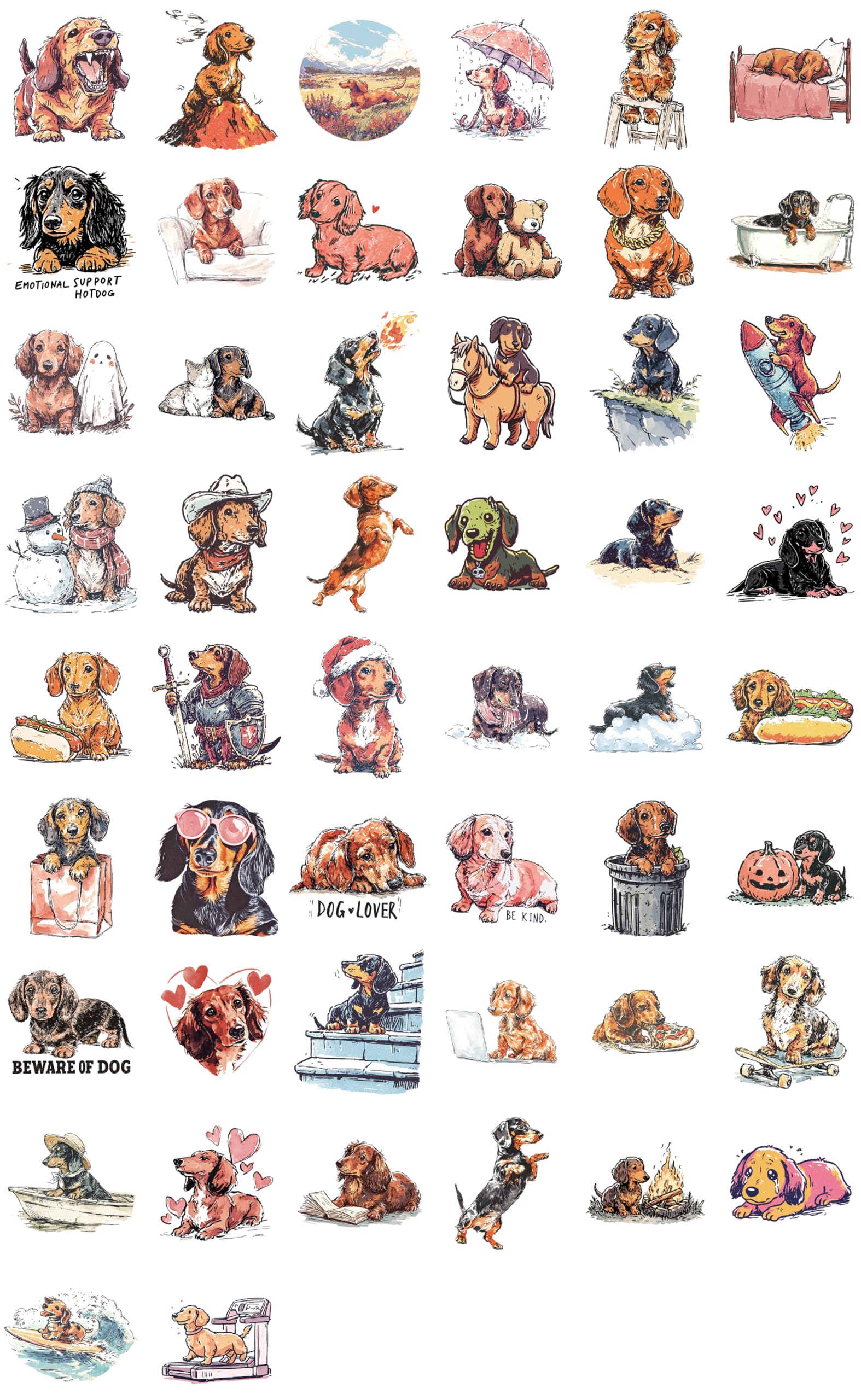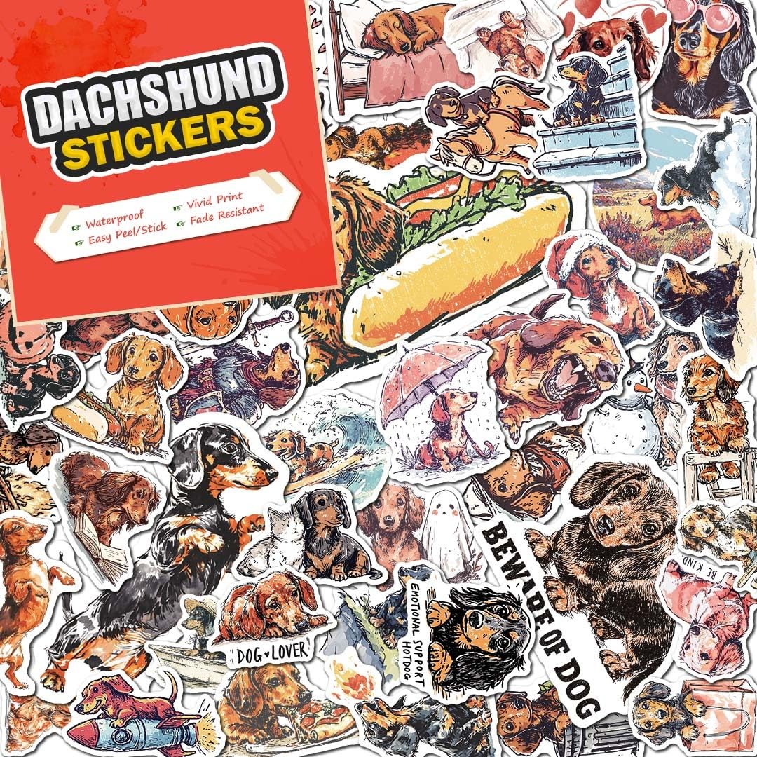 100 Dachshund Stickers – Incredible Variety!: Unleash your Dog side with this pack of bold, detailed Dachshund vinyl stickers. Each design is unique, featuring amazing, clear, and artistic Dachshund illustrations you won’t find anywhere else.