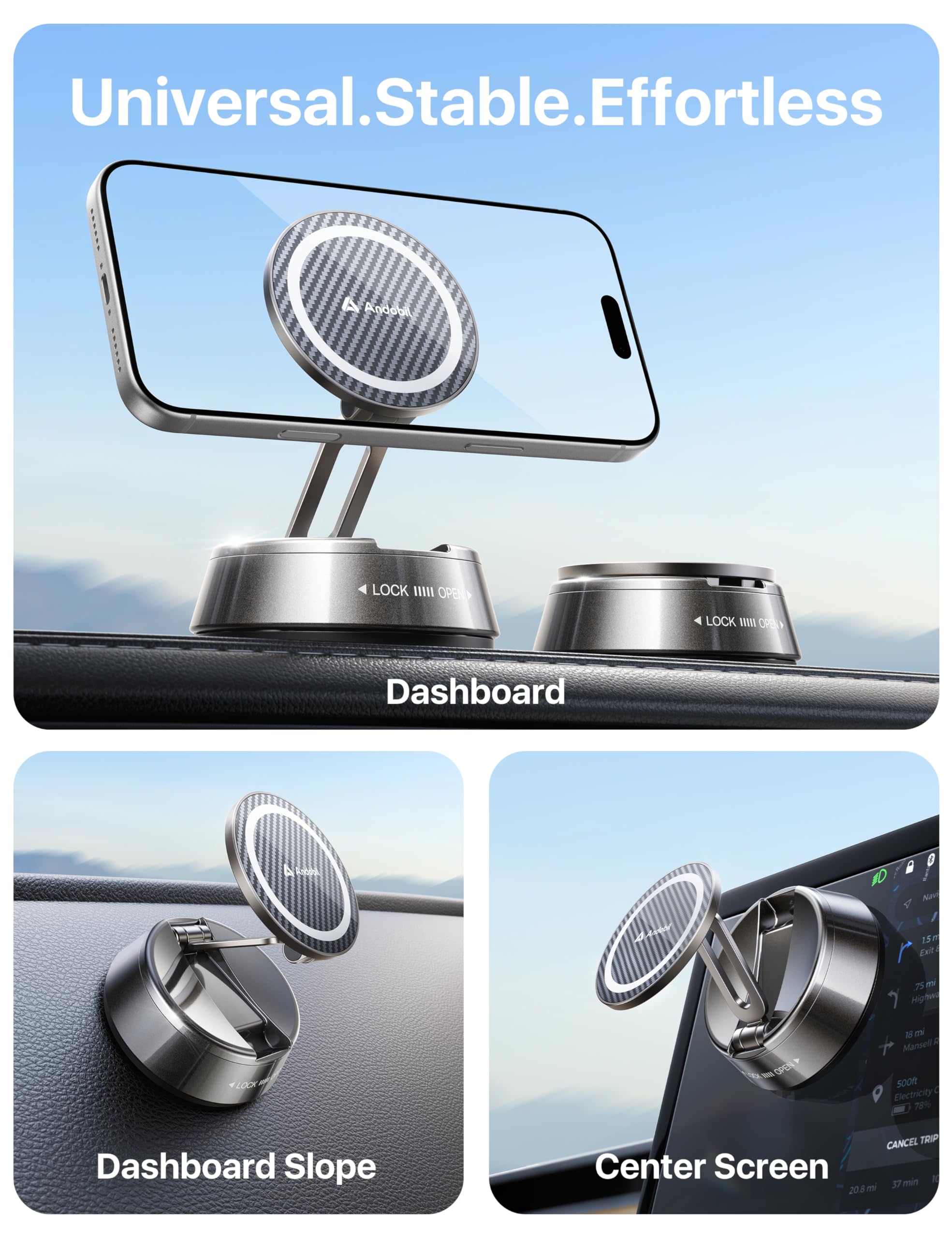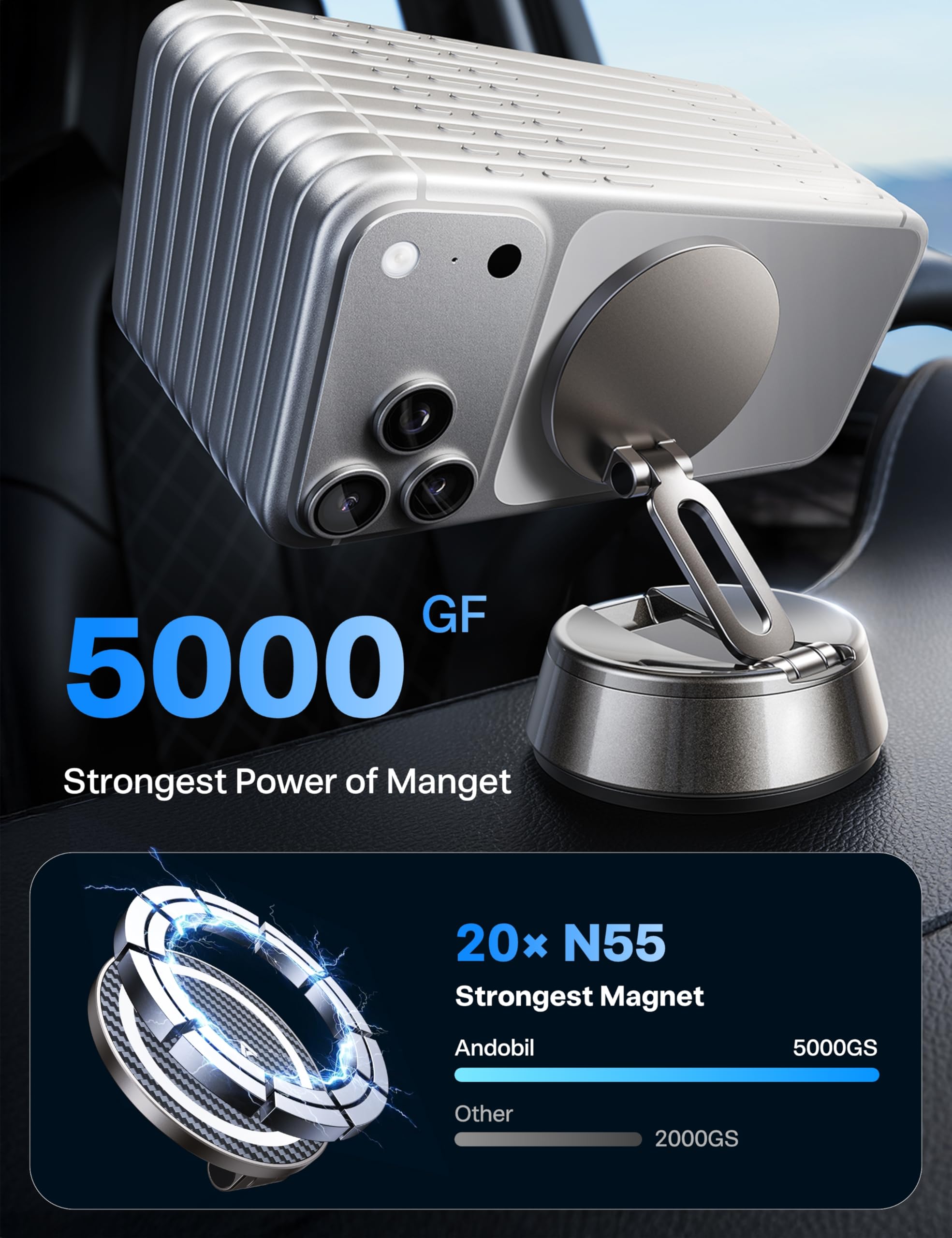 ใ๐บ๐๐๐๐ ๐บ๐๐๐๐๐ ๐ด๐๐๐๐๐ & ๐ฌ๐๐๐๐๐๐ ๐บ๐๐๐๐๐๐๐๐ใThis car phone holder equipped with 20 N55 neodymium magnets in dual-ring matrix. 200% stronger hold, 5000gf magnetic force even after 10,000 off-road vibration tests; secure for iPhone 17 Pro Max on bumps/sudden stops. The enclosed magnetic field wonโt interfere with your phoneโs signal. Enjoy smooth, uninterrupted navigation and full access to all your phoneโs functions while driving.
