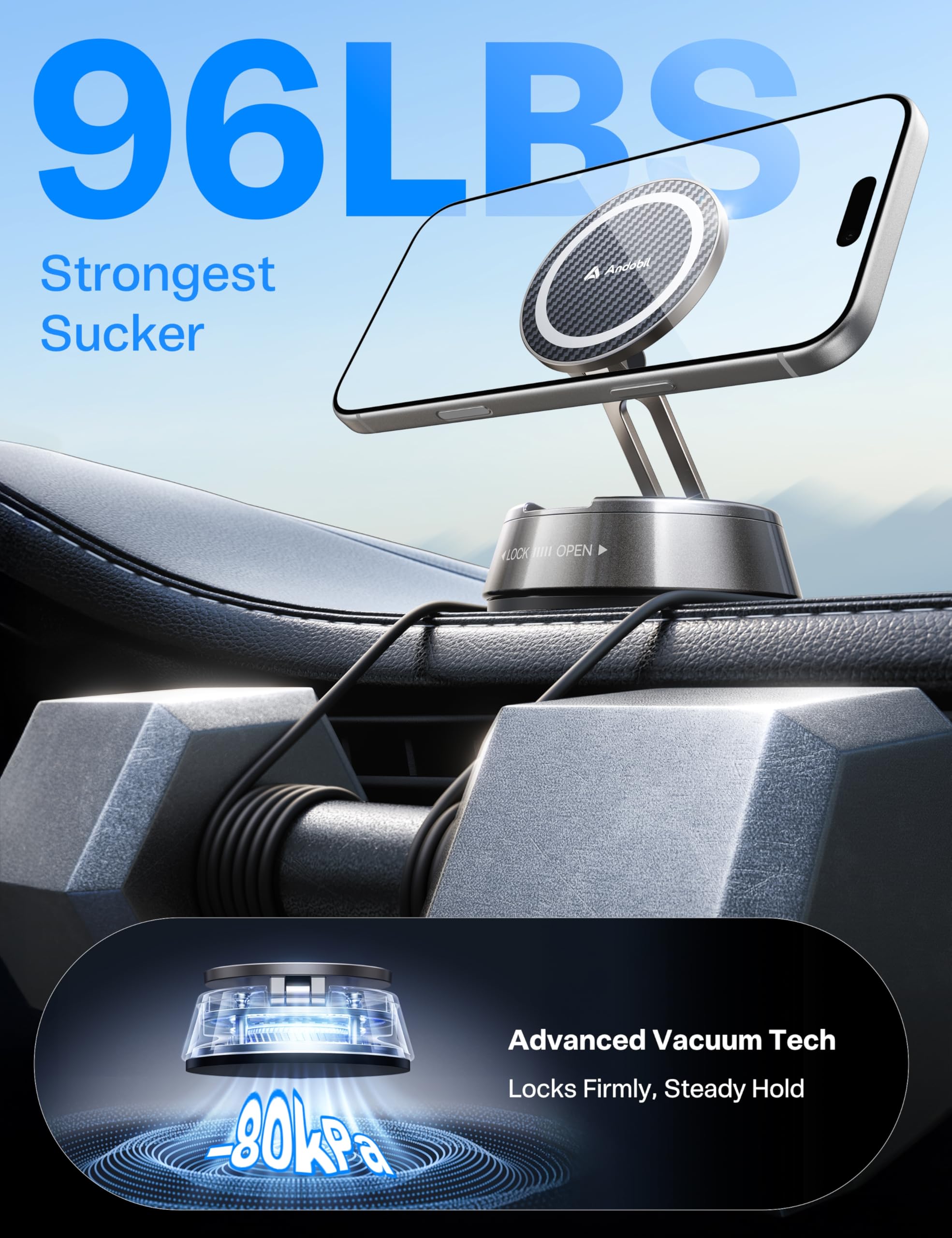 ใ๐ด๐๐๐๐๐๐๐-๐ฎ๐๐๐ ๐ ๐บ๐๐๐๐๐ ๐ฝ๐๐๐๐๐ ๐บ๐๐๐๐๐๐ ๐ด๐๐๐๐๐๐๐ ๐บ๐๐๐๐๐ใThis car phone mount features an upgraded high-adhesion gel base paired with premium vacuum suction technology for unbeatable stability. Boasting an ultra-strong 96 lbs suction power, it withstands extreme temperature extremes from -40ยฐF to 300ยฐF flawlessly, staying firmly secured to your car dashboard or windshield โ perfect for cars, SUVs, trucks and all vehicle types. Pro Tips: โ For best hold, install on smooth flat surfaces only; โก Simply rinse the suction cup with clean water and air dry to instantly restore maximum adhesion if suction weakens over time.