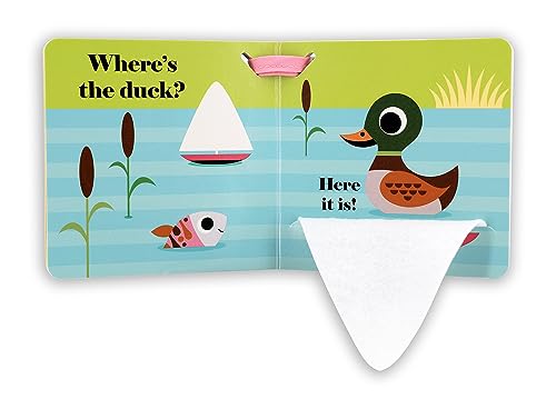 A new stroller edition from this best-selling series, which has sold over 2 million copies. Perfect for babies and toddlers! Five beautifully illustrated spreads show a series of animals, including a butterfly, a frog, a worm, and a duck, hiding beneath bright felt flaps as well as a surprise mirror ending on the final page. Now available in a smaller format with a sturdy, detachable hook-and-loop strap, this stroller book is perfect for babies and toddlers on the go.