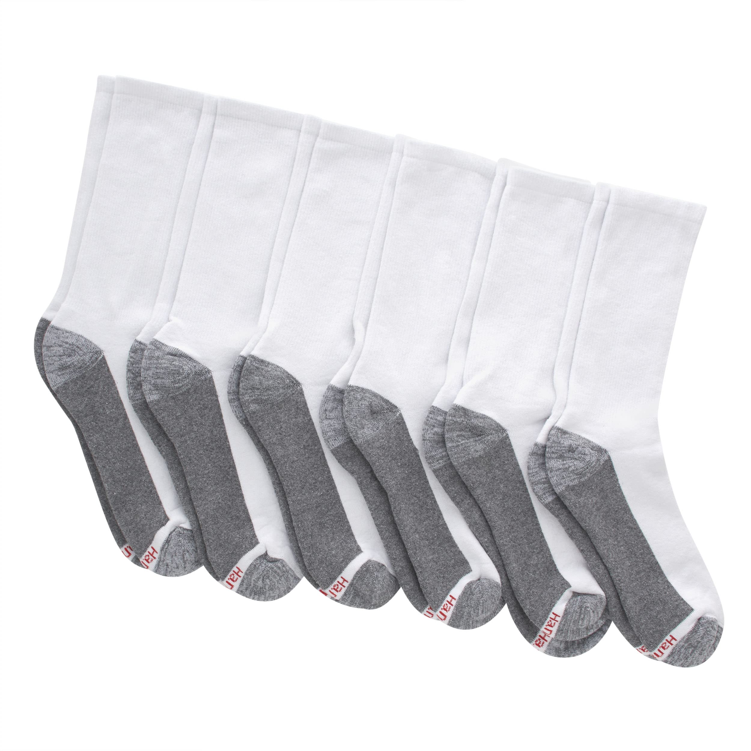 Description For sports or everyday wear, you'll appreciate the comfort and construction of Hanes® Max Cushion crew socks. These soft but Double Tough classic crew socks are made to last with a reinforced heel and toe, all the while cradling your foot with extra cushioning you'll feel with every step. These basic crew socks for men are made with Hanes' high-tech features, including Cool Comfort® fabric that wicks away moisture to keep feet cool and dry, and FreshIQ™ advanced odor-fighting technology that attacks odor-causing bacteria to keep feet smelling fresh. Smooth toe seams enhance comfort even more, and a touch of spandex in the fiber blend assures a stay-in-place fit. Stock up on these made-to-last crew socks and fill your sock drawer with comfort.