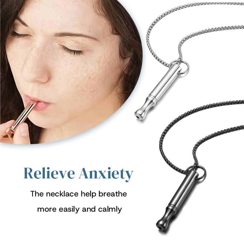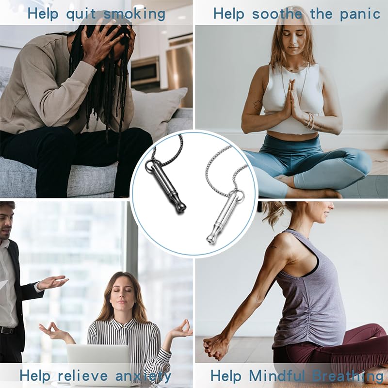 MINDFULNESS BREATHING NECKLACE: Take a slow inhale through your nose for 4 seconds, hold for 7 seconds, then exhale slowly using the breathing tool for 8 to 10 seconds. Repeat for several cycles. This breathing technique will naturally calm your body and mind.