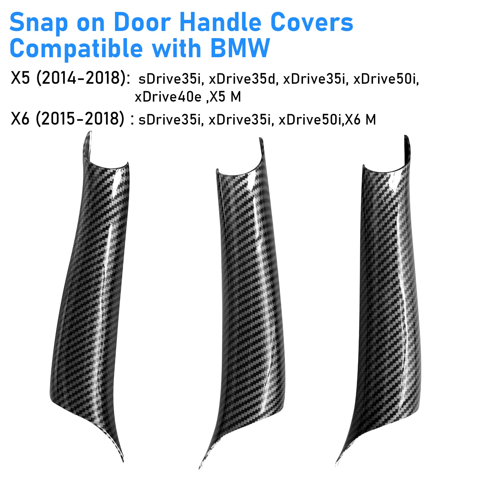 【Fitment】3PCS Door Handle Cover Set Compatible with BMW X5 (F15/F85): 25d,25dX,28iX,30dX,35i,35iX,40dX,40eX,50iX,M50dX,X5 M (2014-2018). 3PCS Door Pull Handle Covers Compatible with BMW X6 (F16/F86): 28iX,30dX,35i,35iX,40dX,50iX,M50dX,X6 M (2014-2019). Package Includes: 2x Right Side Door Handles and 1x Left Rear Side Door Handle.