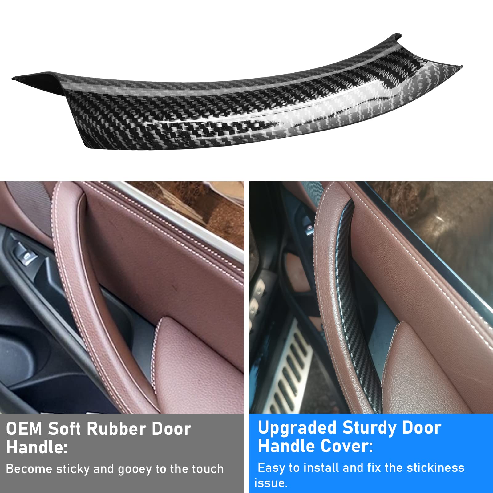 【Carbon Fiber Pattern Design】 Our Door Handle for F15/F16 is made of ABS+PC material instead of soft rubber, which are smoother and stronger. No more rubbed off with our Door Handles. Carbon Fiber Pattern Door Handles repair the sticking door handle of the original car, while improving the texture of the car interior. NOT REAL CARBON FIBER!