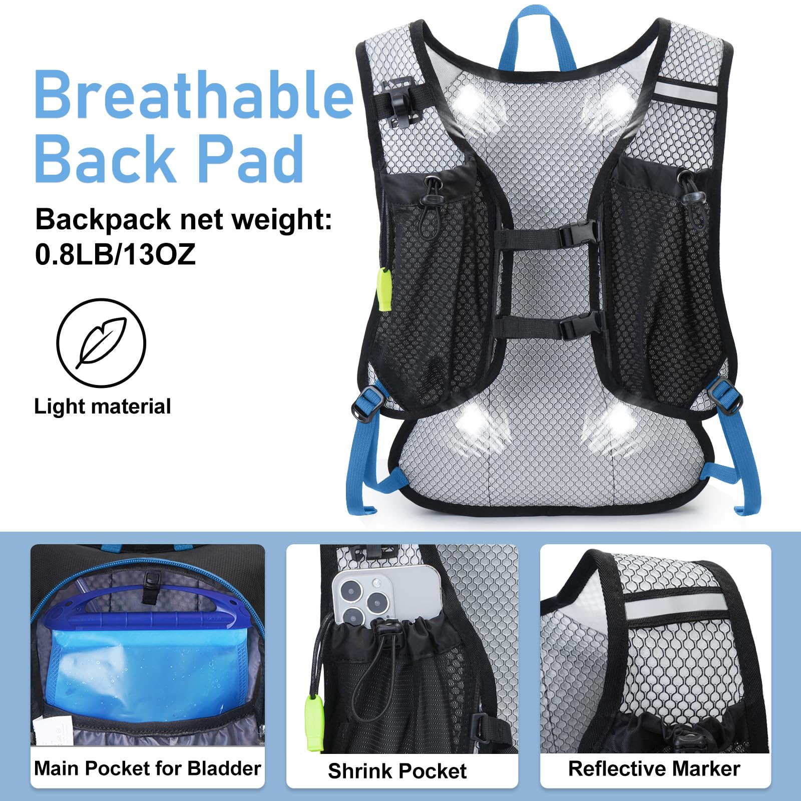 Lightweight 12 L Hydration Backpack: Super lightweight 8.5 oz hydration pack backpack with 2 L water bladder. Waterproof and tear-resistant fabric, PU coated nylon hydration pack bears 25 lbs