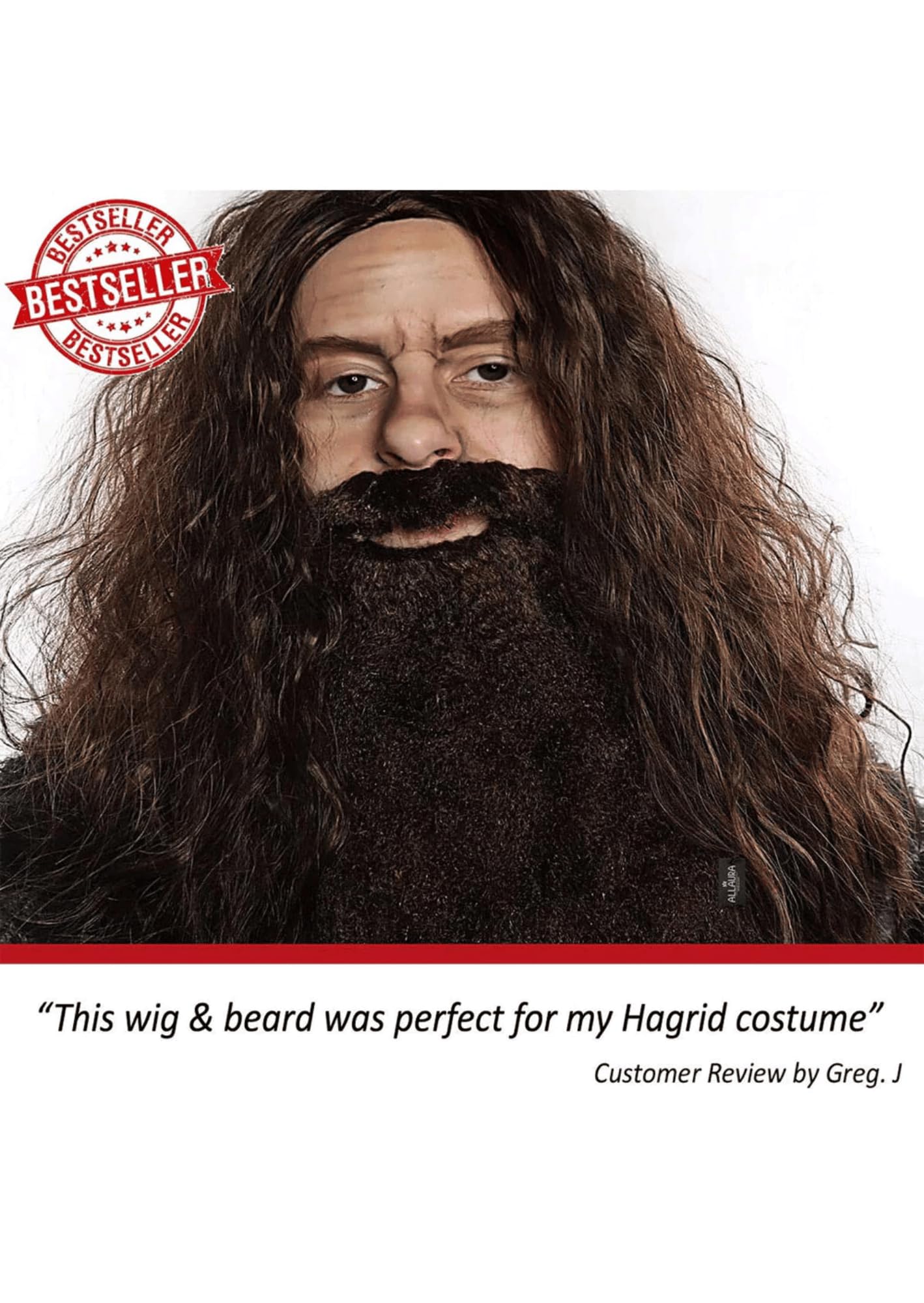 FAKE BEARD & WIZARD WIG! Every party needs a character right? Instantly become, Caveman, Viking with this wizard or biblical long brown face beard for men
