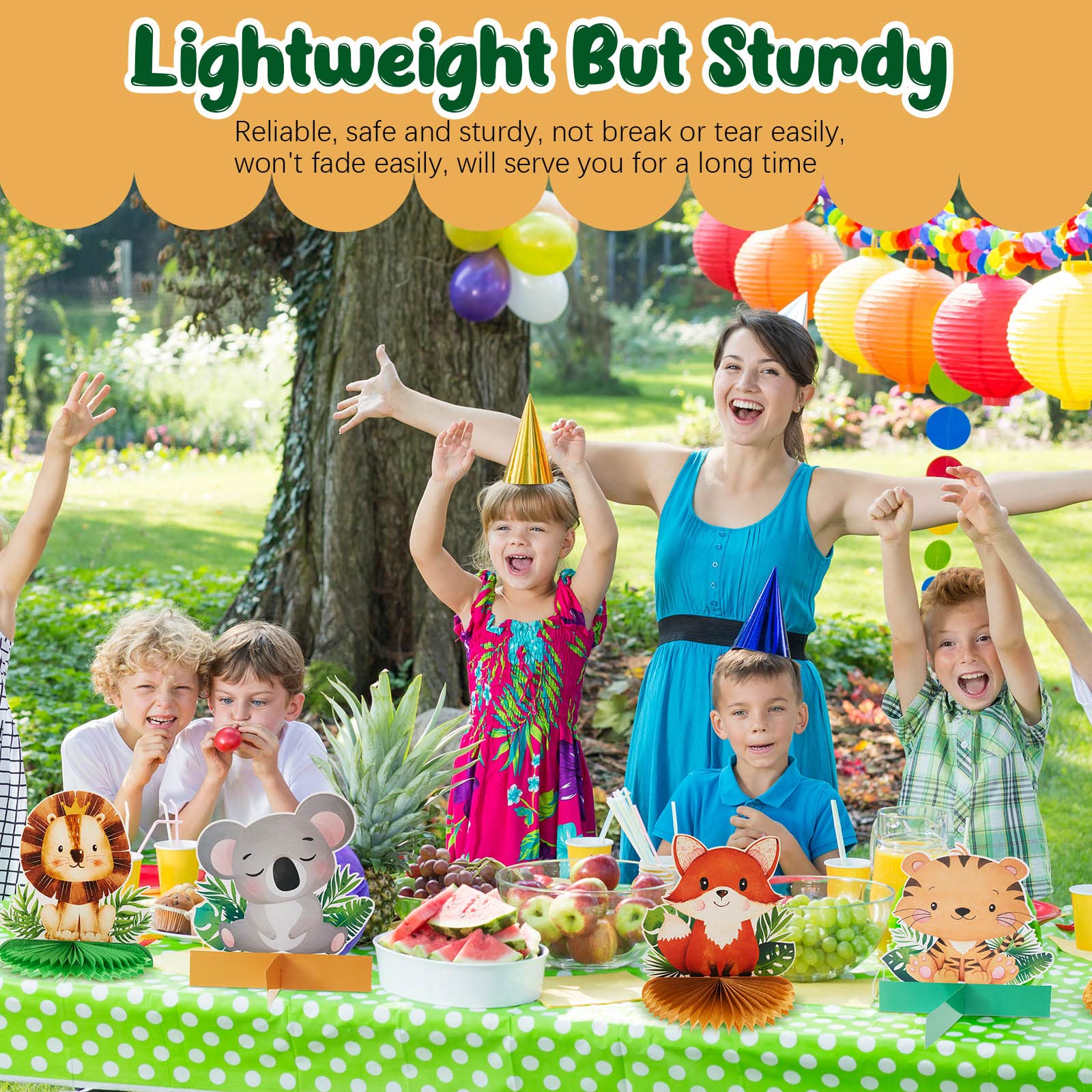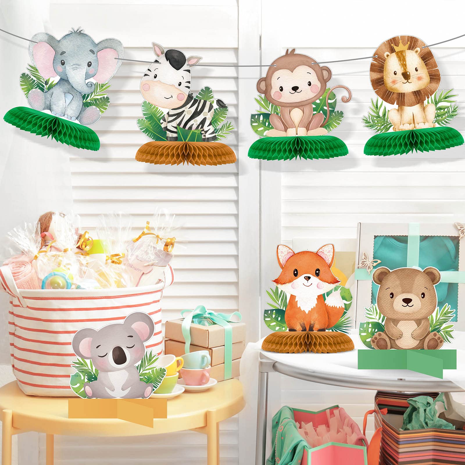 Safari Centerpieces for Tables: you will get 10 pieces of safari baby shower centerpieces, including 7 jungle honeycomb centerpieces and 3 standing cardboard decorations, with different designs; Sufficient quantity and designs can meet your various decorative demands