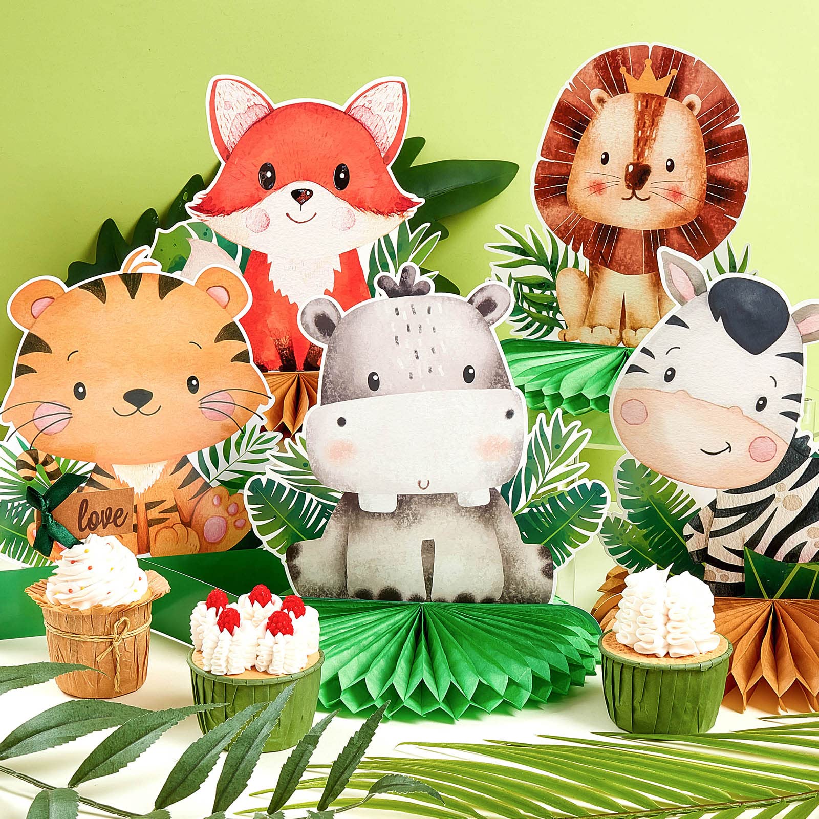 Adorable Elements: these jungle party centerpieces are designed with various cute safari animals, like lion, monkey, elephant, graffiti and more, with fresh leaves design, these centerpieces decorations are exquisite and eye catching