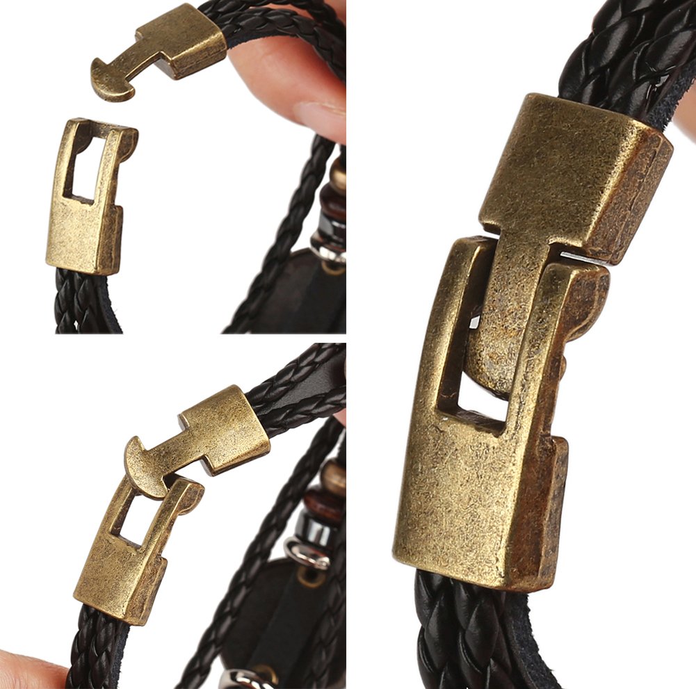 【Material】The first layer of leather accessories,alloy small beaded wood beads and black stone.