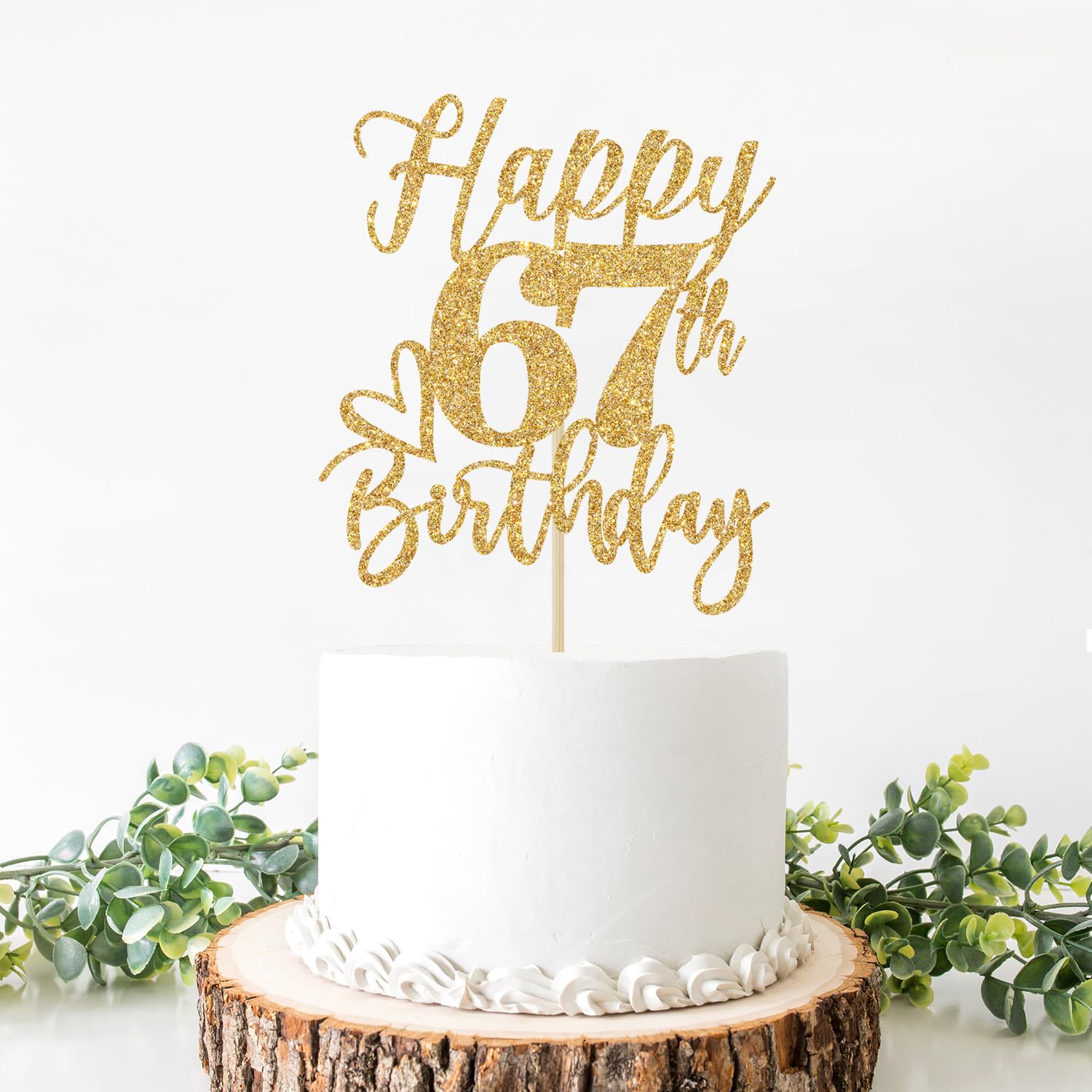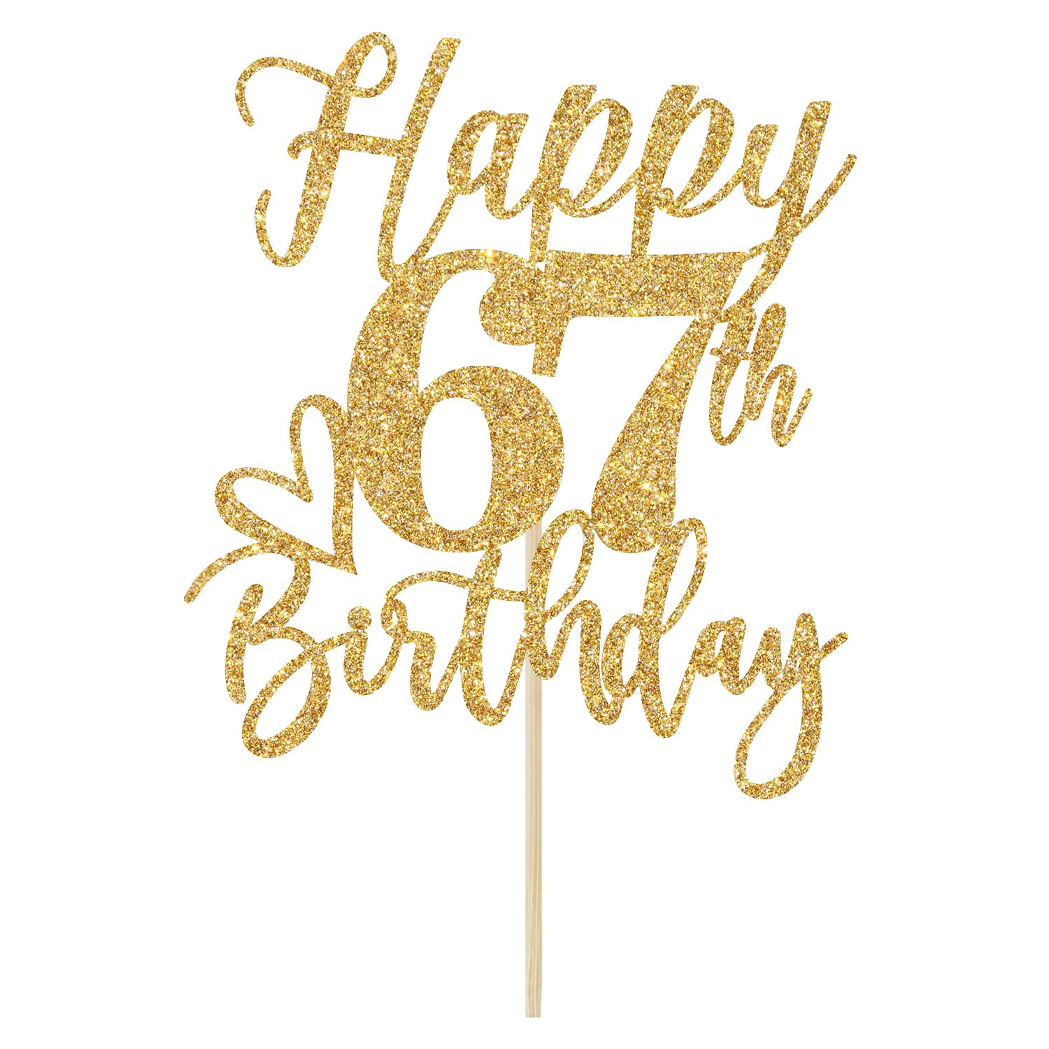 Happy 67th Birthday Cake Topper It made of quality the glitter paper and toothpicks which are safe for use. They are great anniversary themed party cake toppers, to make the cake looks much more different. The cute cake toppers also can be used as cupcake picks, appetizer picks, fruit picks, or party food picks, etc. This classy luxurious cake topper is a great choice to decorate for your party idea. It is perfect for party celebrations! Used as a photography prop, it will be sign to take photo in your party.