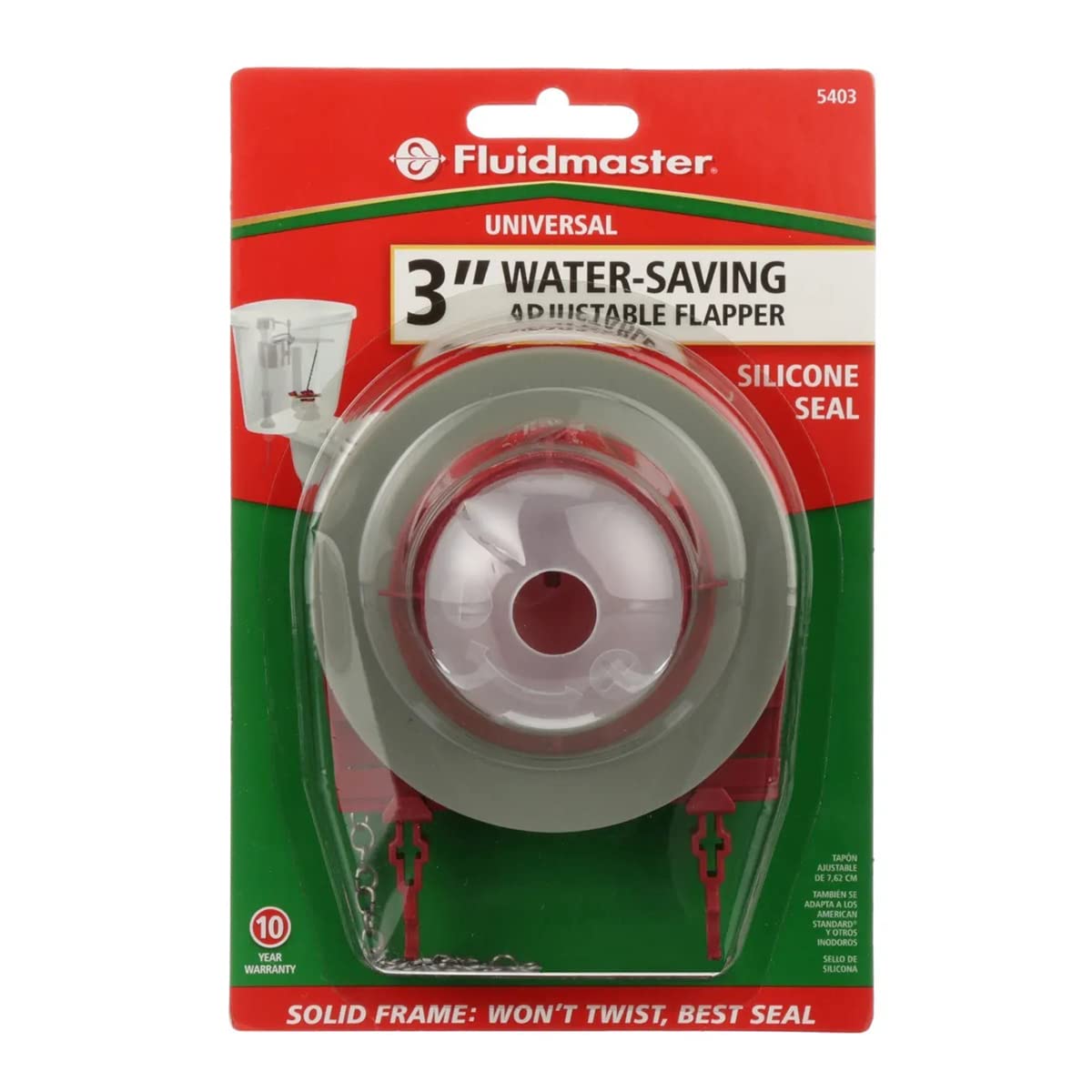 Product Description Fluidmaster 5403 3-Inch Universal Water Saving Long Life Toilet Flapper From the Manufacturer Fluidmaster is the #1 toilet repair brand in the world. Since 1957, we have been guiding our customers to the right toilet repair solutions. Fluidmaster is dedicated to making the installation of its products easy and simple with a complete line of toilet repair parts including: fill valves, single and dual flush valves, flappers, tank levers, toilet seals (bowl wax and wax-free), toilet repair kits, flush valve seals, connectors and more. Fluidmaster parts are found in more toilets than all other brands combined. Fluidmaster distributes to over 90 countries and is the trusted brand by toilet manufacturers and professionals worldwide.