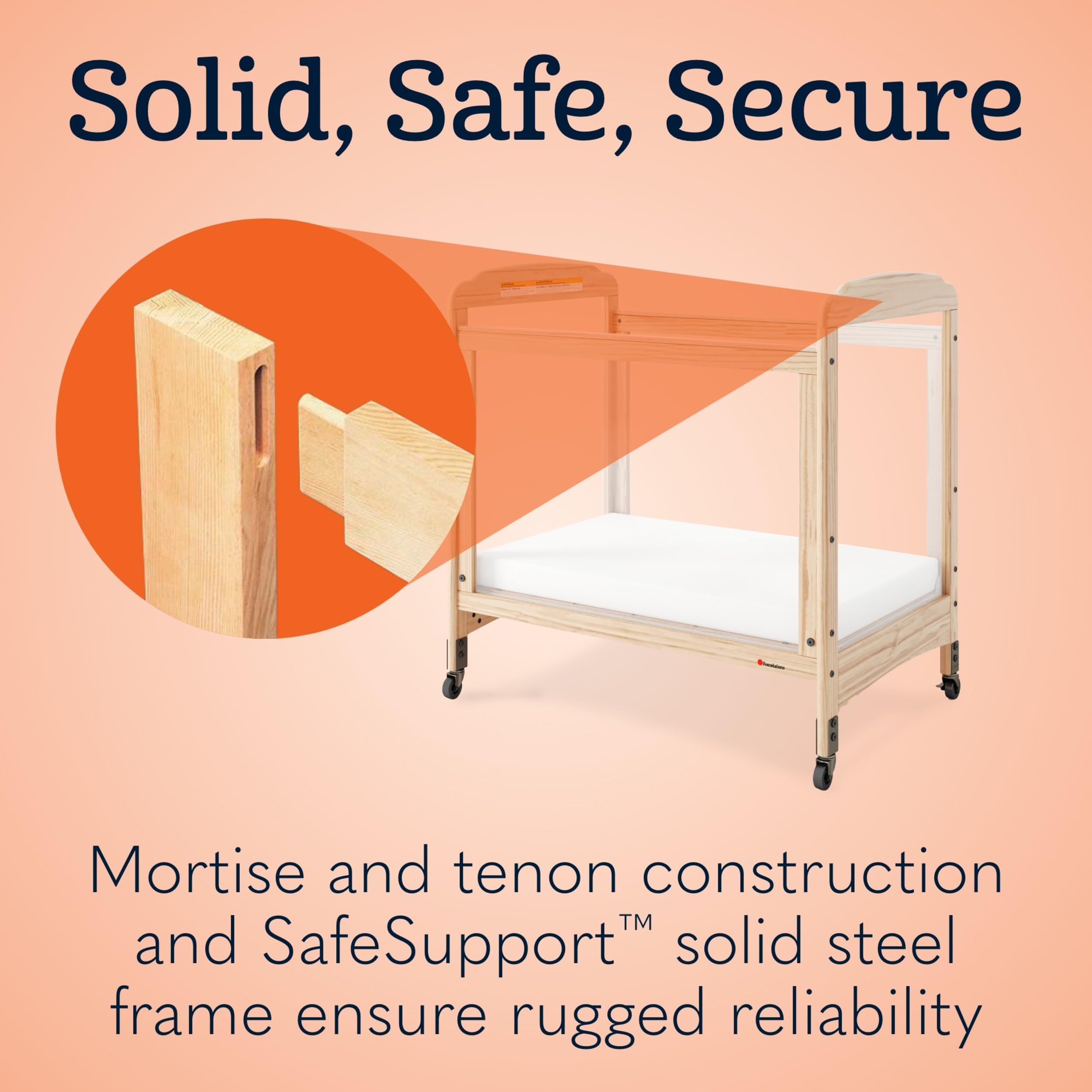 Long-Lasting Construction: The Serenity Compact Clearview Crib is constructed from durable, mortise and tenon wood to withstand use in a commercial childcare environment.
