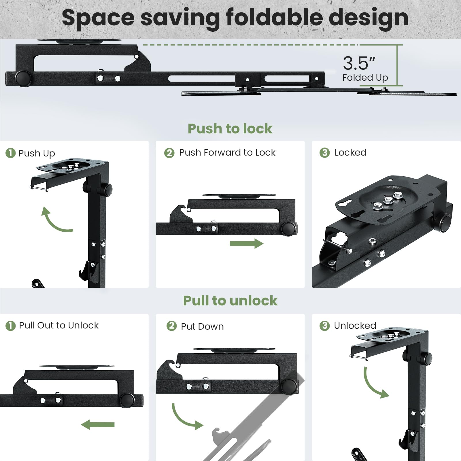 Space-Saving Foldable Design: This drop down TV ceiling mount features a collapsible locking design; When not in use, folding the TV up creates additional space, making it ideal for studio apartments, living rooms, offices, meeting rooms, rooms with sloped ceilings, lofts, porches, and more