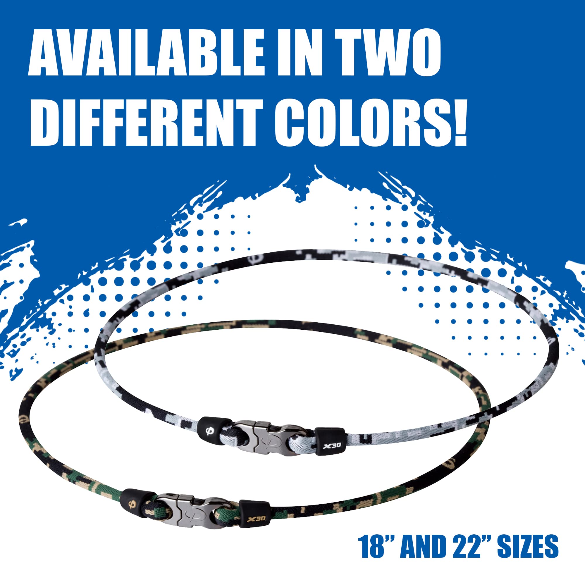 Look Good, Feel Great: These pixelated digital camo pattern necklaces utilize X30 Aqua-Titanium technology to create a design that's sleek enough to match any style and help relax muscles