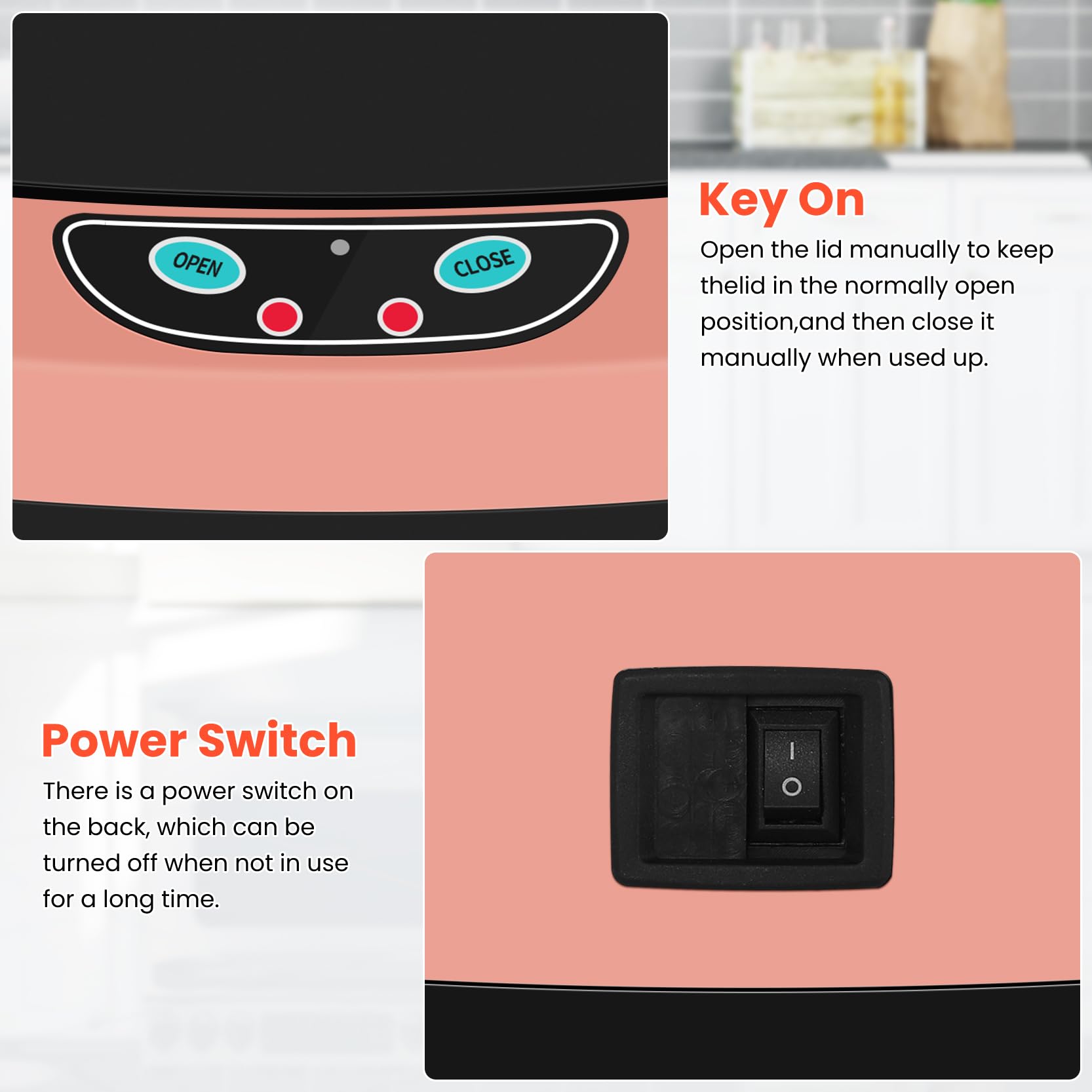 AUTOMATIC TRASH CAN: -- The kitchen bin uses intelligent sensor technology. When an object approaches the bin within 15CM of the sensor, the touch-free operated lid will open within 0.8 seconds and the bin's lid will automatically close after 7 seconds of stay. This is a very convenient automatic waste bin