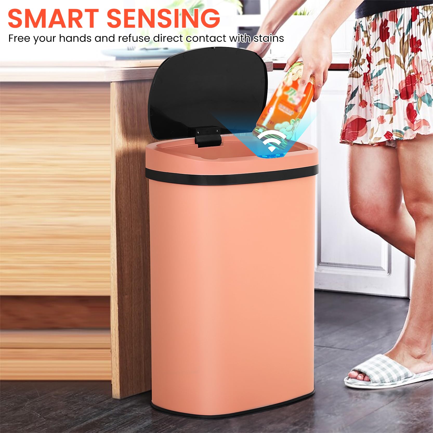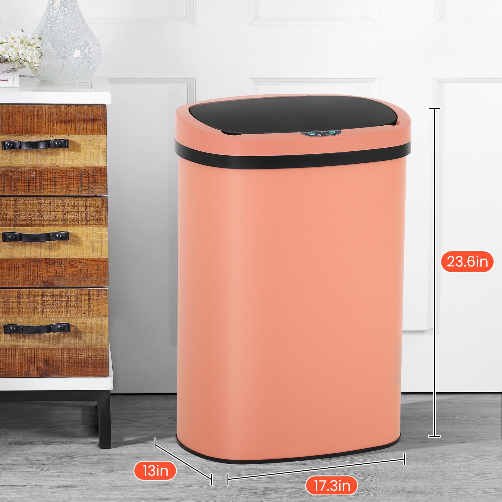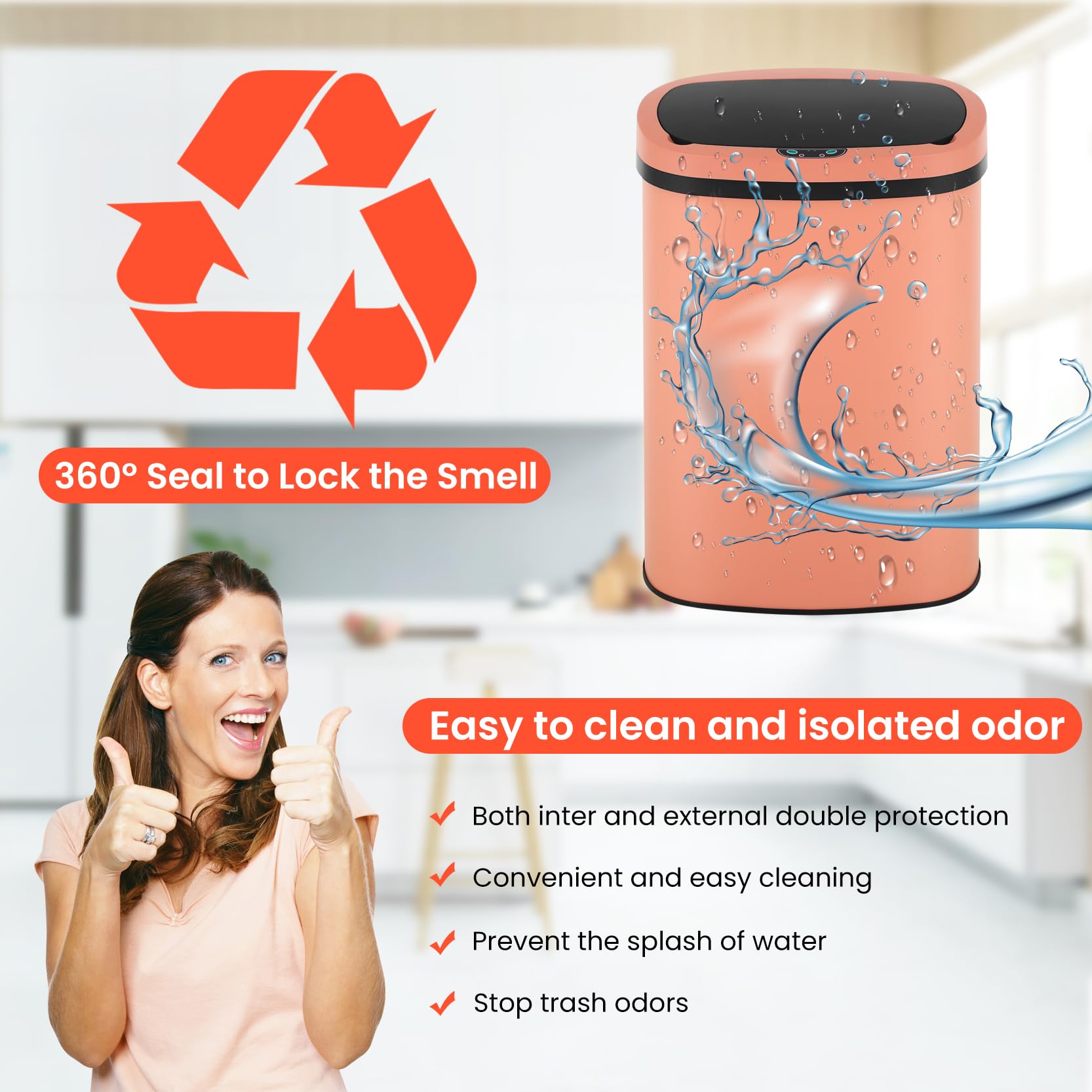 STAINLESS STEEL TRASH CAN: -- This automatic trash can is made of high quality and high hardness Stainless Steel, with smooth appearance more pleasing to the eye than ordinary trash bins, both practical and beautiful. A high quality bin is good for keeping the area around your home clean and tidy