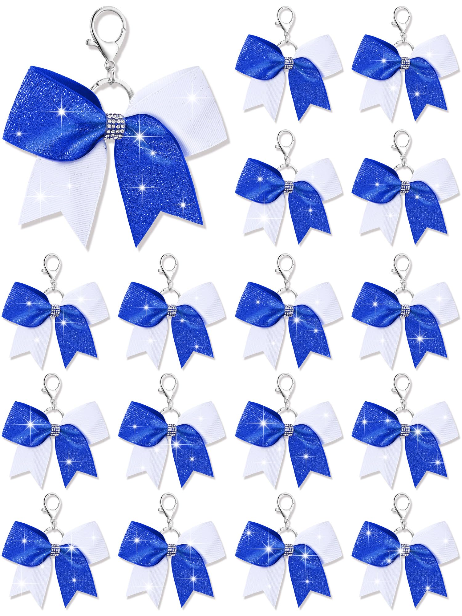 What You Will Get: each package includes 16 pieces of cheer bow keychains, nice for quantity users and suited for various occasions; These cheerleader bow keychains are embellished with a glittery finish, making them decorative charms, and the adequate quantity will meet your various needs