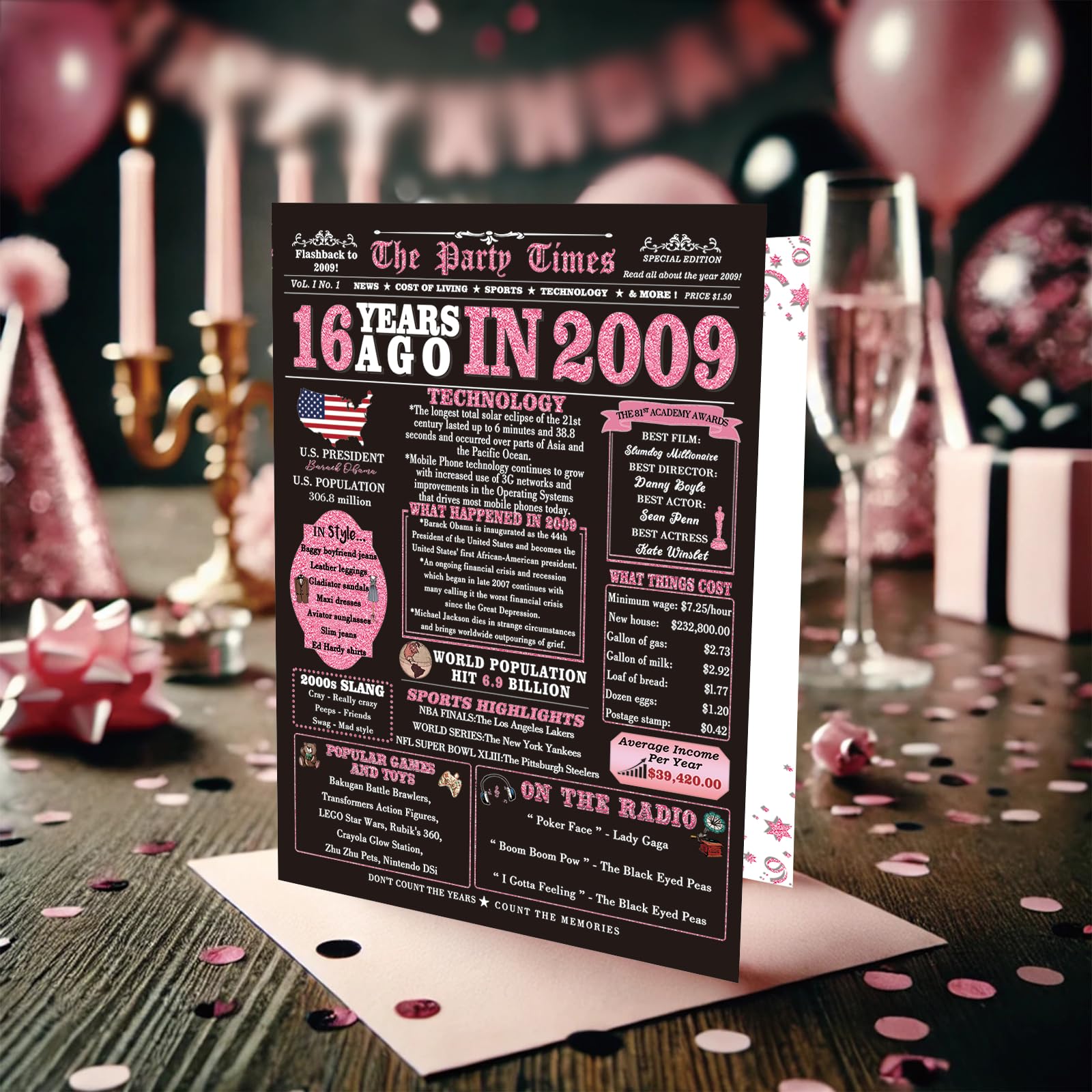 This card features a fun interior design with pink balloons and the words "Cheers to 16 Years." There’s still plenty of space for you to write your own heartfelt message