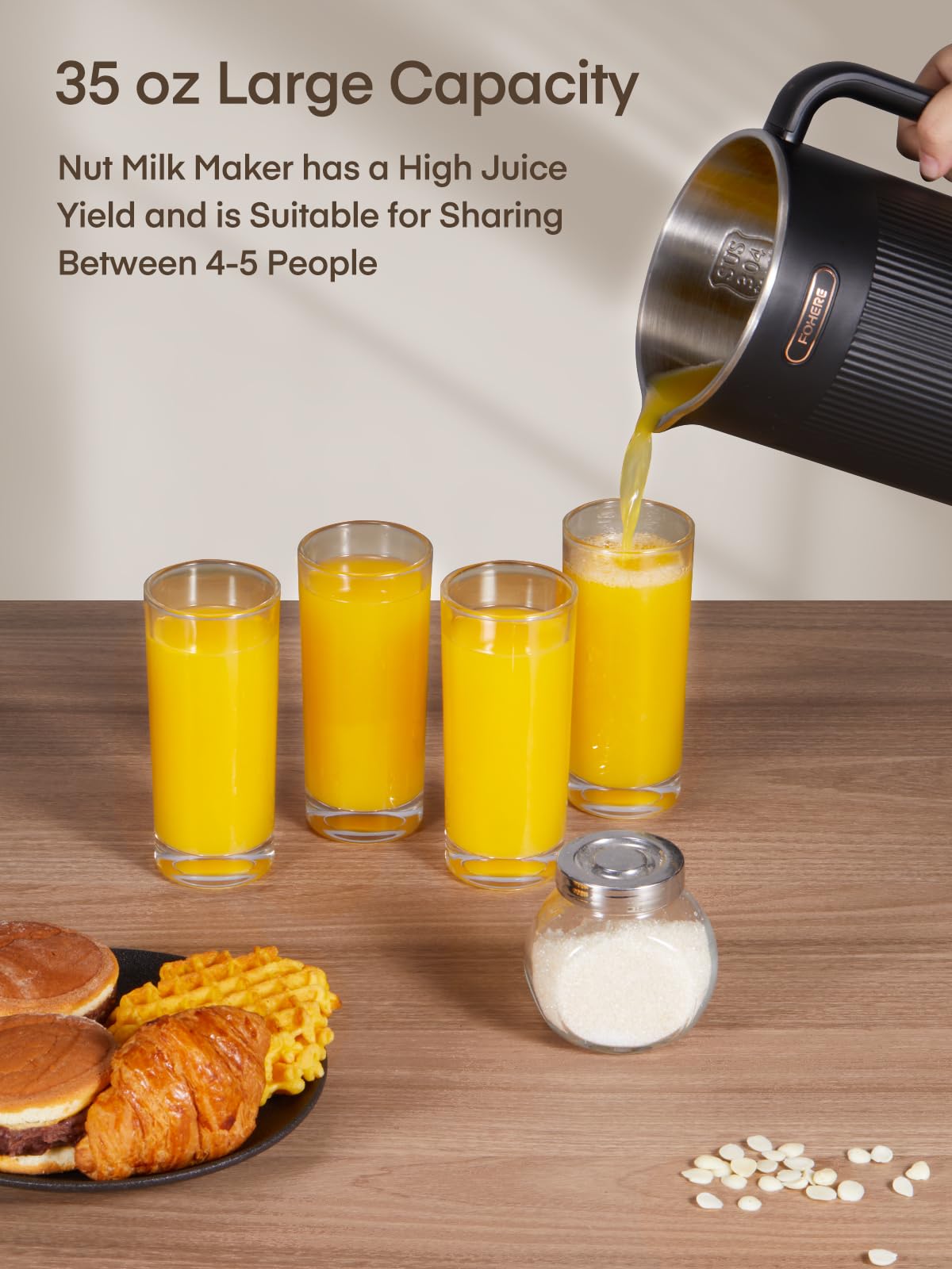 【Large 35oz Capacity for the Whole Family】The 1000ml (35oz) extra-large capacity prepares 4-5 cups per batch, satisfying your entire family's daily needs. Designed with a spill-proof silicone seal and a heat-resistant handle, it fits perfectly on any kitchen countertop. The stable non-slip base ensures quiet, mess-free operation every time.