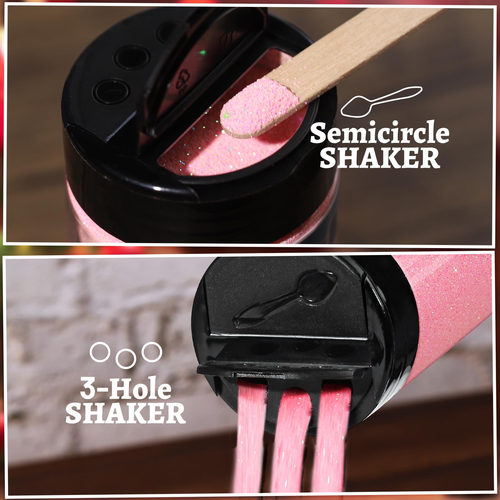 Convenient Shaker Jar: Glitter come in an easy-pour shaker Jar, with two kinds of shakers available on lid, assist to pour evenly, create smooth sparkling glitter surface while reducing waste.