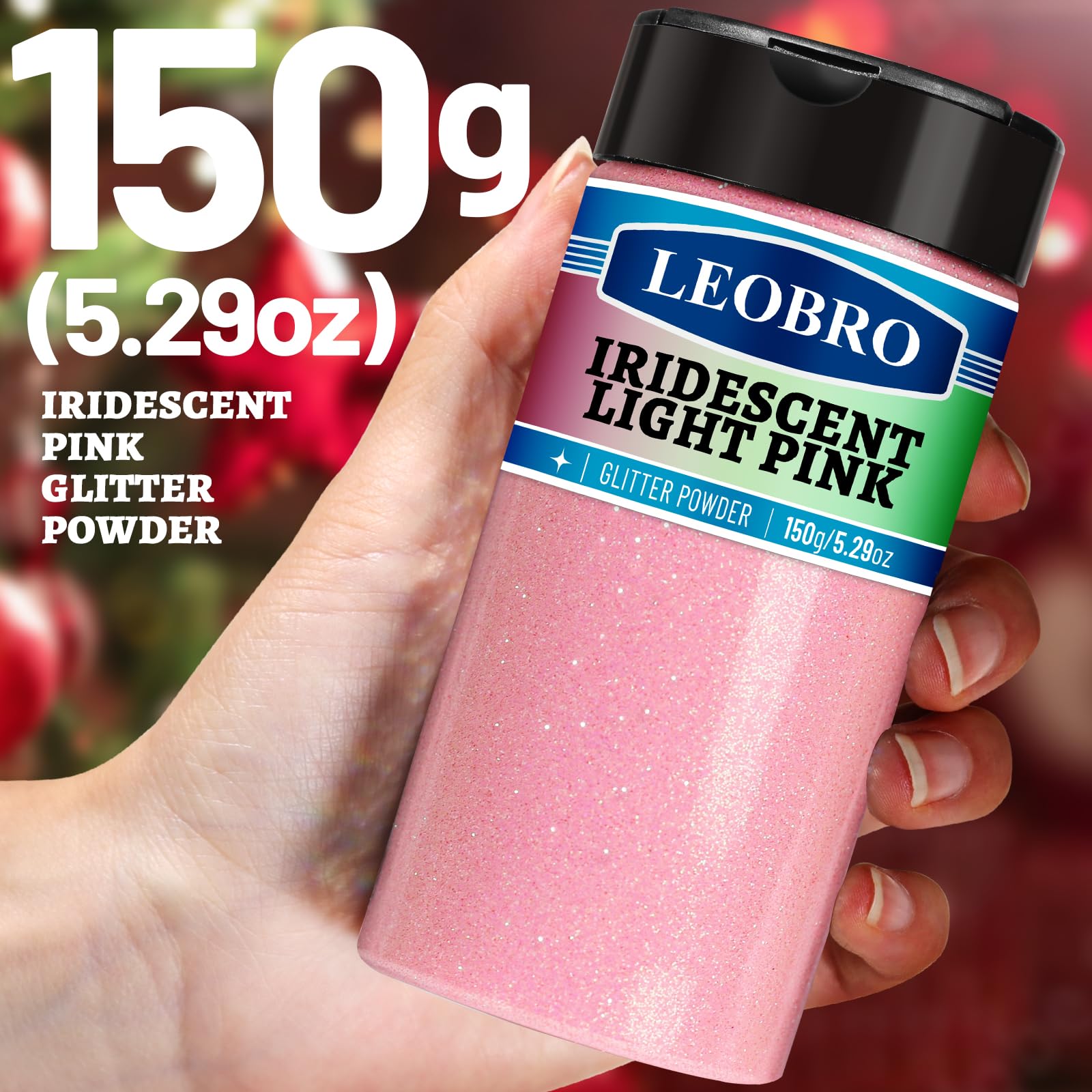 Bulk Iridescent Light Pink Glitter: Amazing iridescent light pink glitter, with secondary pearlescent green color, shines stunningly under light; 150/5.29oz, large amount, can support abundant DIY projects.