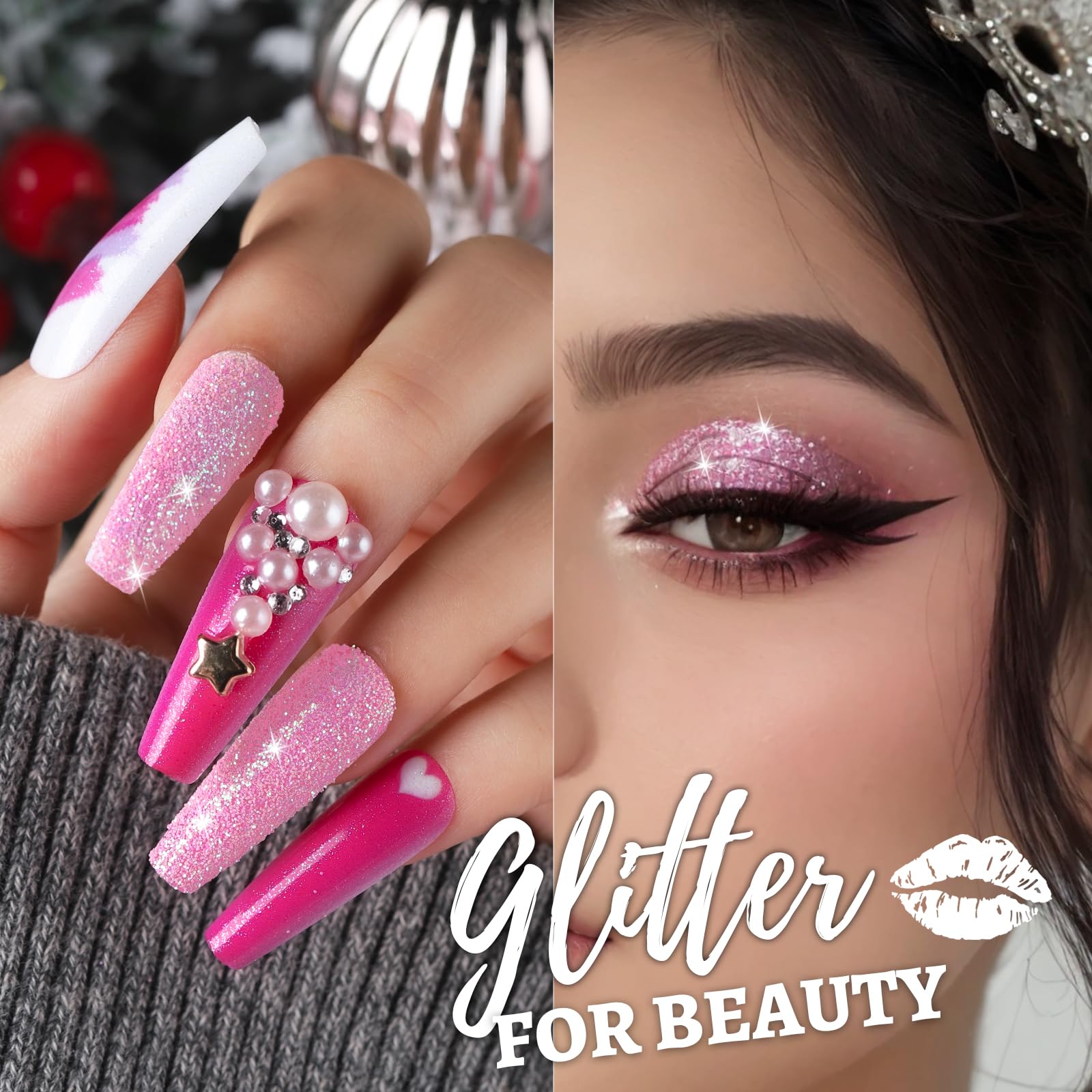 Extra Fine Glitter: 1/128” (0.2 mm) pink fine glitter, can mix seamlessly with epoxy resin, acrylic paint, glue, gel nail polish, etc, bring natural & sparkly luster. Also friendly to body, nail, hair, and face, fine texture helps create natural shiny makeup.