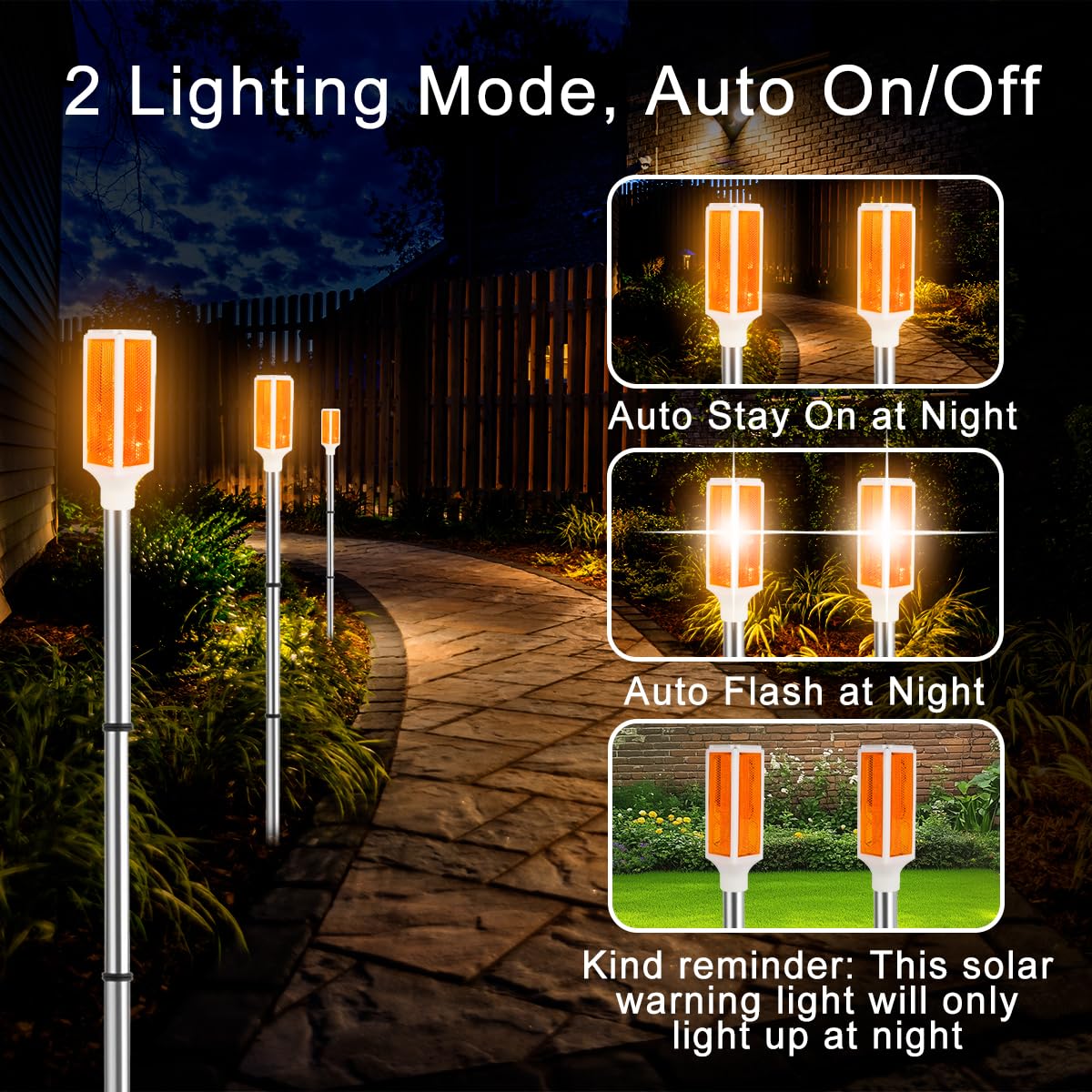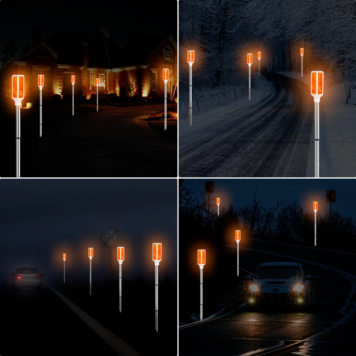 [Illuminate Your Outdoor Space]: You may install this solar power safety light anywhere that needs warning, such as parking lots, sidewalks, driveways, stop sign and also can installed them in gardens, yards, adding a unique decorative effect.