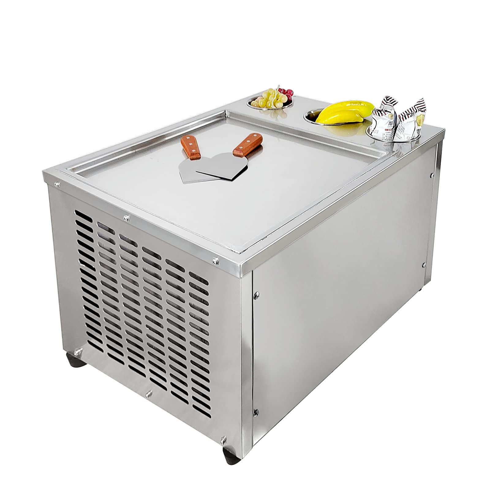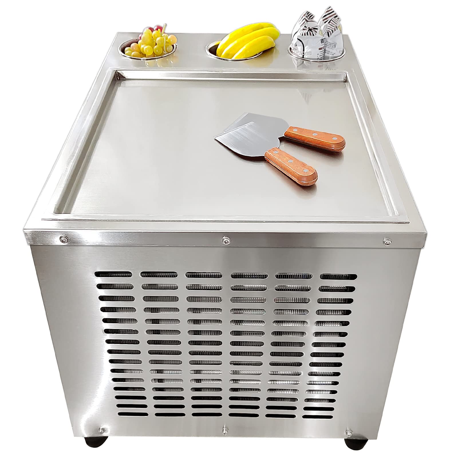 Countertop design roll ice cream machine. Single square ice pan size:18x18 inches (45x45cm) + 3 tanks