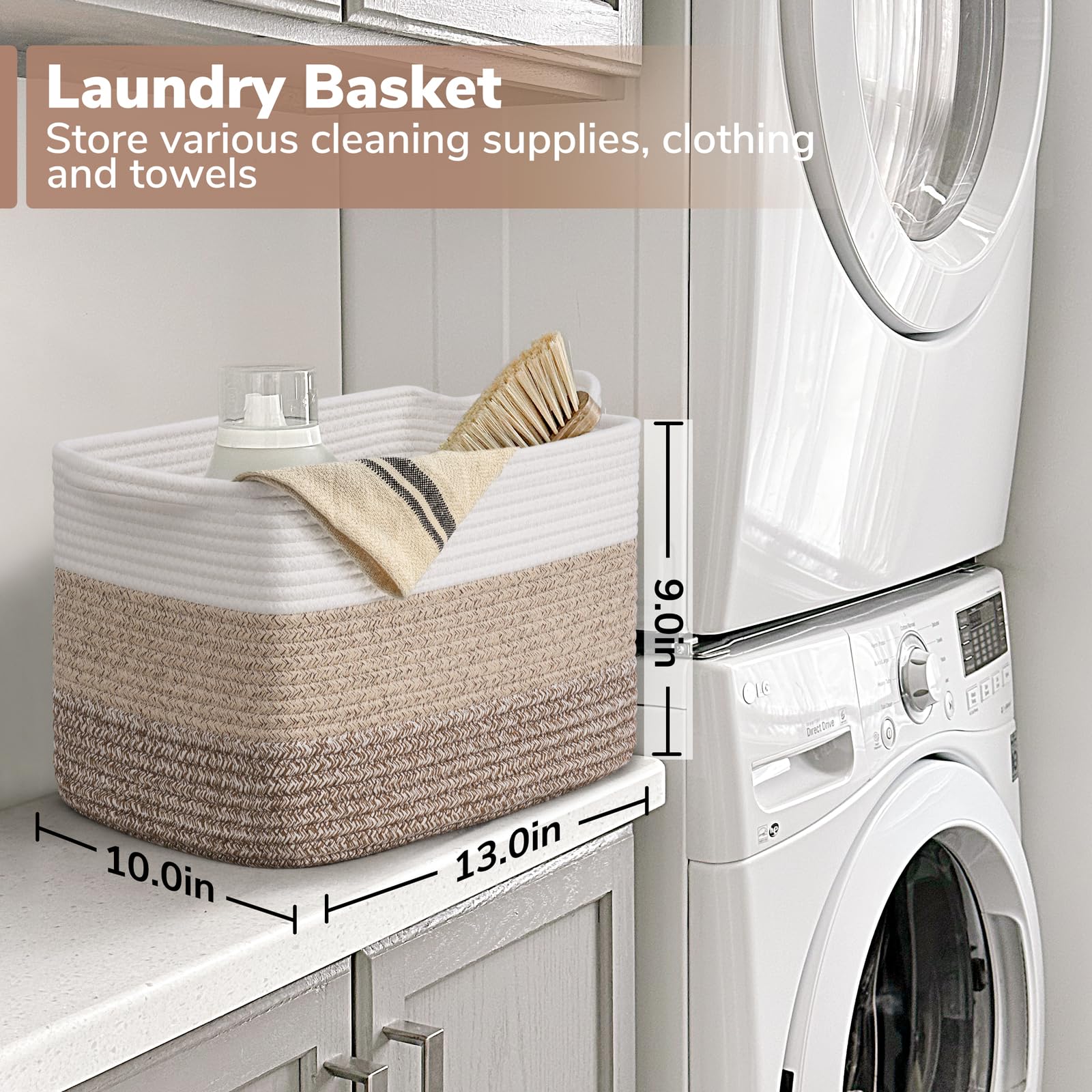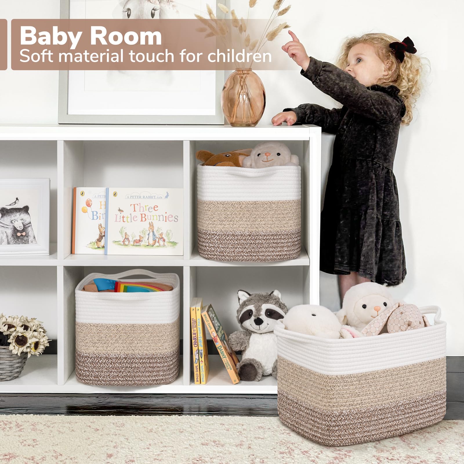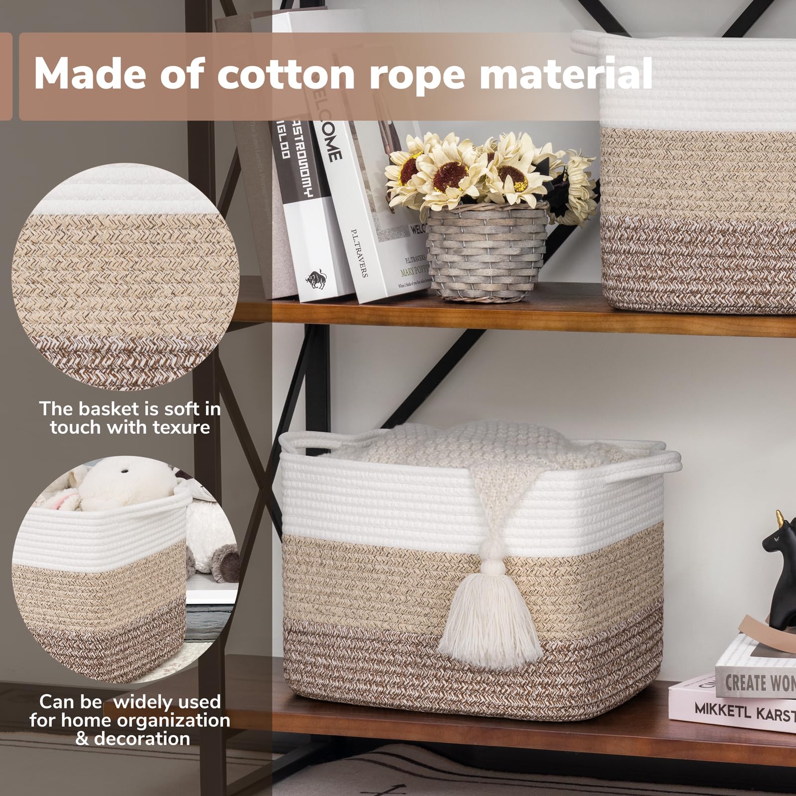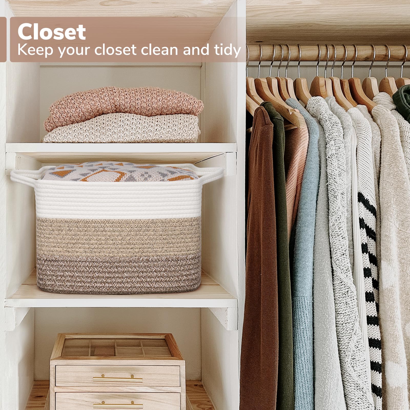 Soft Material: The shelf organizer basket is made of cotton rope. Our rope basket soft yet sturdy enough to stand up on their own and the bottom will never collapse