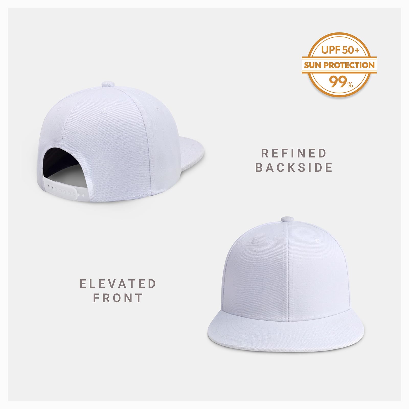 [WE GOT YOU COVERED] - Our all around soft snapback hats will help you from outdoor sun rays and UV lights. The snapback hat is assured to cover around 99.9% UPF 50+ sun protection, which provides excellent full coverage for the face, neck, and other sensitive areas.