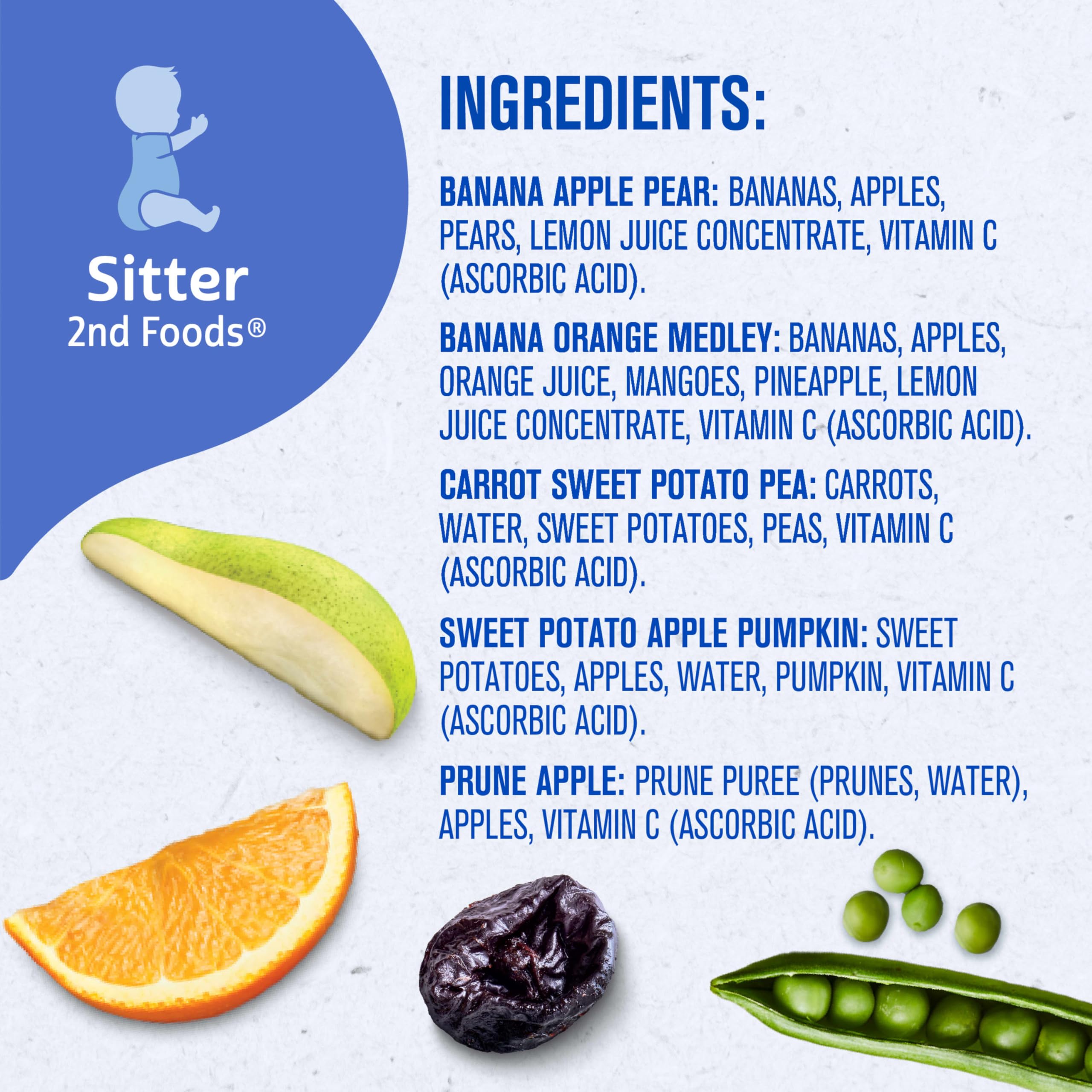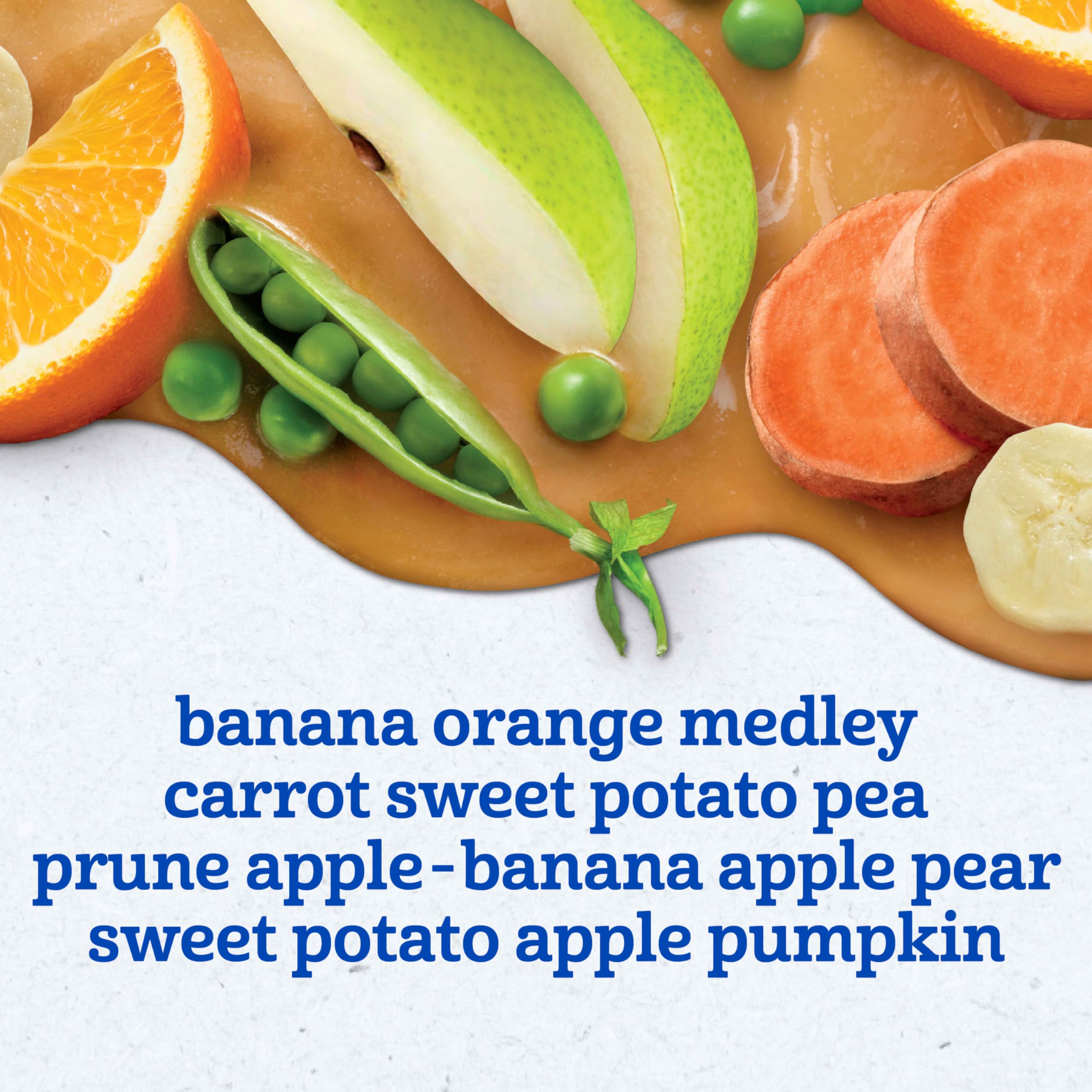 VARIETY PACK: This nutritious baby food variety pack comes with 5 fruit and veggie purees: banana apple pear, banana orange medley, carrot sweet potato pea, sweet potato apple pumpkin, prune apple