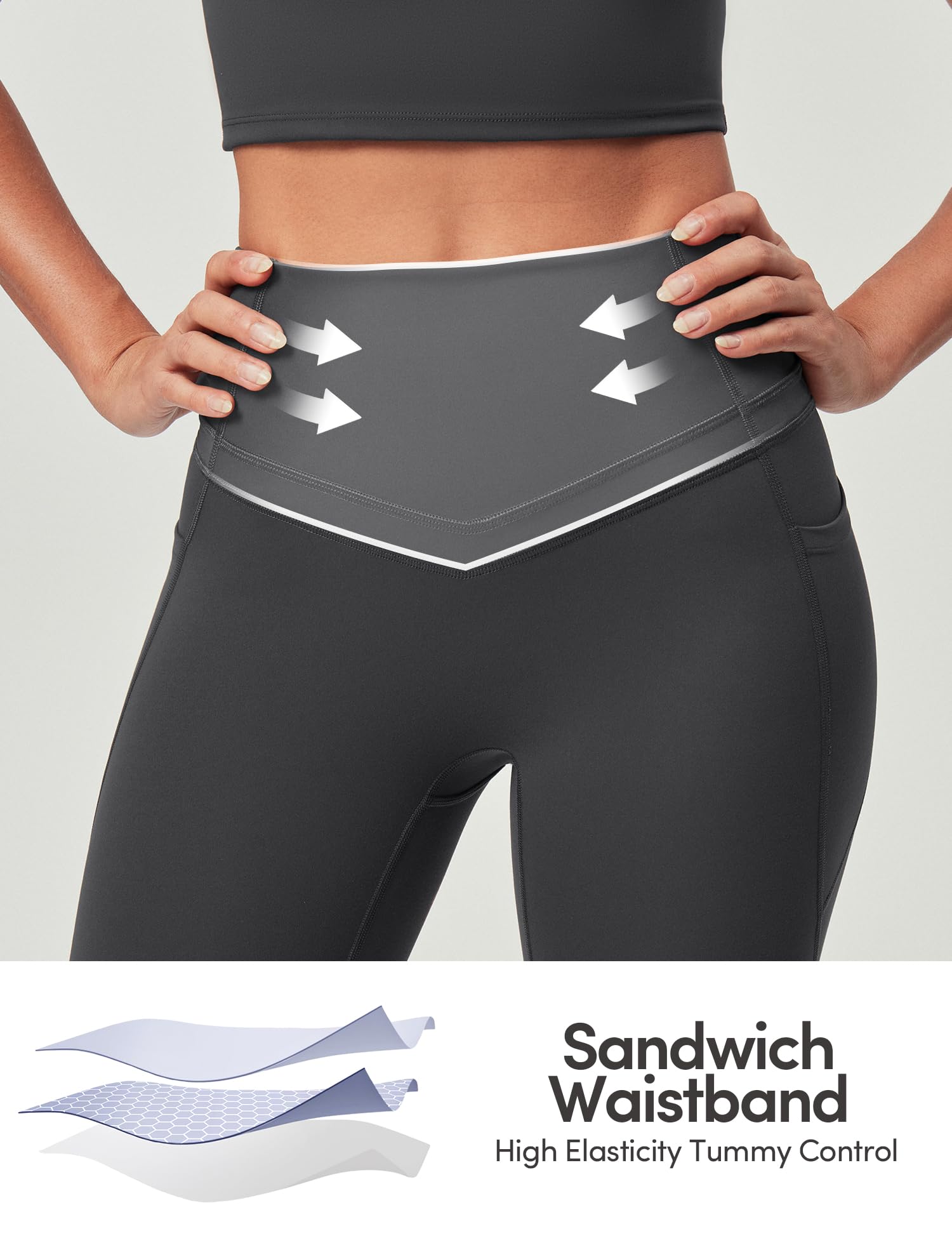 Sandwich Waistband for Tummy Control: The 5.9" high-waisted waistband, which adopts double-layer stretch fabric sandwiched with high-stretch mesh, provides an excellent tummy control effect, flattens your waistline, and shapes stylishly while remaining comfortable. Show off your best assets with confidence in these tummy control leggings with pockets for women