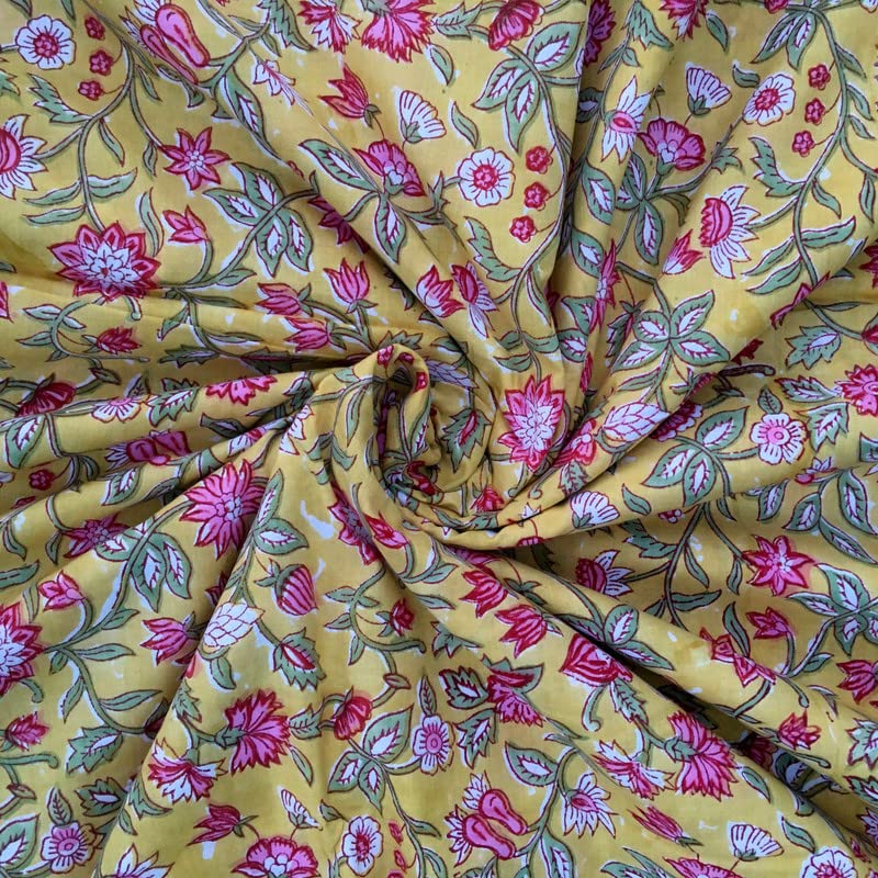 FABRIC WIDTH: 44" And LENGTH: 3 Yards. , Color: Mustrad Yellow . 100% Soft Cotton medium weight, Indian Wood Hand block fabric.