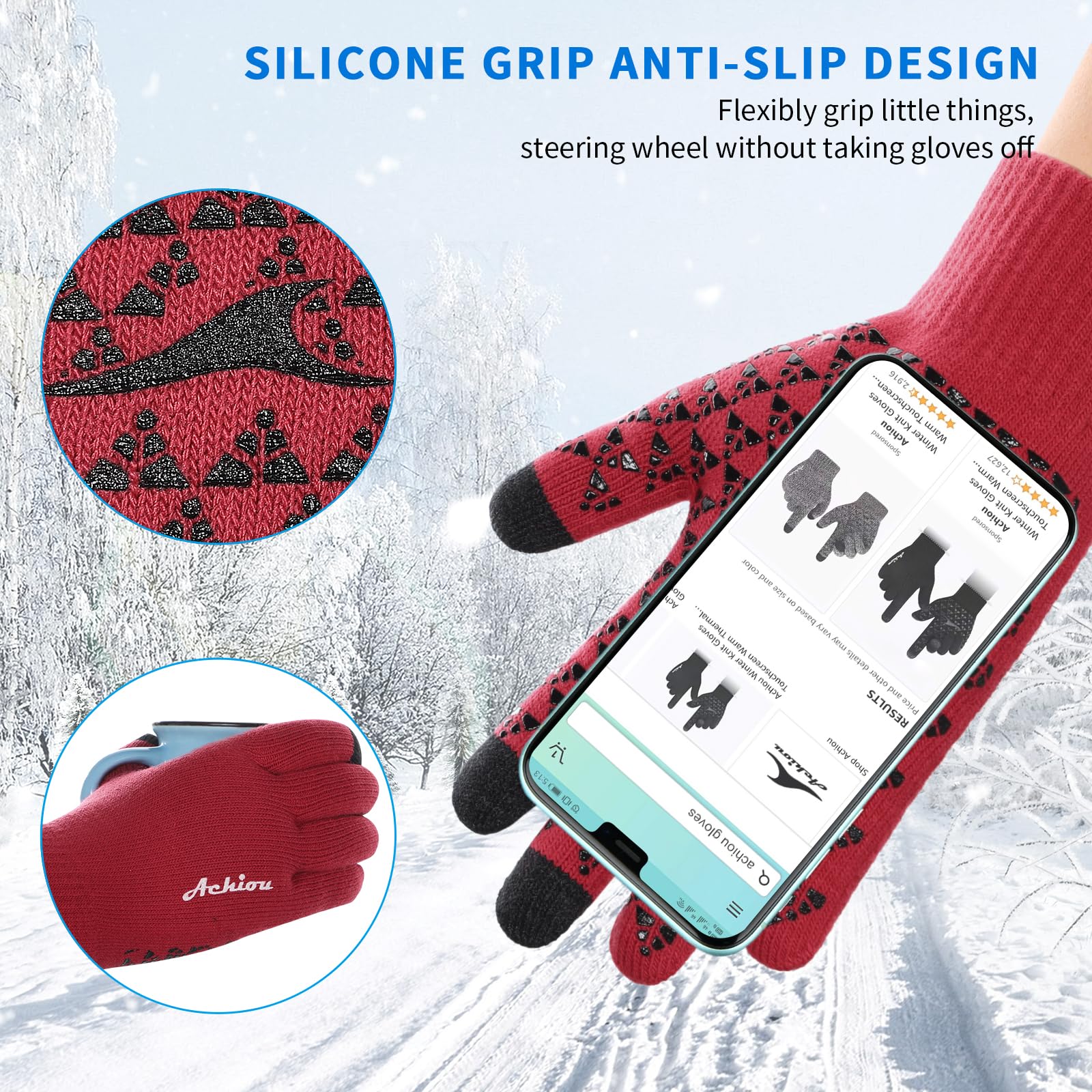 Convenient & Breathable Material : Living in the technology age, Achiou winter knit gloves let you use your phone without having to expose your hands. Breathable material allows the gloves to ventilate in order to decrease sweat accumulation.