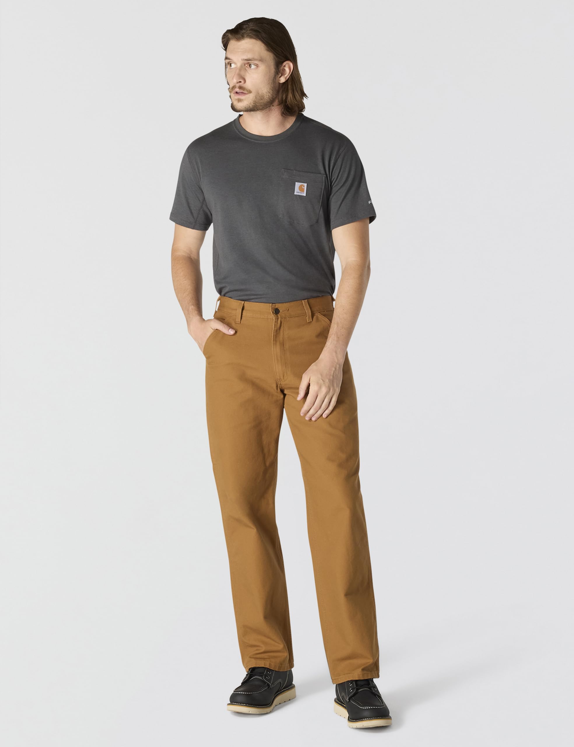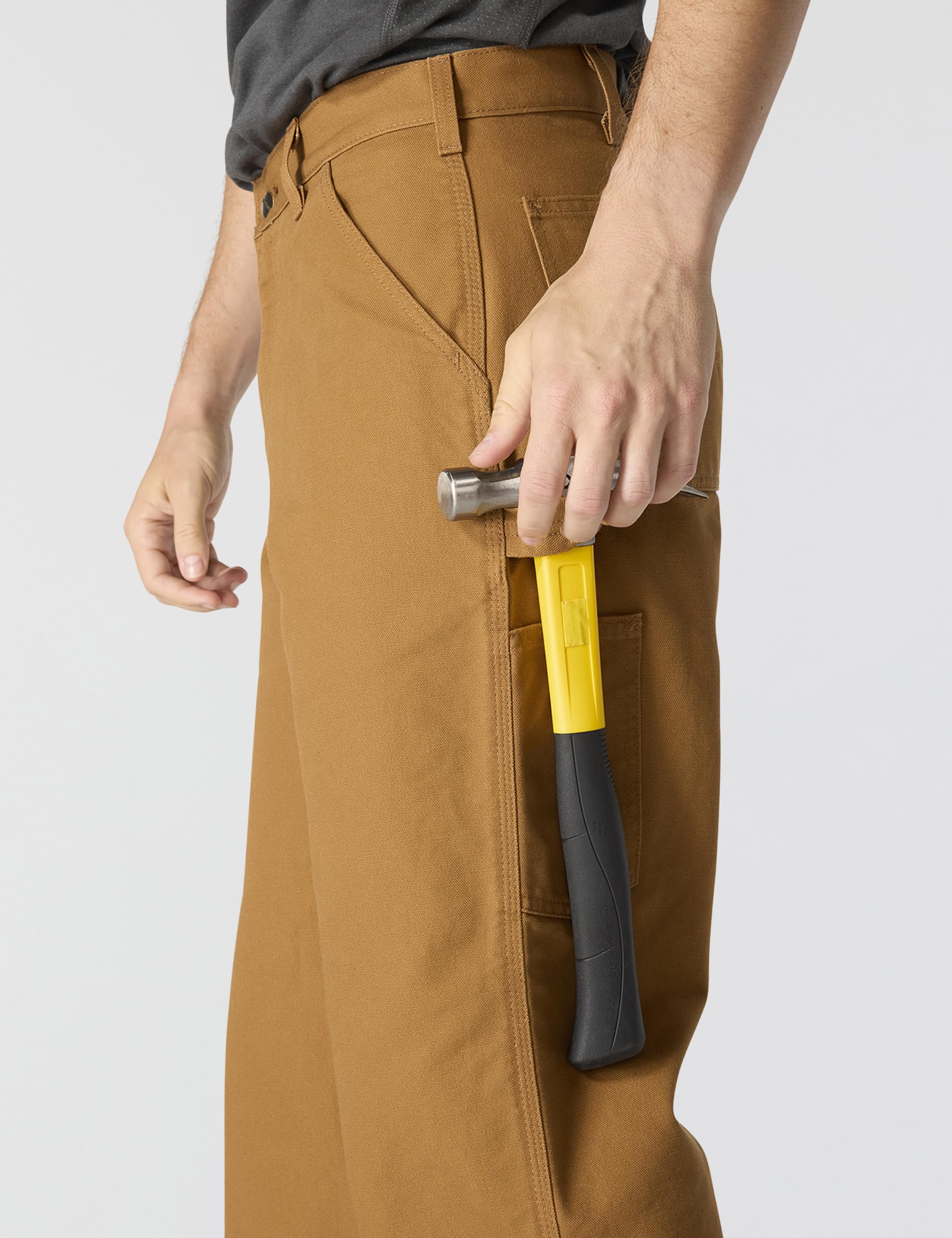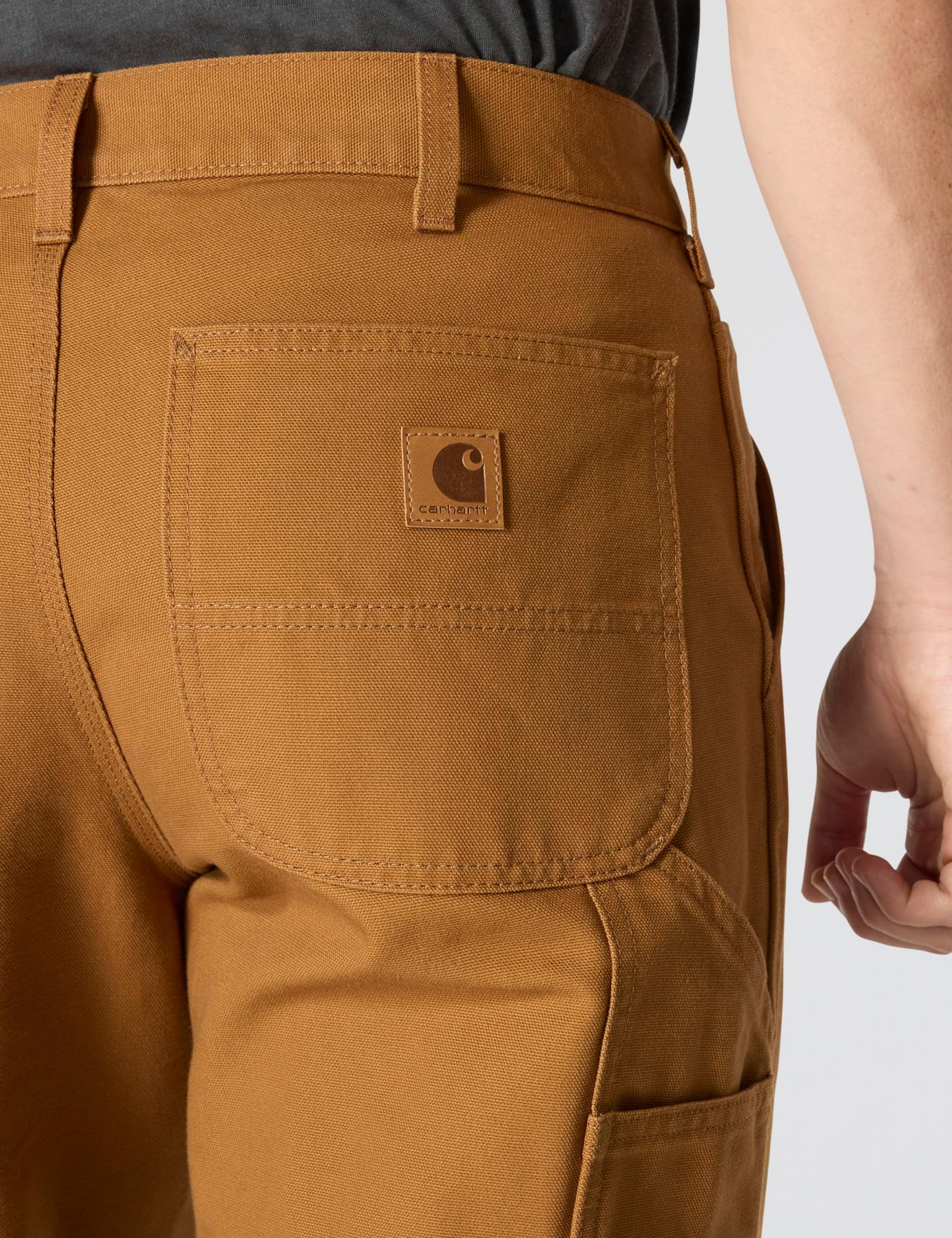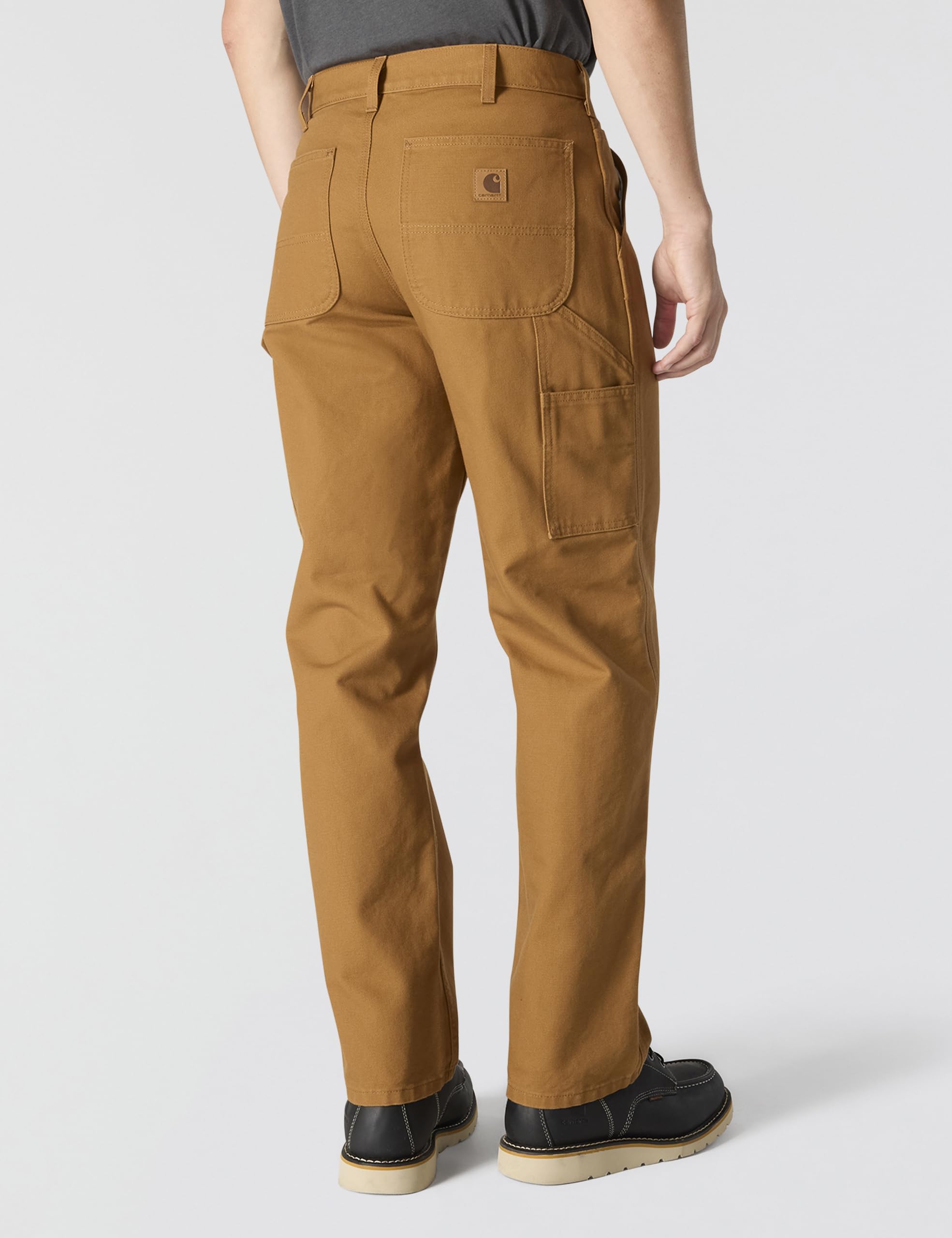 Description Comfortable, practical and long wearing, carhartt's washed duck work dungaree is made of premium 12-ounce, 100% ring-spun cotton duck. There's a full seat and thigh, plus a fit that sits at the natural waist. The dungaree is outfitted with multiple tool and utility pockets plus a hammer loop. The back pockets are reinforced. And, the 19-inch leg openings fit over work boots. field-tested 12-ounce, heavyweight, 100% ring-spun cotton duck sits at the natural waist full seat and thigh . CARE INSTRUCTIONS :For duck pants, do not use bleach. We recommend you machine wash them on the warm cycle, tumble dry on medium heat, and take them out of the machine promptly once dry