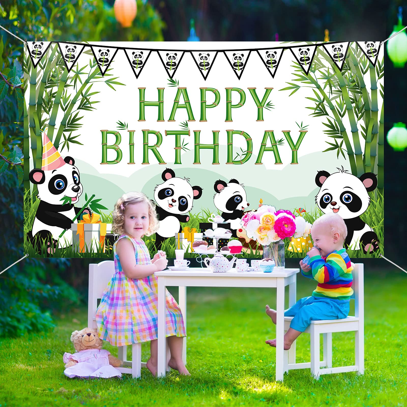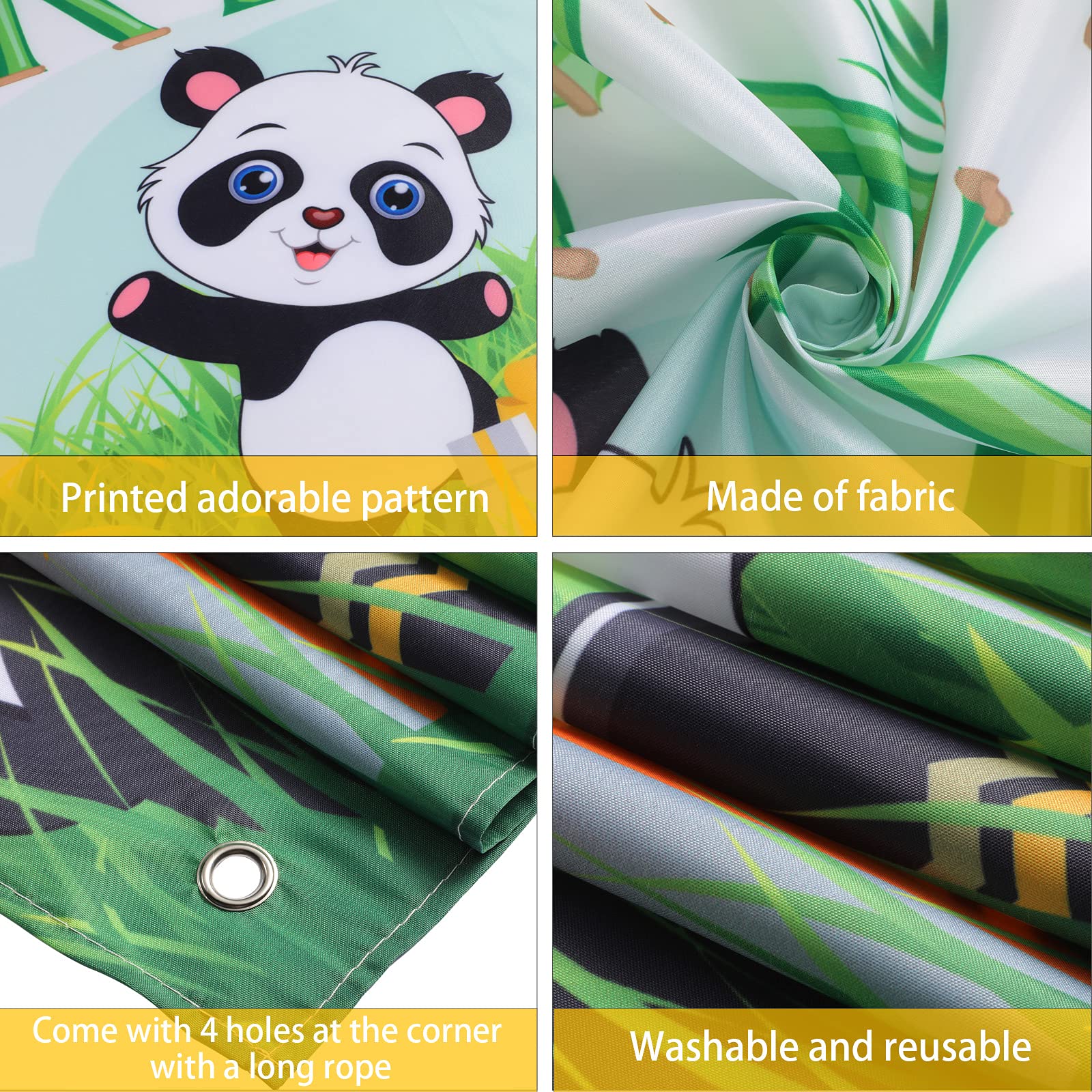 Easy to assemble: there are 4 copper holes respectively in the 4 corners of the panda birthday photo backdrop, making it convenient for you to hang it through the white rope; It's easy to install anywhere, which saves your time on assembly