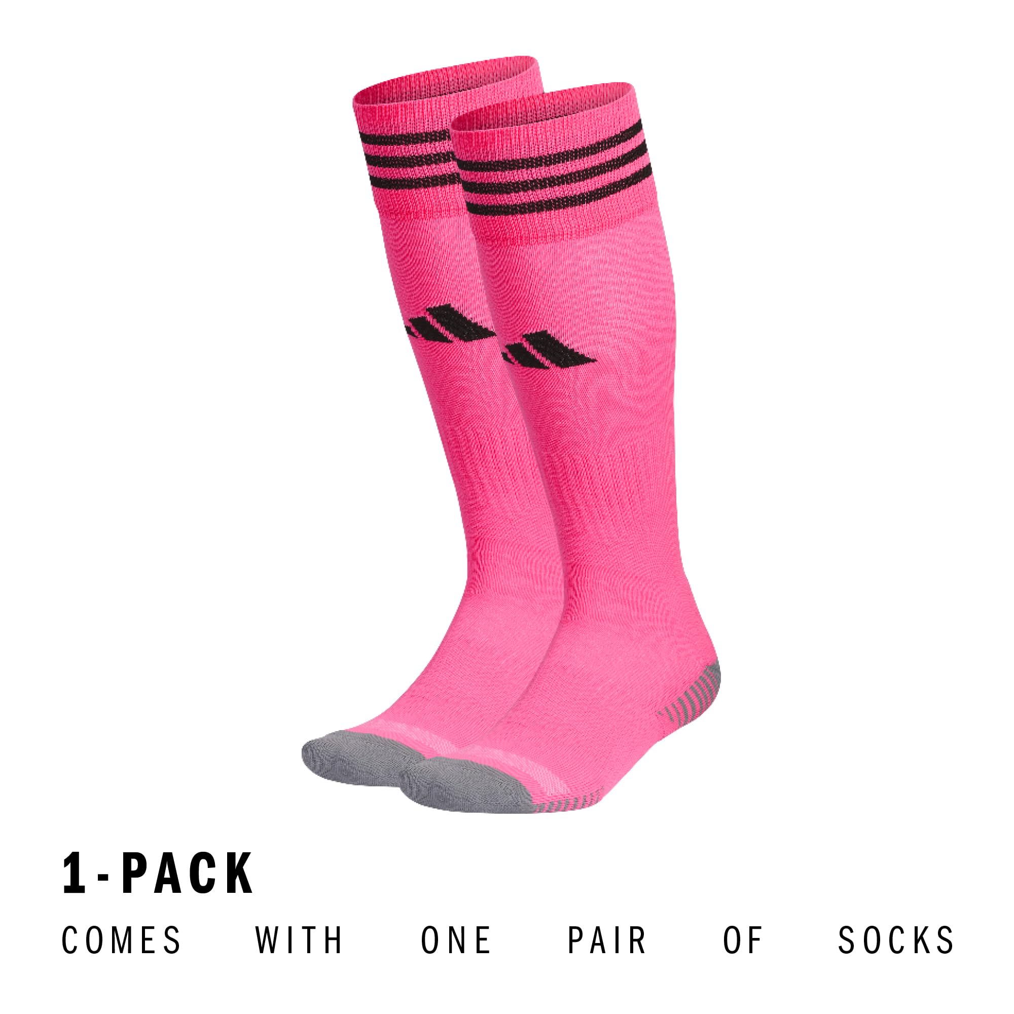 Description Get ready for the game with these adidas soccer socks, designed to elevate your performance on the field. These womens and mens socks offer moisture-wicking yarn to keep your feet dry from sweat. The classic 3-Stripe finish at the welt and center front Badge of Sport logo add a touch of style that's synonymous with adidas soccer. Whether you’re in the midst of a competitive match or a casual game, cushioning at the heel and toe provides the shock absorption you need. The adidas Copa Zone Cushion 5.0 socks feature compression for a secure fit and additional support. These womens and mens compression socks include arch and ankle support, providing stability. The airy mesh and lightweight construction offer a close fit and excellent ball touch, making them ideal running socks for men or women who seek both comfort and performance. These over-the-calf socks offer the classic fit and protection you'd expect. Perfect for both casual use and high-intensity activities, these socks are a versatile addition to any athlete’s wardrobe. Experience the superior quality and functionality of adidas soccer socks.
