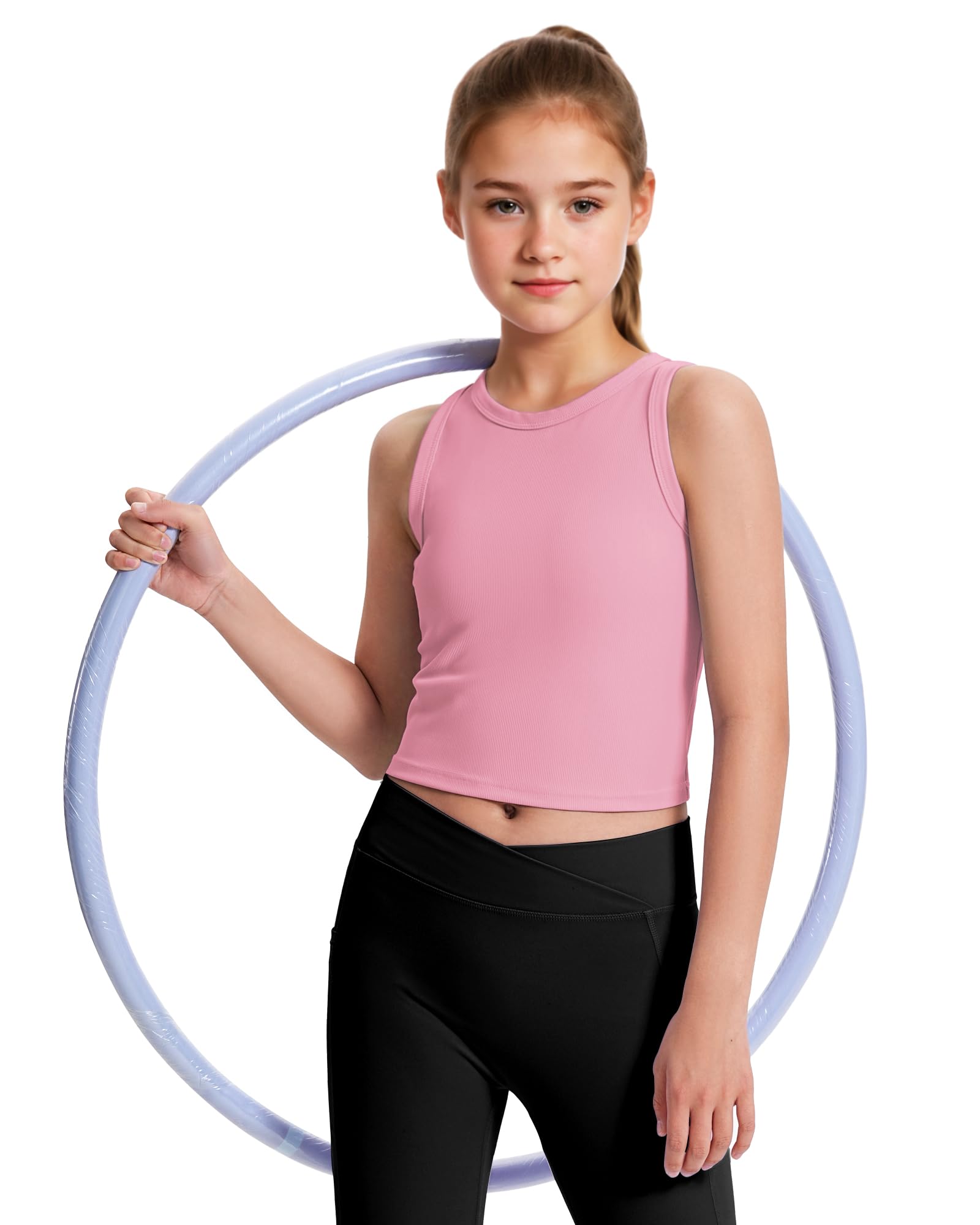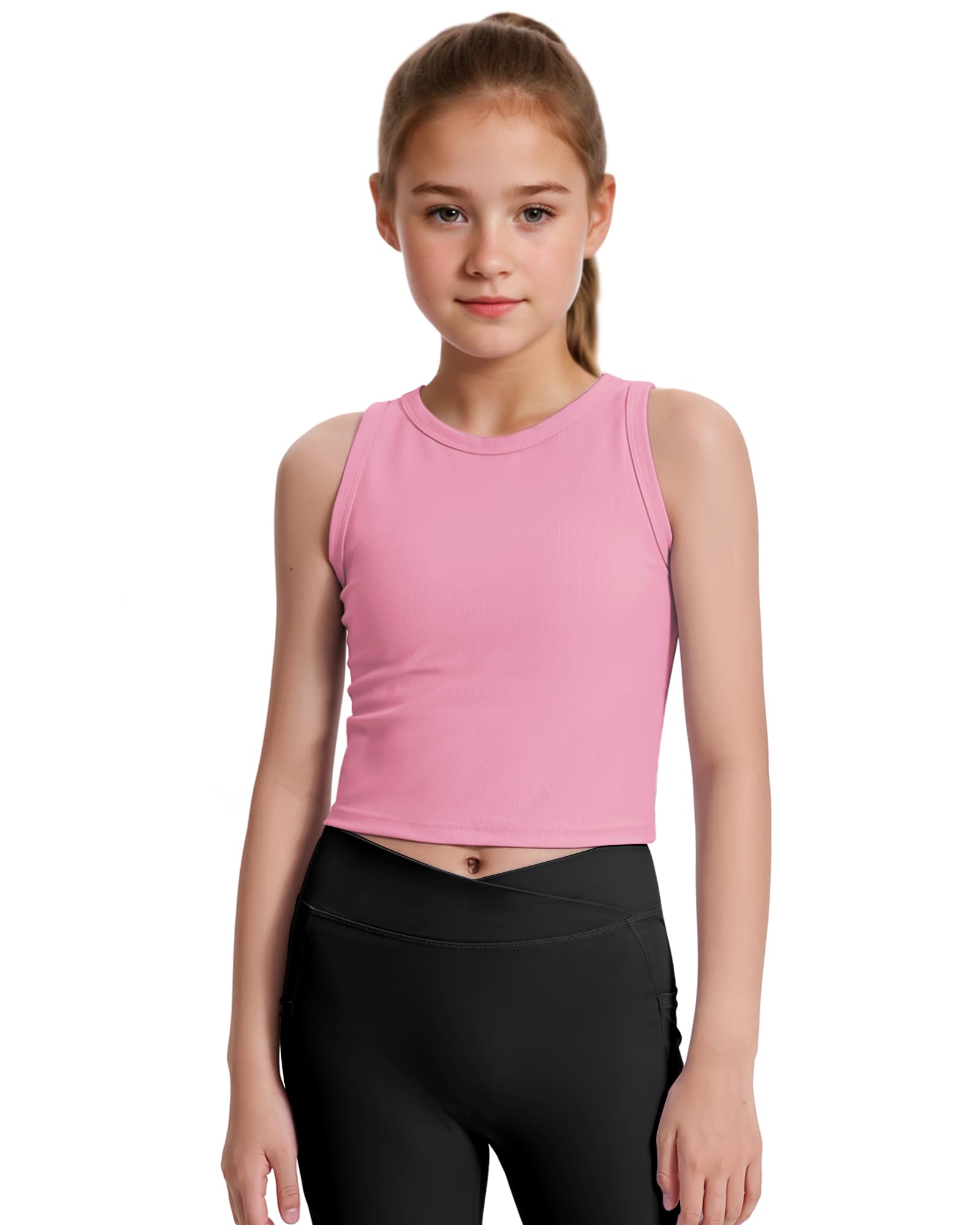 Girls Ribbed Crop Top: The ribbed knit fabric ensures durability and a snug fit, non-transparent, no pilling, making it a great choice for girls workout tops and athletic activities