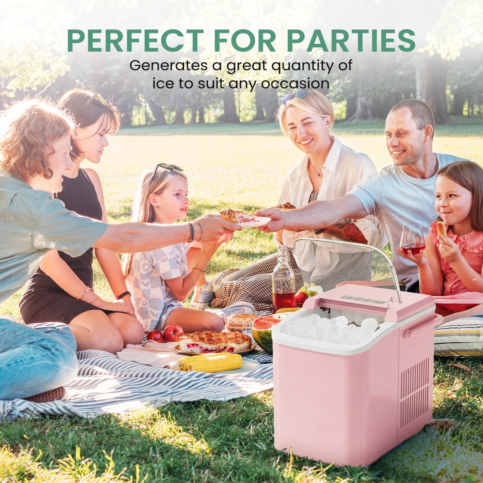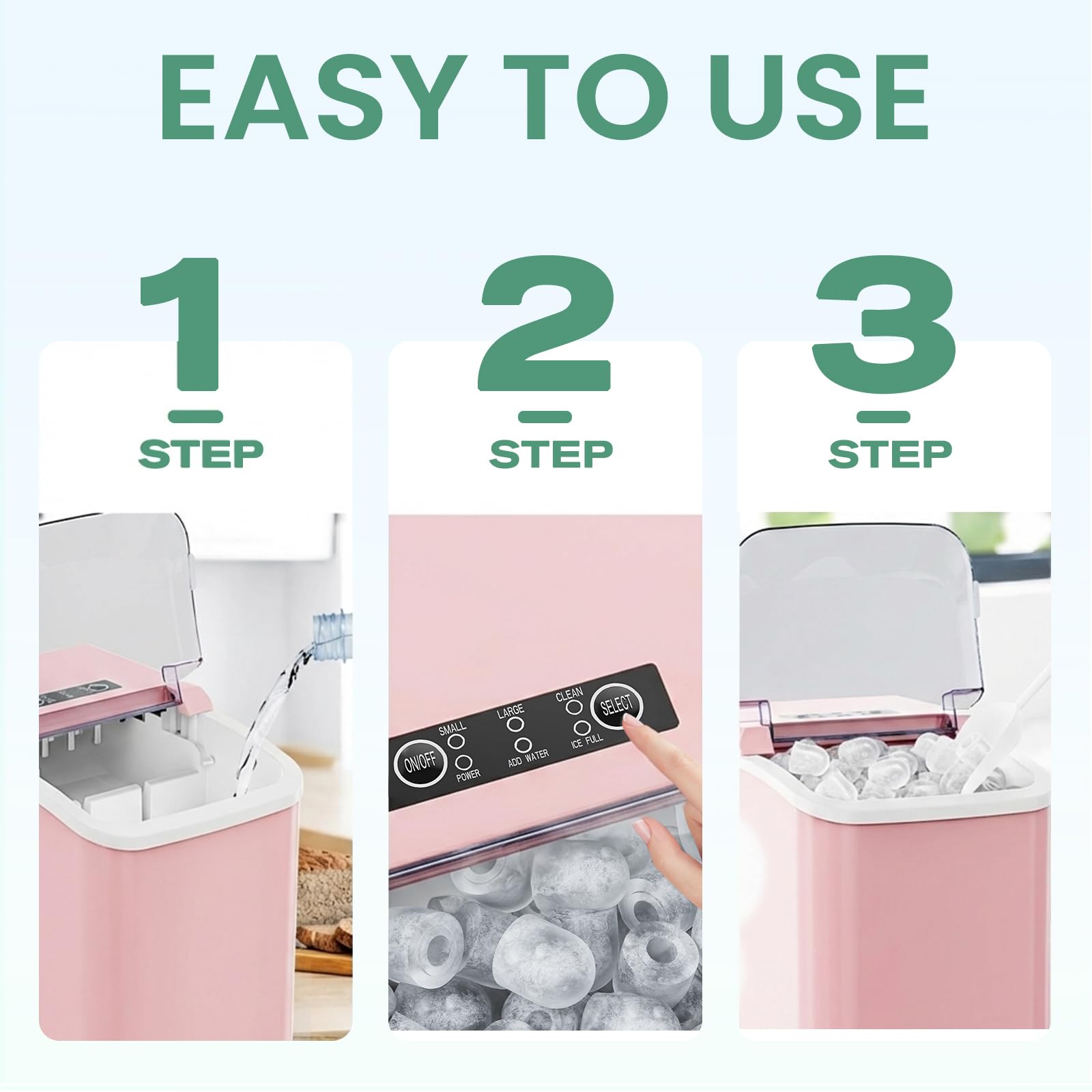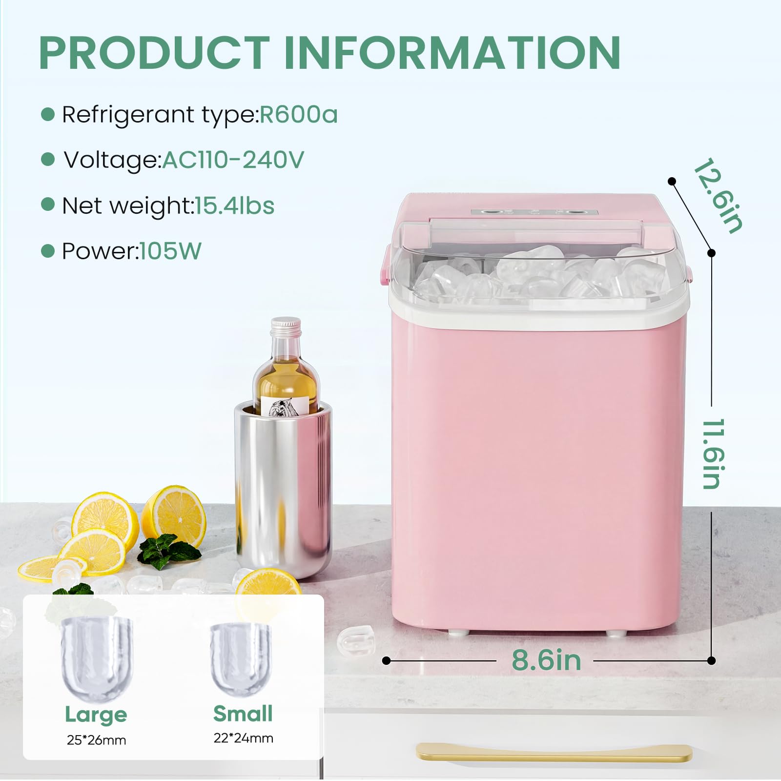 Versatile with Two Ice Sizes & Easy-Fill Tank: Enjoy customizable ice with two size options to suit any drink. The portable ice machine features a 1.5L easy-fill water tank and compact design, making it a flexible portable ice maker perfect for countertops, RVs, or small gatherings.