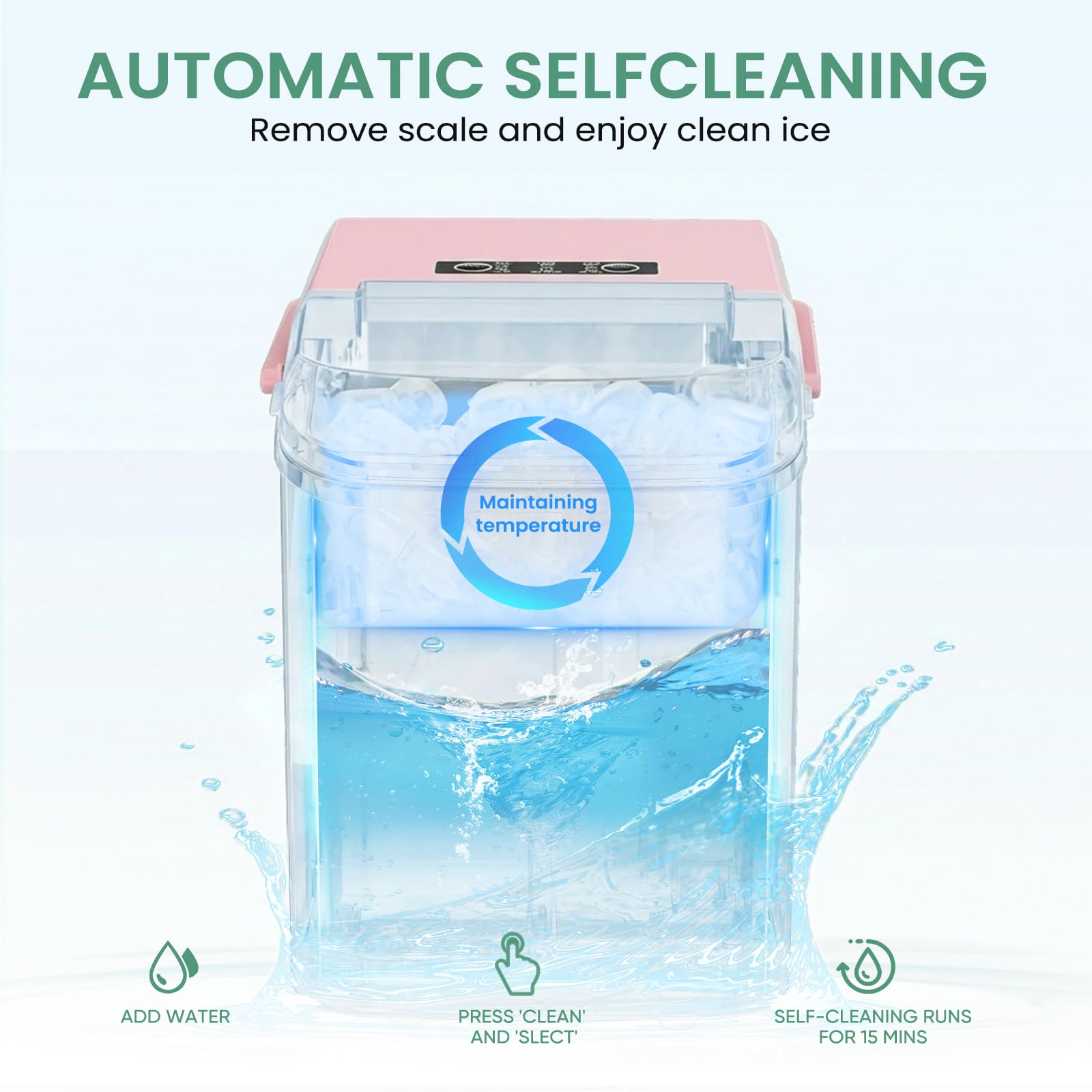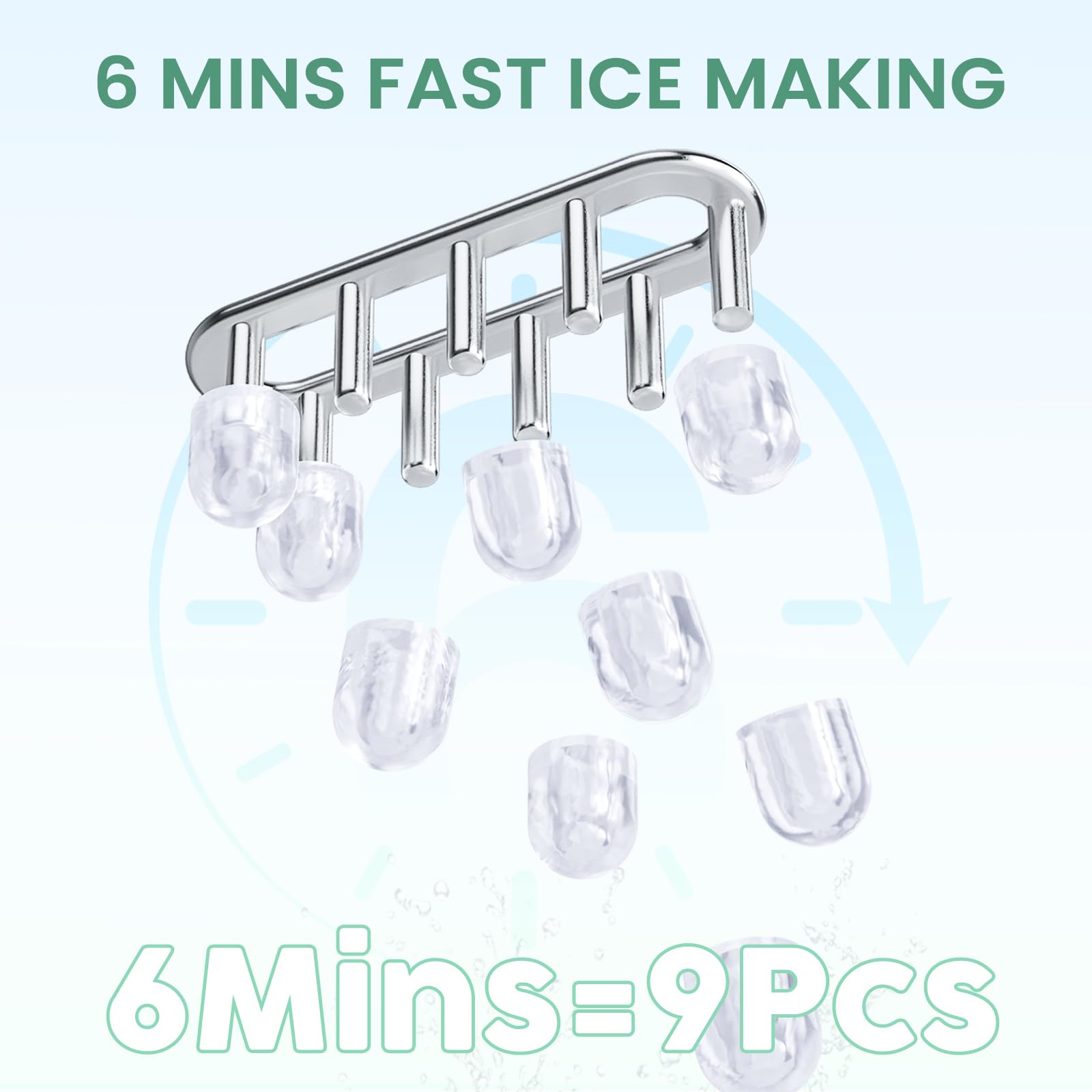 Effortless Self-Cleaning in 15 Minutes: Keep your ice pure with the convenient 15-minute self-cleaning cycle. This ice makers countertop unit from KMFurnila automatically cleans itself, removing mineral buildup and ensuring every batch of ice tastes fresh and clean—no manual scrubbing required.