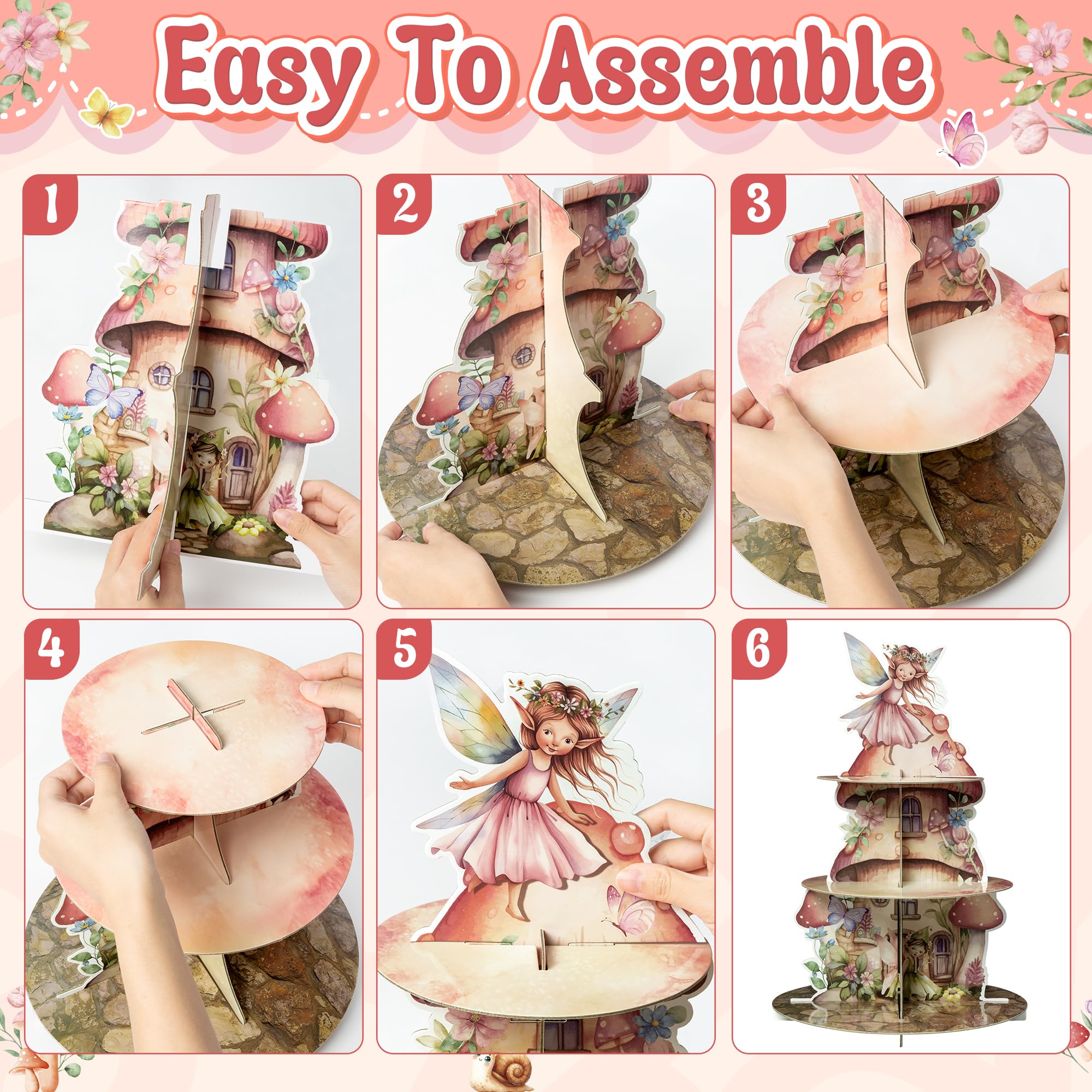Easy to Assemble: The cute pink fairy cupcake holder features a detachable and portable design, making it easy to assemble. Follow the instructions to complete the installation in just 2 minutes; You can also easily disassemble it and store it for reuse.