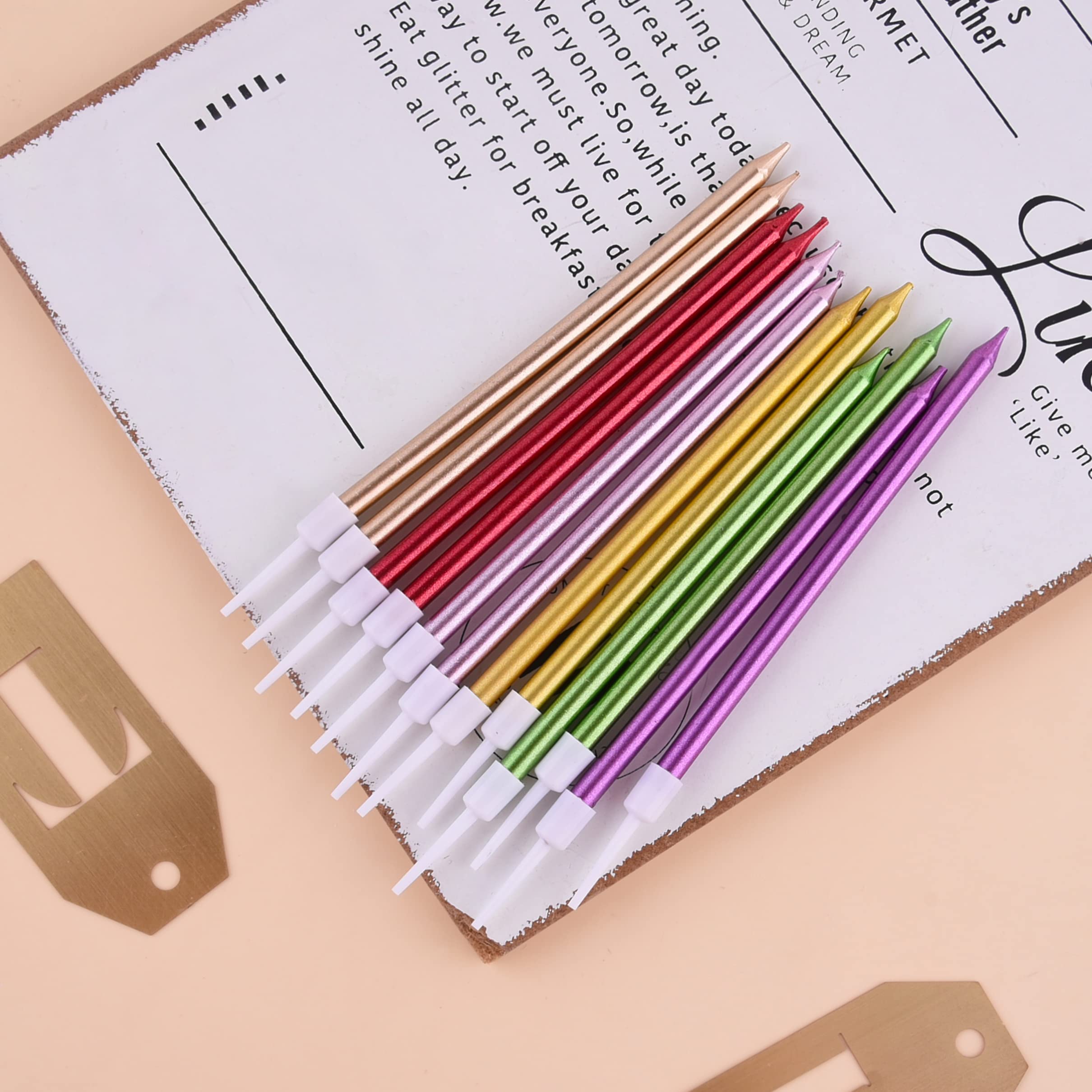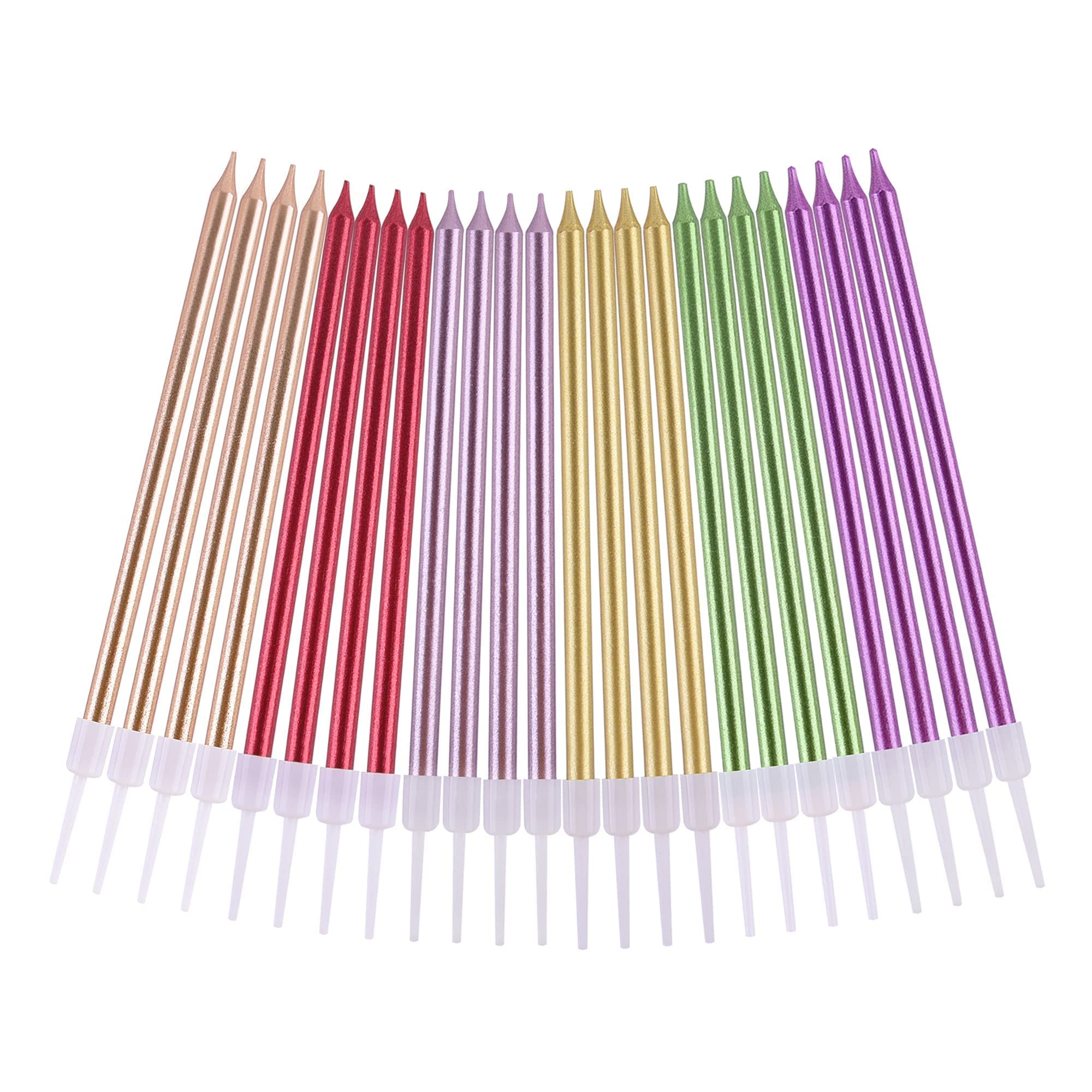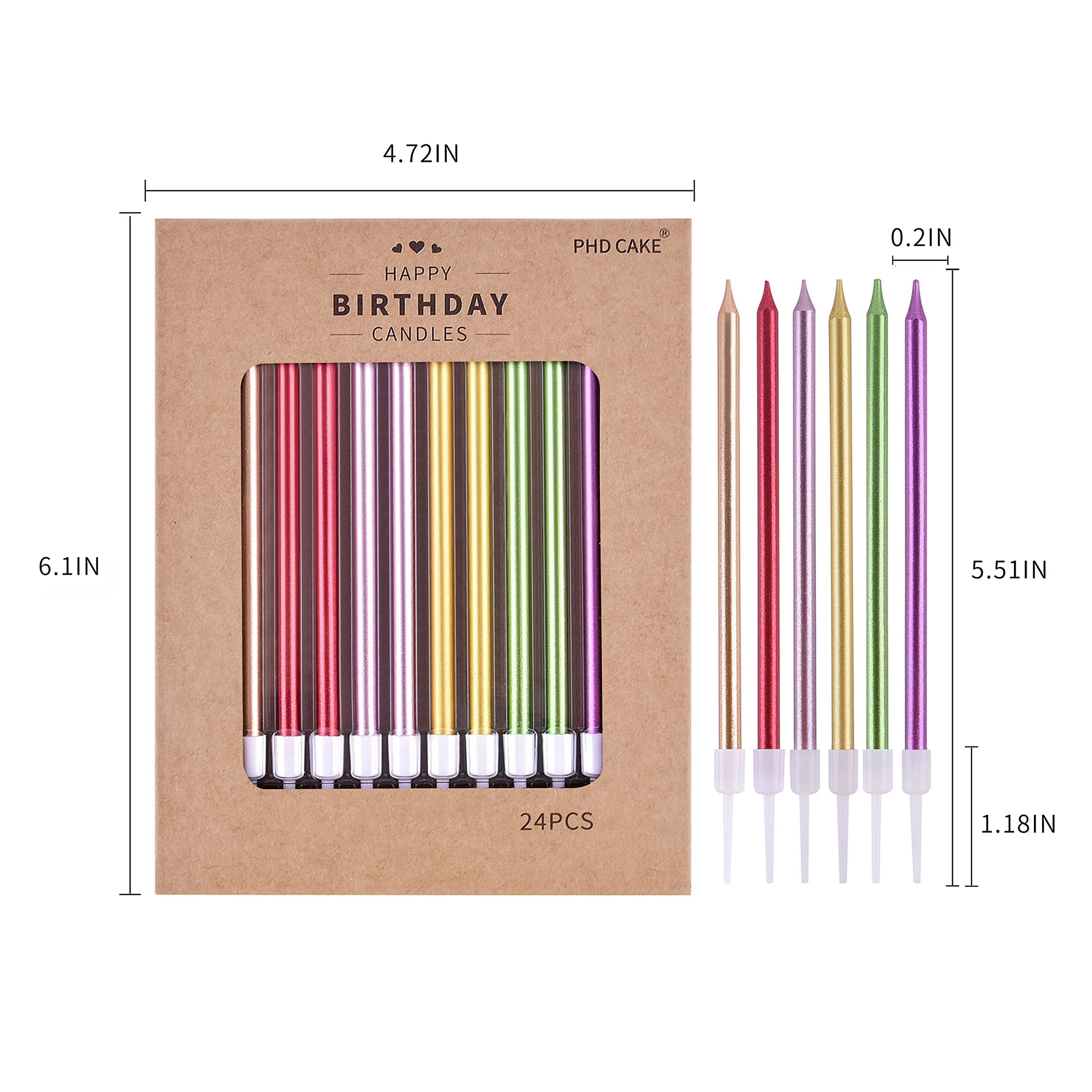 New: 24 long, thin & tapered elegant multicolor cake candles designed to make your cake and birthday a unique and truly inspiring event.