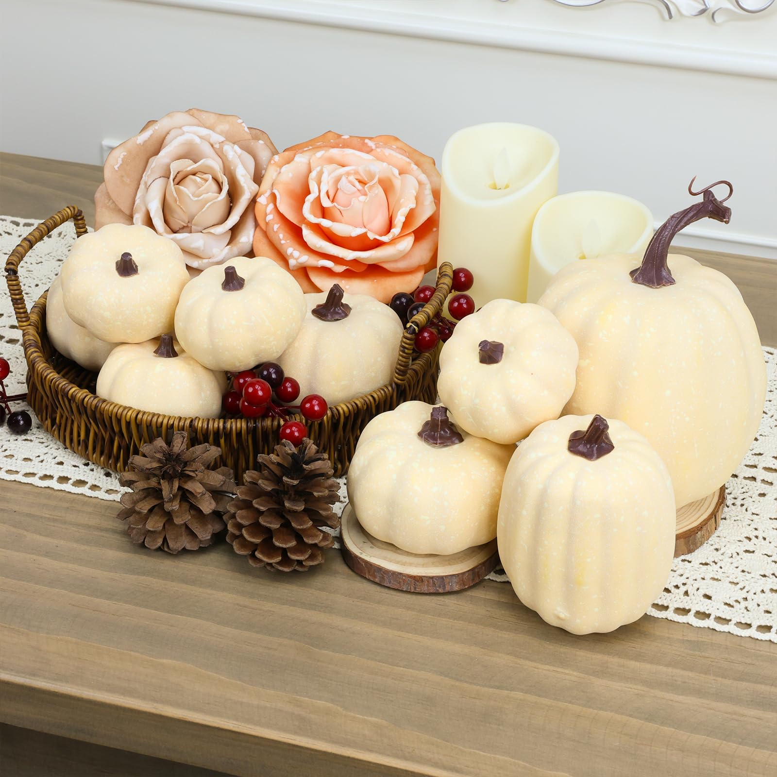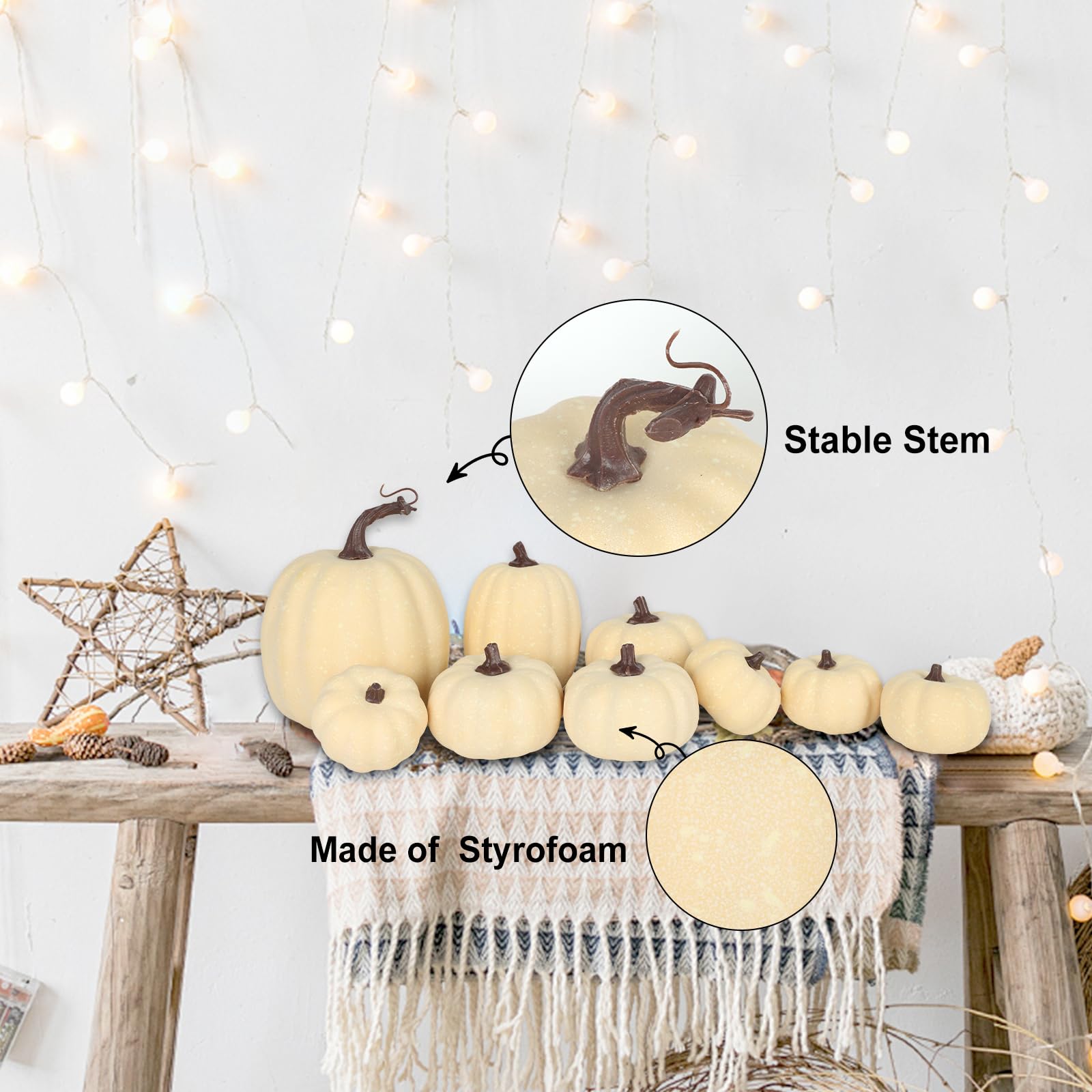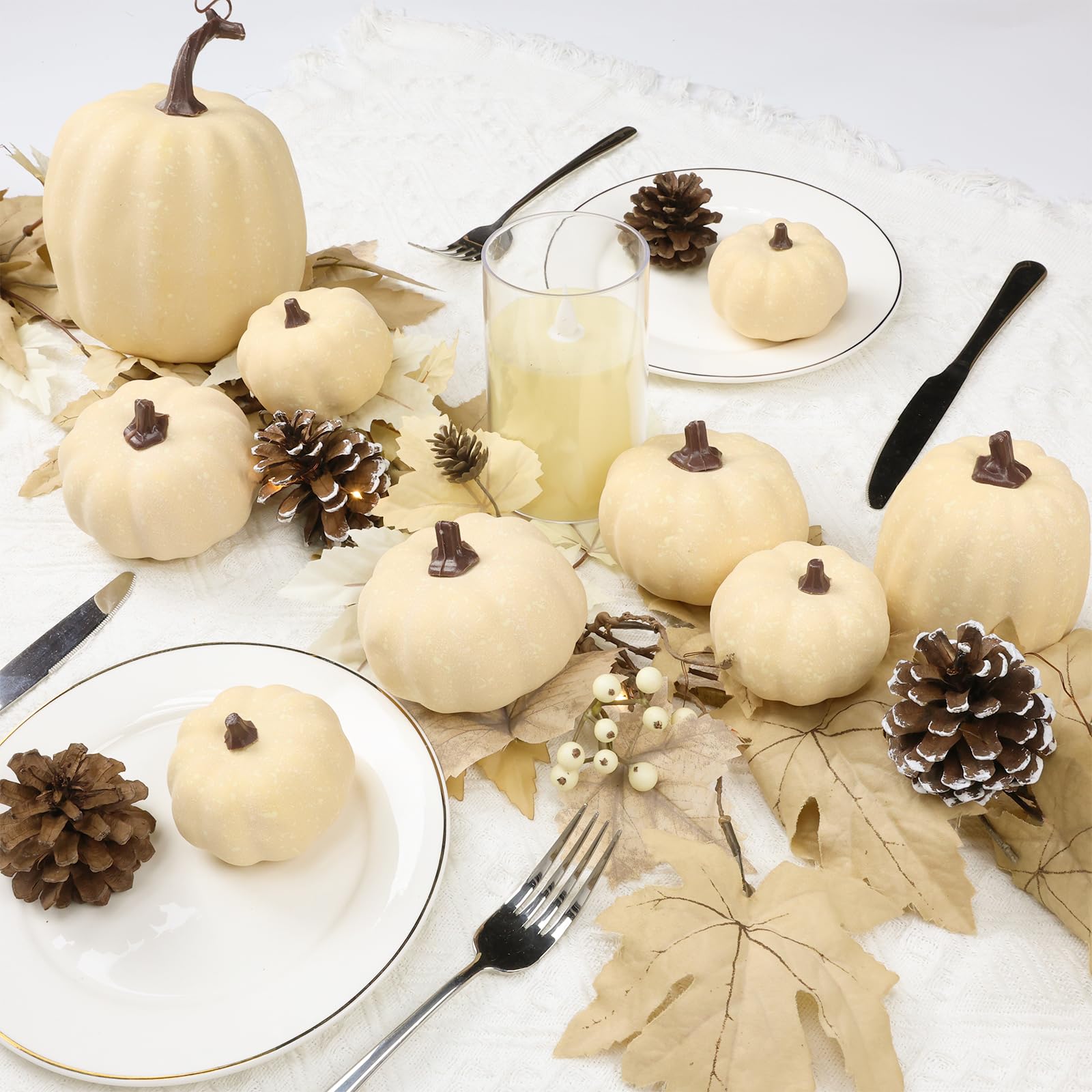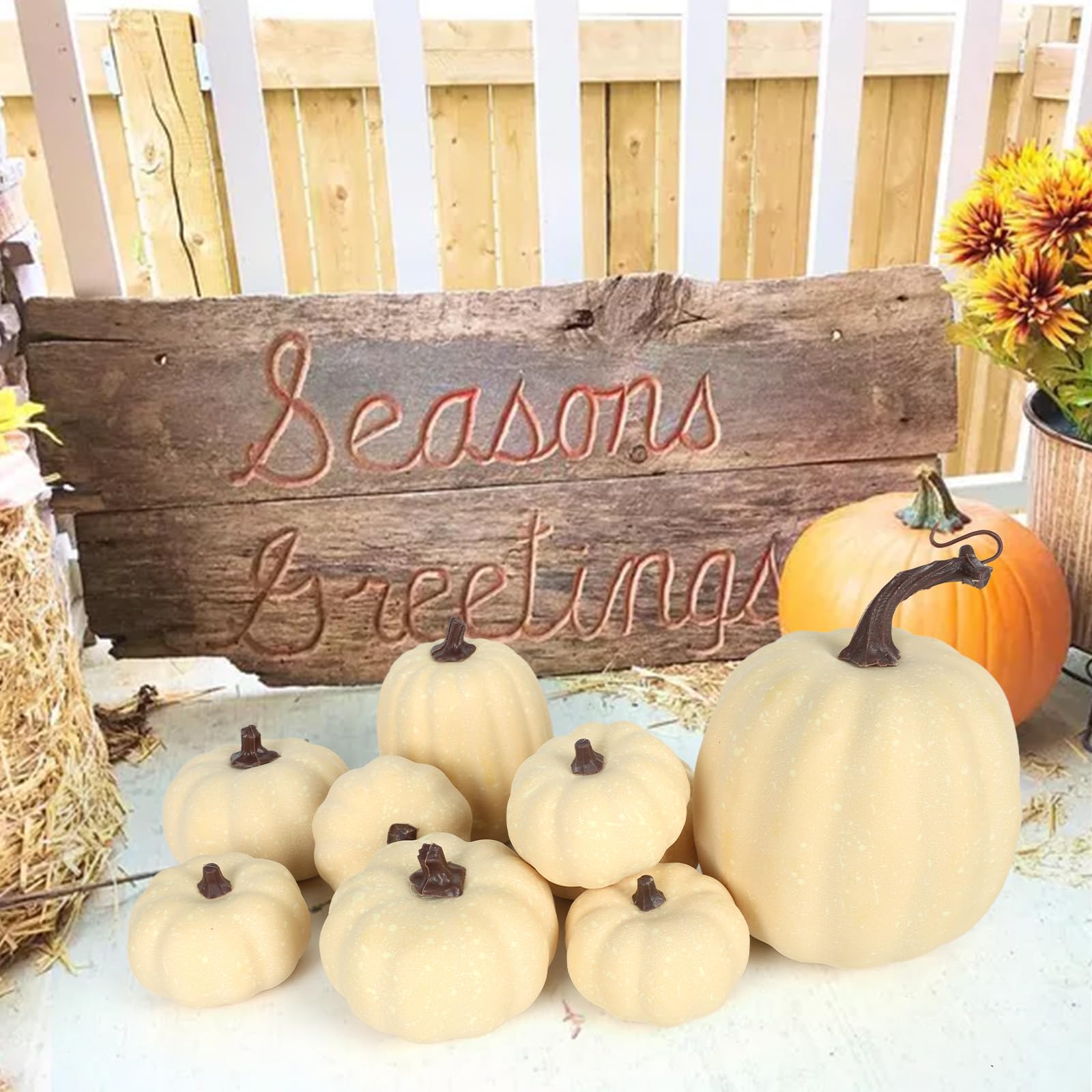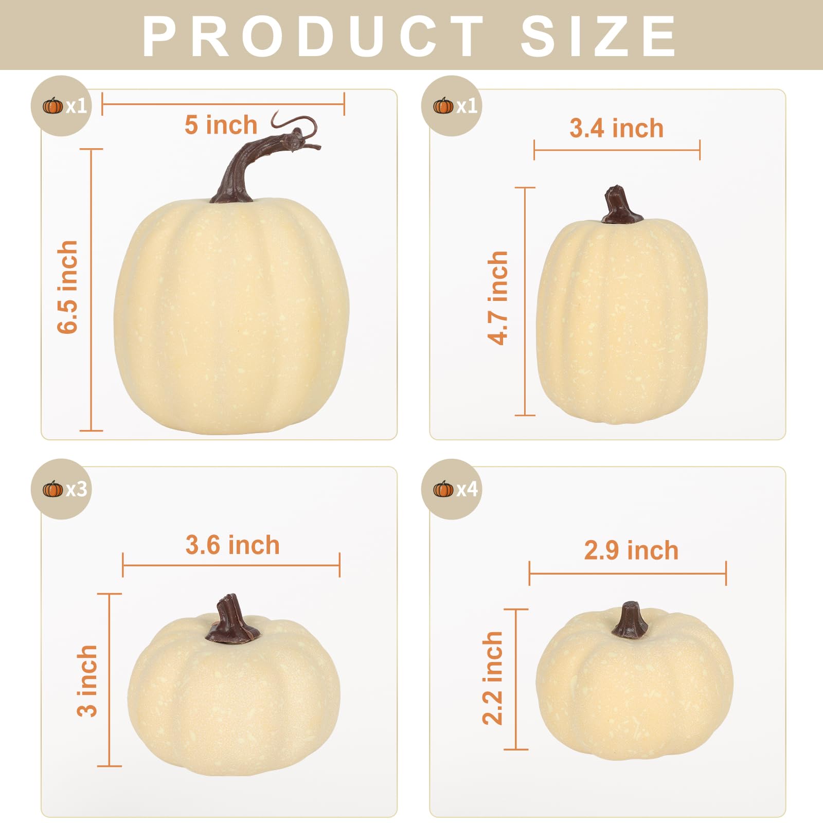 【Pumpkins Fall Decor】 Carvable pumpkin kis includes 9 pcs cream pumpkins in assorted sizes. Decorate it any way you want and combine it with other seasonal decorations as a different element.