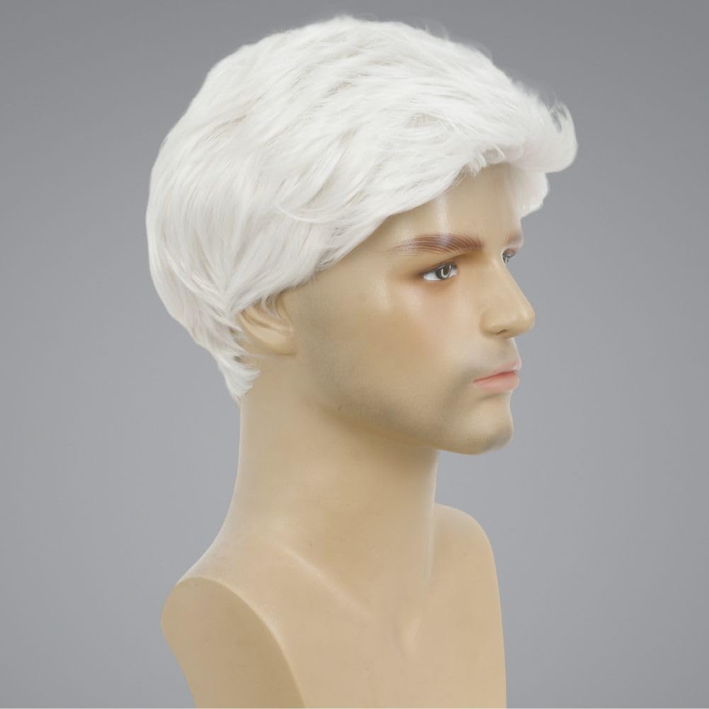 Welcome to Kaneles Wig Basic Information: About this wig: Top Quality Heat Resistant Synthetic Fiber Hair Style: Mens short Curly Wig.New fashion Hair Color: White Features: Natural looking and soft touch . Packing List: Wig*1 + Free Wig Cap Q&A 1: Can I Curl or Cut the Wigs? Yes. You can be restyled it with the scissors or curling iron(below 130 degree), but cannot be permed or dyed. Q&A 2: Can I Wash the Wigs? Yes. Just need a little mild shampoo and hair conditioner then washing in warm water. Then set on a flat towel and let them naturally dry. Q&A 3: Is It Will Tangle and Shedding? Synthetic wigs are happened to minimum shedding and tangling, which is normal. Q&A 4: Can I Return It If the Product Has Some Problem? Our company has been committed to producing Wig for more than 10 years, we have our own factory and professional design team, which can guarantee the product quality fundamentally. Only to provide you a Impeccable wig. Also you can return it for no reason in 15 days. Warm Tips: 1.All synthetic hair wigs be happened to minimum shedding and tangling which is normal. 2.Color sometimes may be a little different From the photos because of your computer monitor's color setti.