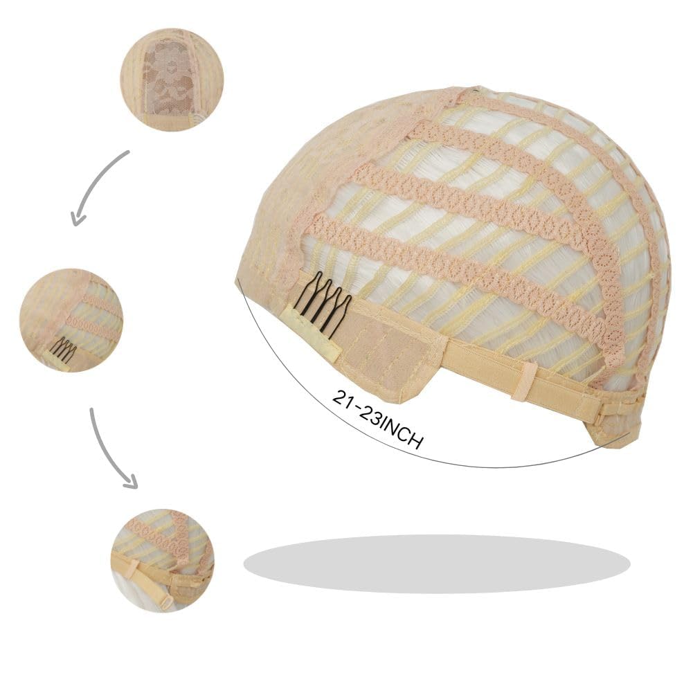 Adjustable Cap Size: Circumference 21-23inches,breathable rose net make you feel comfortable. Two combs in front and Two adjustment straps can be linked to a fixed position to fit different head sizes.