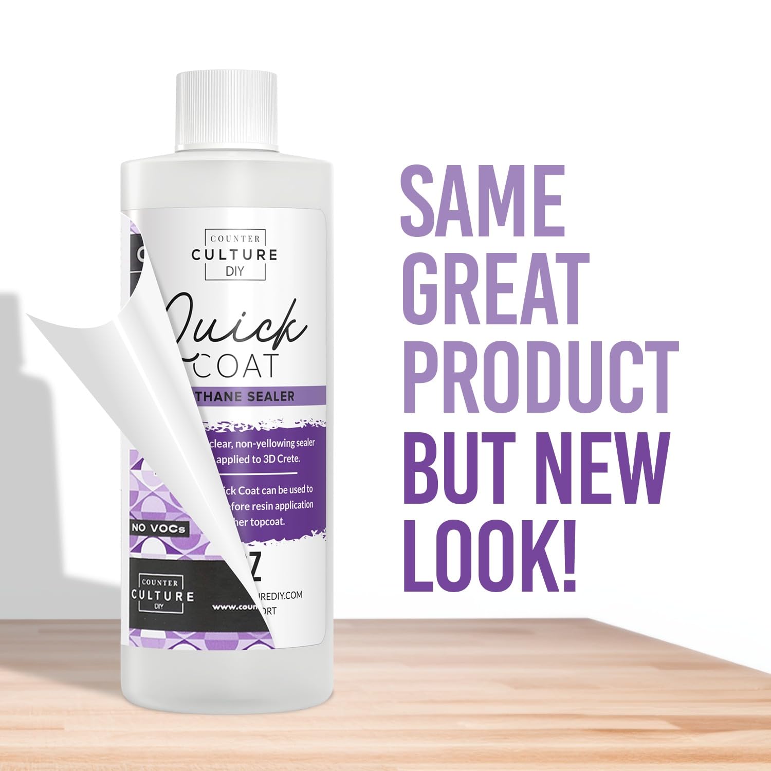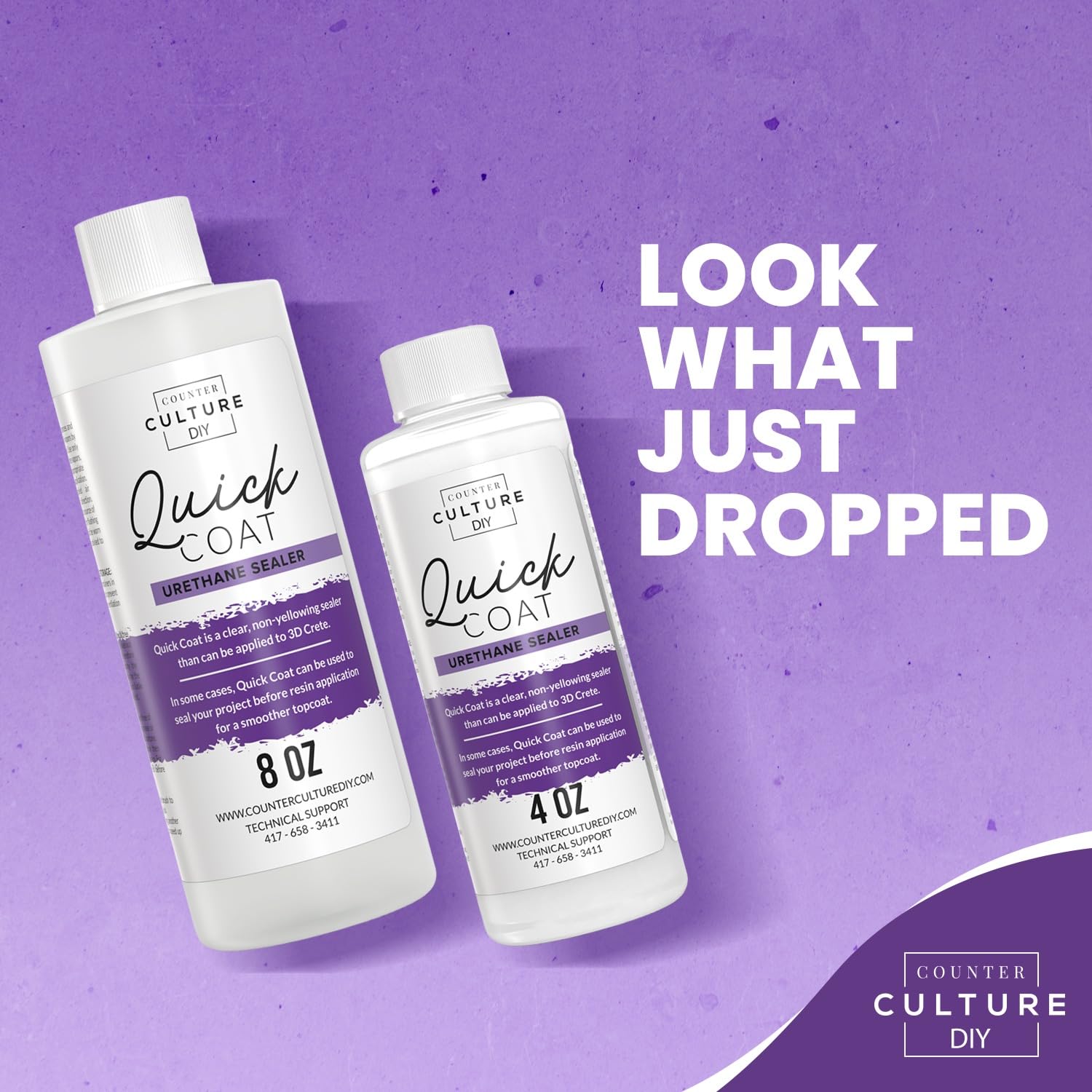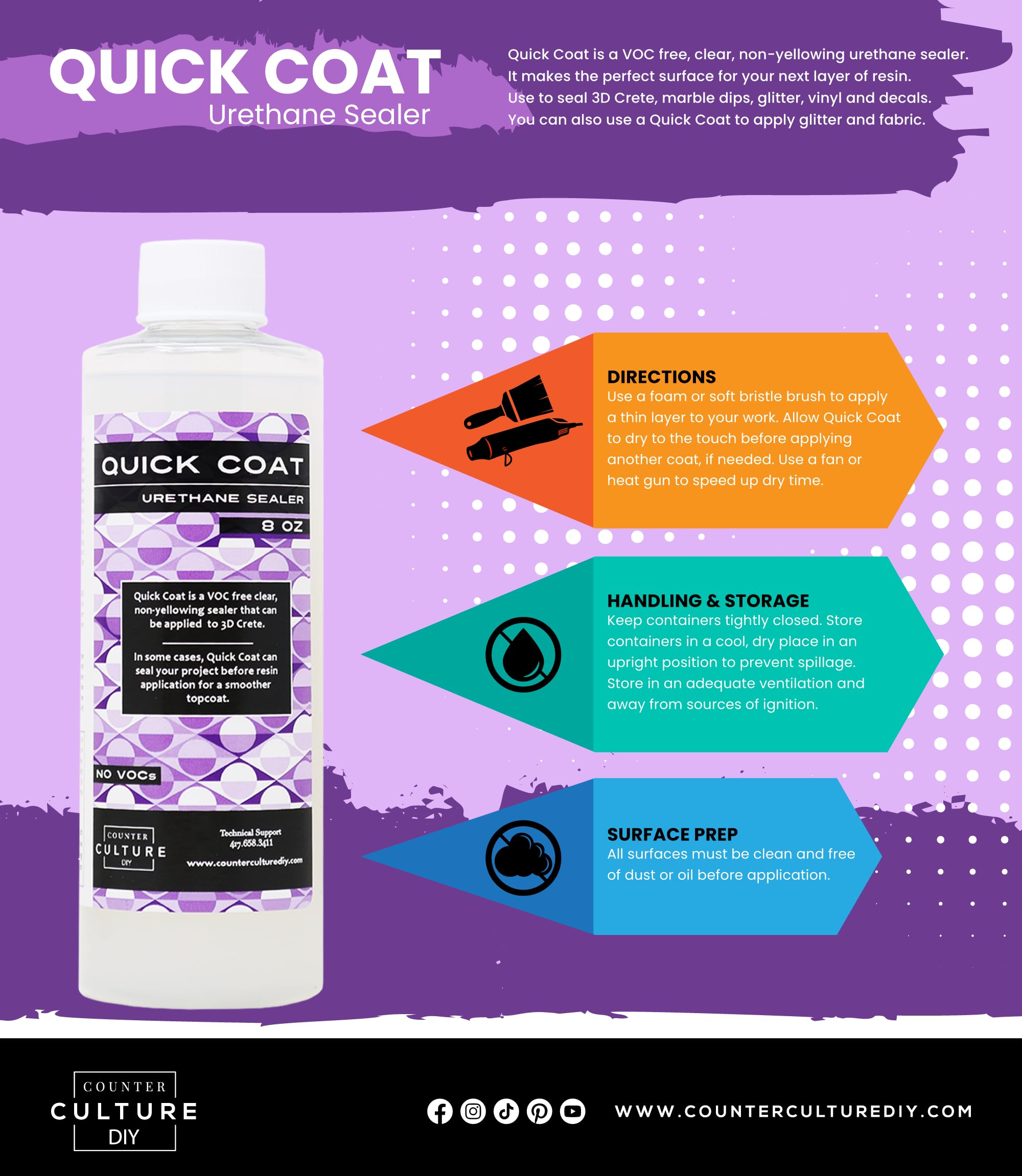 INCLUDES: Counter Culture DIY 4 Ounce Quick Coat Sealer. Quick Coat is a VOC free, clear, non-yellowing sealer. It makes the perfect surface for your next layer of resin.