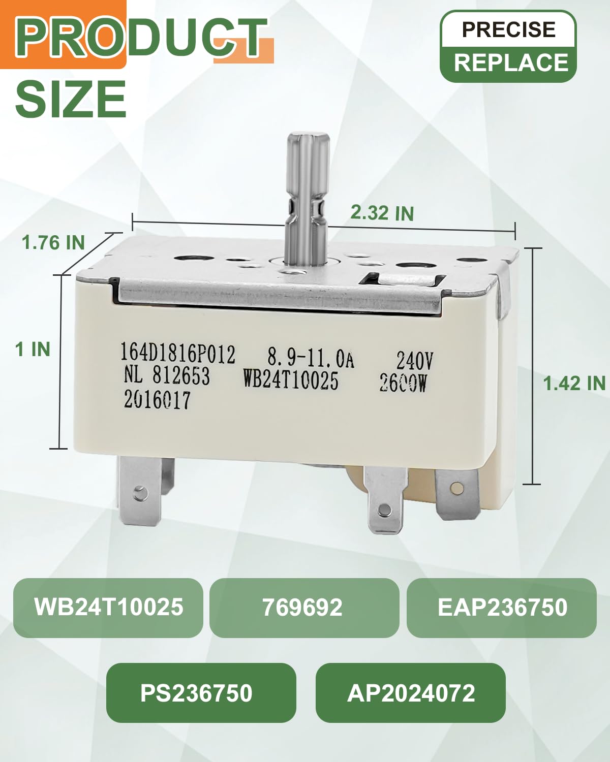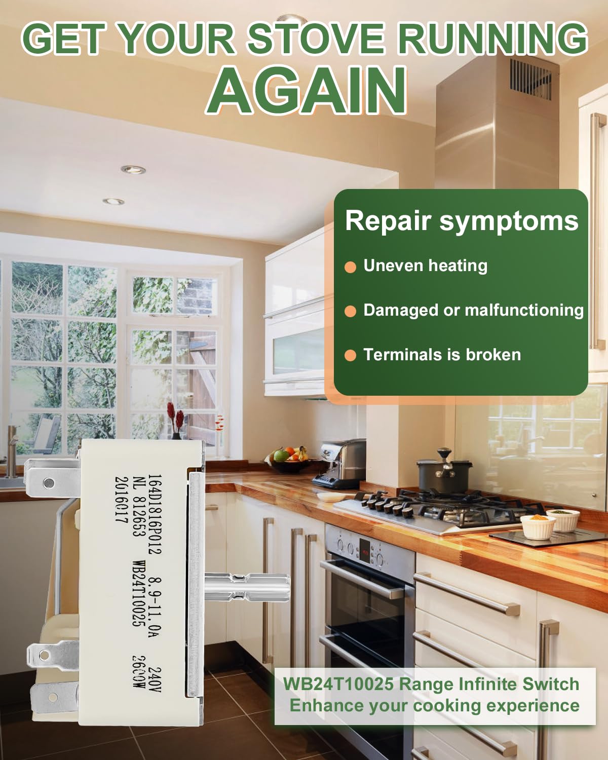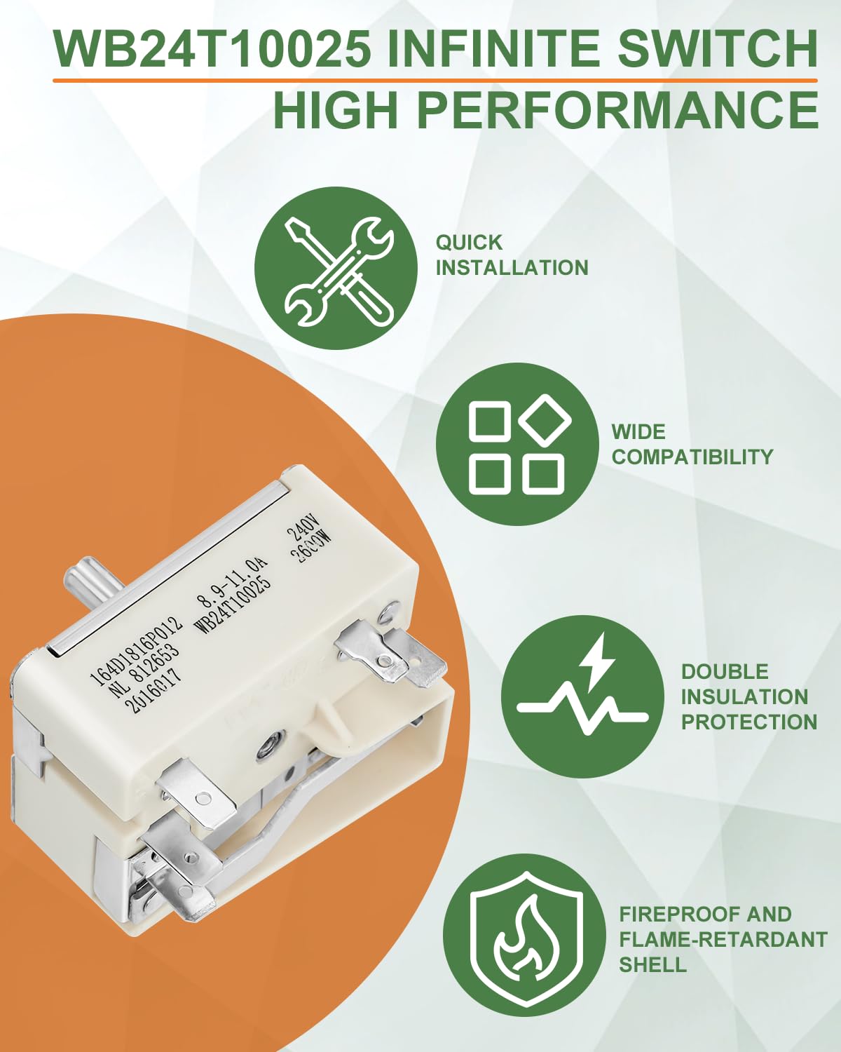 【Enhanced Performance and Durability】: Crafted from corrosion-resistant materials, this 8" Surface Burner Switch withstands extreme temperatures and 10,000+ operational cycles. WB24t10025 infinite switch's robust design and high-quality materials make it a durable choice for your cooking needs.