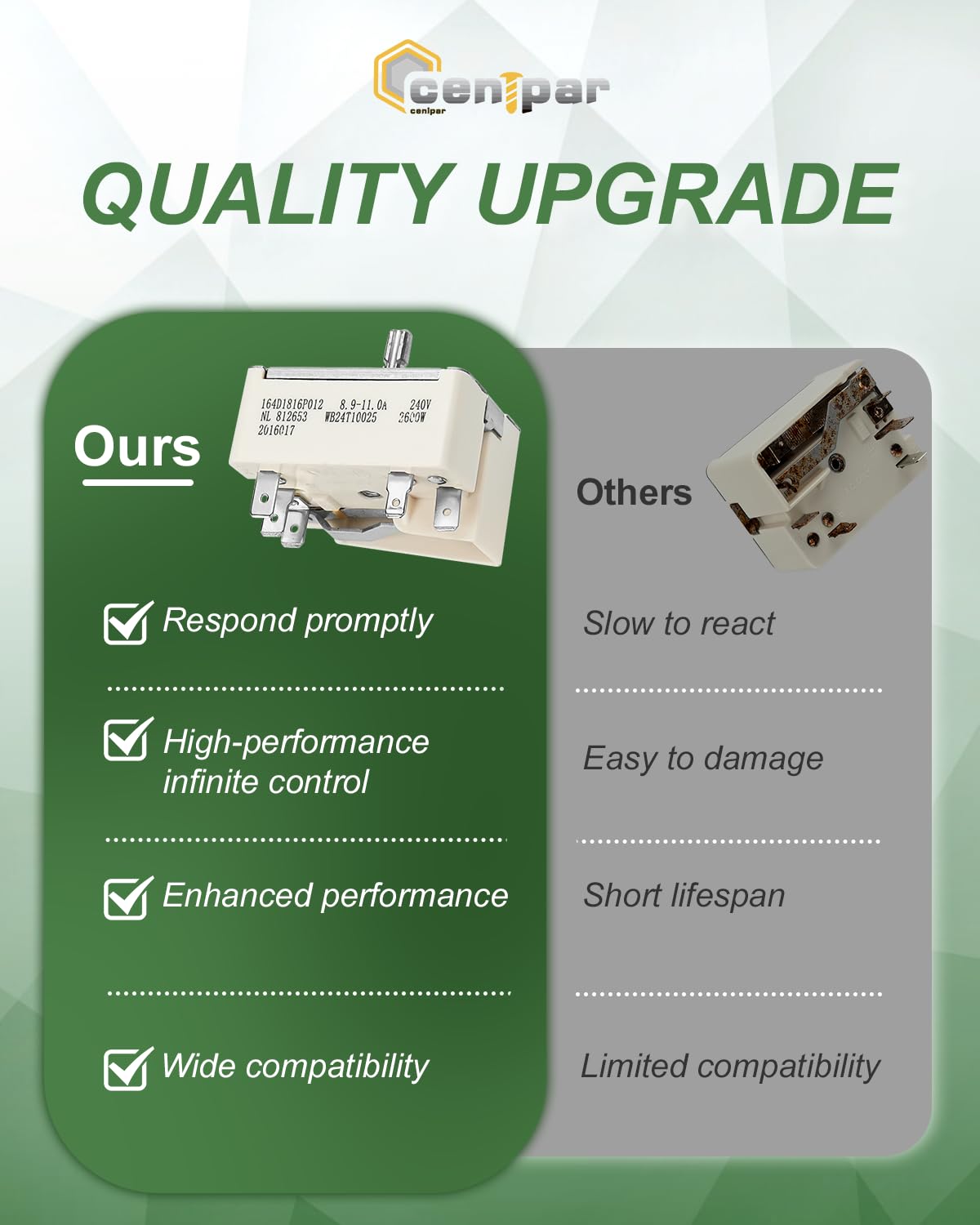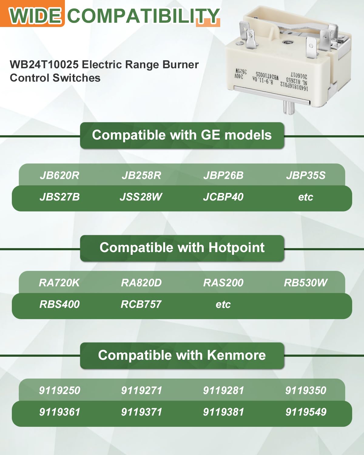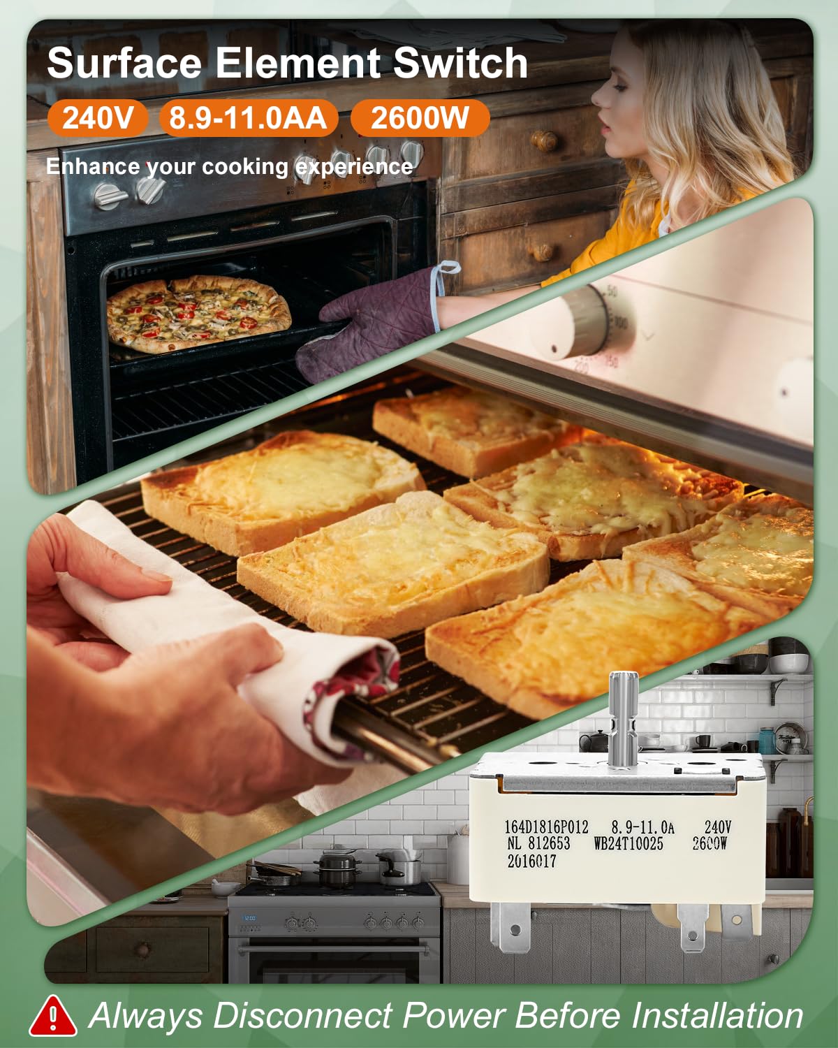 【Enhanced Performance and Durability】: Crafted from corrosion-resistant materials, this 8" Surface Burner Switch withstands extreme temperatures and 10,000+ operational cycles. WB24t10025 infinite switch's robust design and high-quality materials make it a durable choice for your cooking needs.